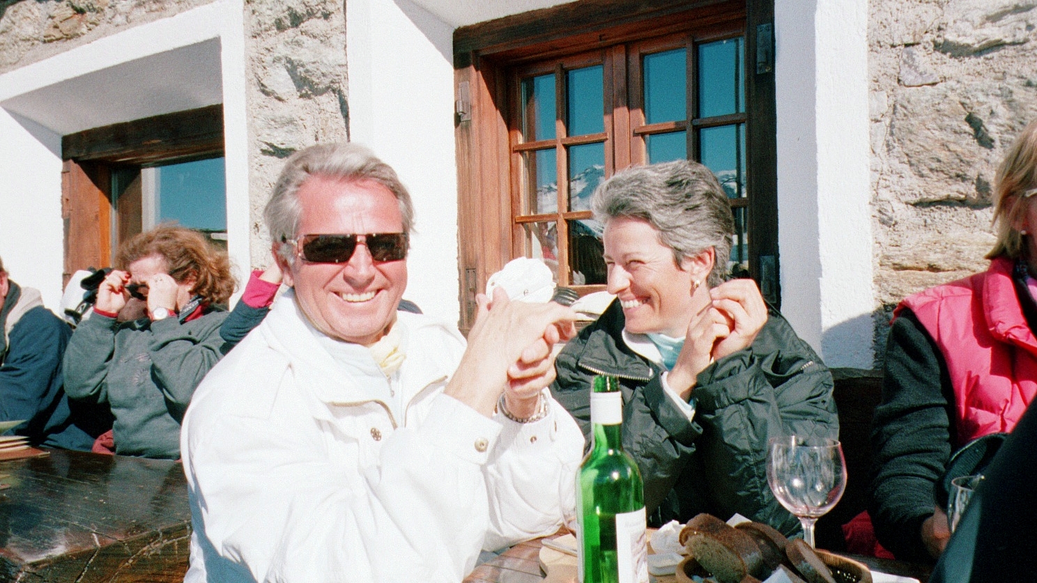 Oder einen Traubensaft ... Pia und Peter Abée haben wir rein zufällig im Restaurant auf der Piste getroffen.