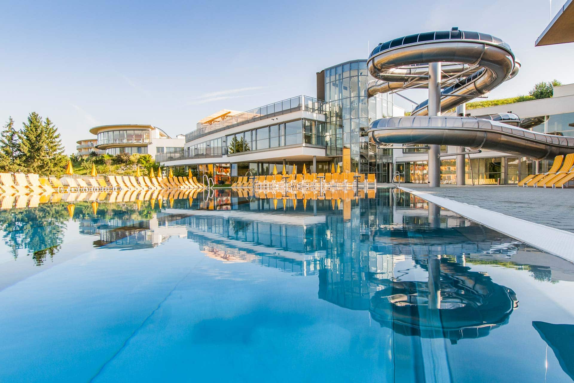 Die Hotelanlage bietet neben Golf - so nötig - auch Möglichkeiten zur anderweitigen sportlichen Betätigung auf der Rutsche und zum Relaxen in der Therme
