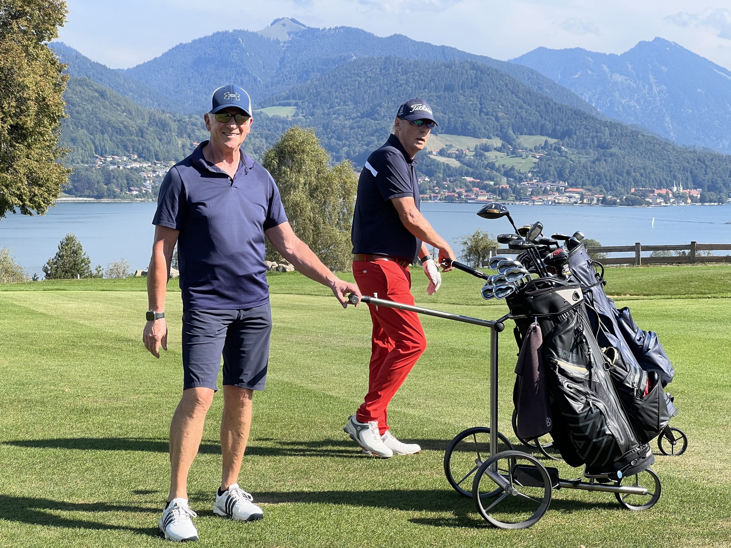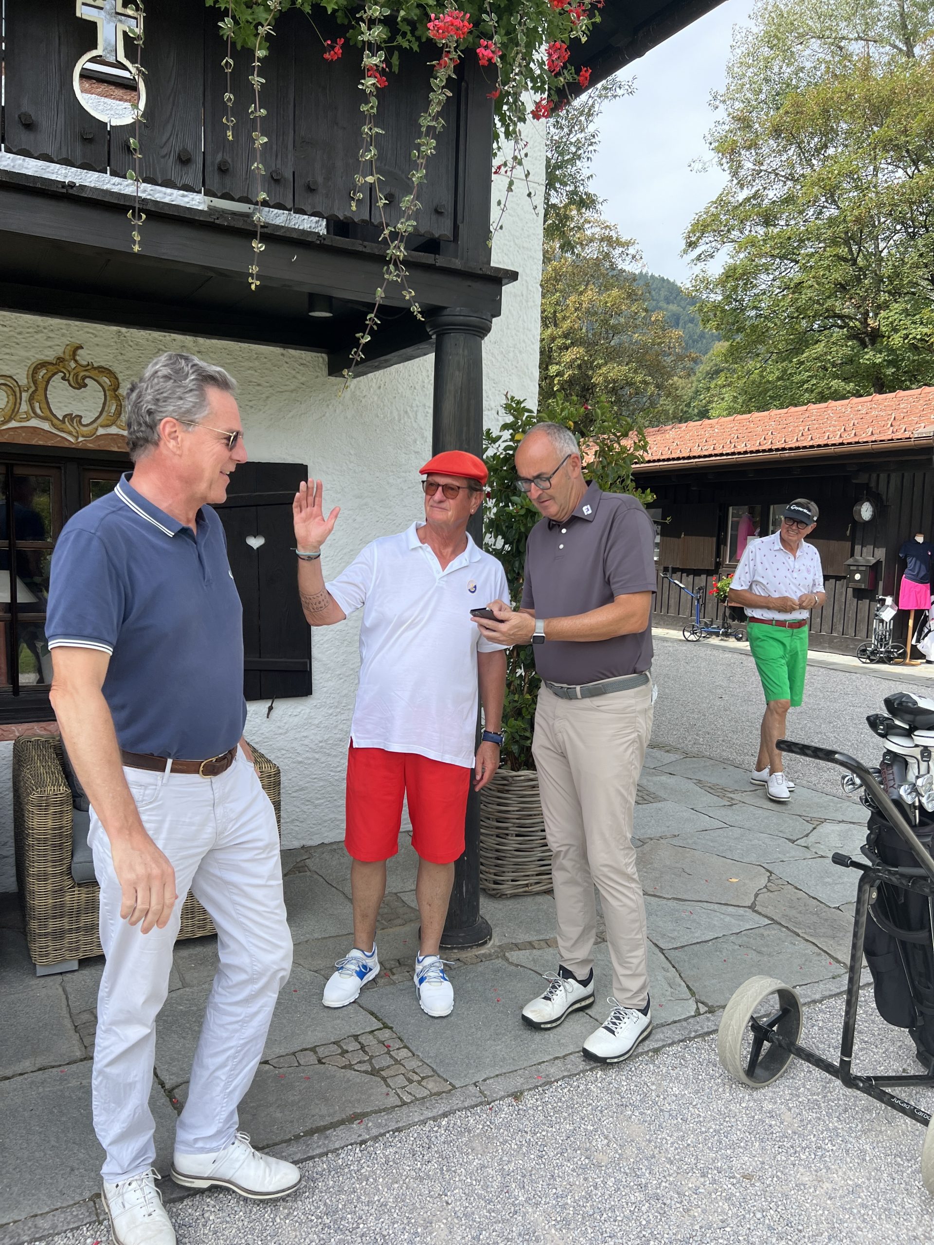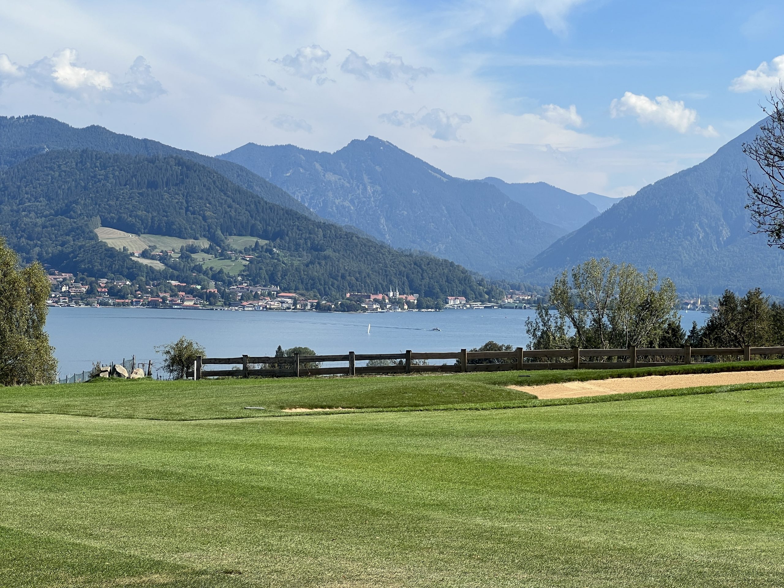 Mitte September treffen wir uns auf Initiative und Einladung von Günther Warchola - wie bereits im August der Jahre 2018 und 2019 - mit 20 Golf Buddies inclusive Damen zu einer wunderbaren spätsommerlichen Golfrunde mit anschliessendem Abendessen im Golfclub Bad Wiessee am schönen Tegernsee. Wir gehen nach einem internationalen Seniors Turnier ab 13:30 Uhr auf die Runde, wobei unsere Abschläge durch noch fehlende Carts um eine halbe Stunde verzögert worden war. Auf dem Platz hatten wir herrlich sonniges und für September extrem warmes Wetter und ich kam - selber auch mit einem Cart unterwegs - mit meinen Flightpartnern Wil Lieser und Kurt Goldstein in weniger als vier Stunden ins Clubhaus zurück. Ab 19 Uhr gab es - nachdem es an der Halfway Station bereits eine Gazpacho mit Getränken gab - ein Menü mit Tomaten Carpaccio mit Pfifferlingen, Tegernsee Saibling auf Zitronenschaum und Ratatouille sowie Beeren Sorbet und Kaffee. Dies alles konnten wir einschließlich Greenfee für 150 Euro pro Person geniessen. Am selben Abend besiegt die deutsche Fussball Nationalmannschaft mit dem neuen einmaligen Rudi Völler unsere französischen Freunde mit 2:1. Ziemlich bitter für unseren abwesenden Freund Pascal. Der renommierte Tegernseer Golf-Club wurde im Jahr 1959 gegründet und liegt auf 800m Seehöhe im wunderschönen Tegernseer Tal mit Blick auf die Alpen. Das teils anspruchsvolle und bewegte Gelände stellt für Golfer jeder Klasse eine abwechslungsreiche Herausforderung dar. Der Club besticht neben seinen anspruchsvollen Fairways und einem hügeligen Gelände durch den traumhaften Blick auf den Tegernsee, für den alleine es sich schon lohnt, die Golfschläger auszupacken. Hier bilden Golf und Gebirge eine atemberaubende Kombination und das Auge spielt definitiv mit! Der gepflegte Parkland-Course mit altem Baumbestand, das gemütliche Clubhaus und die familiäre Atmosphäre geben dem Golfclub vor atemberaubender Kulisse eine besondere Stellung im Voralpenland. Ob als Turnierspieler, Genussgolfer oder Gesellschaftsmensch, frei nach dem Motto „Leben und Leben lassen", kann und darf sich hier jeder wohlfühlen.