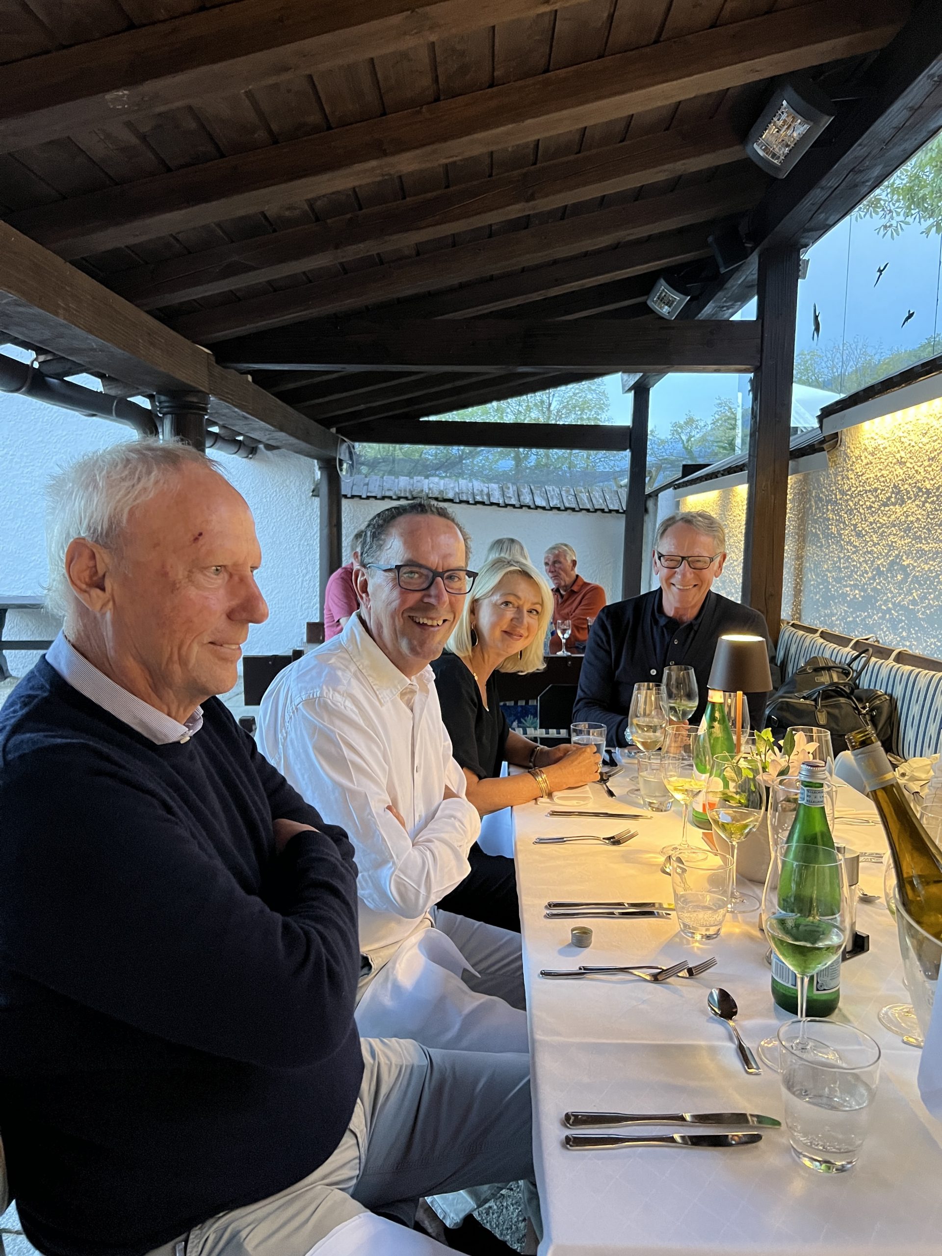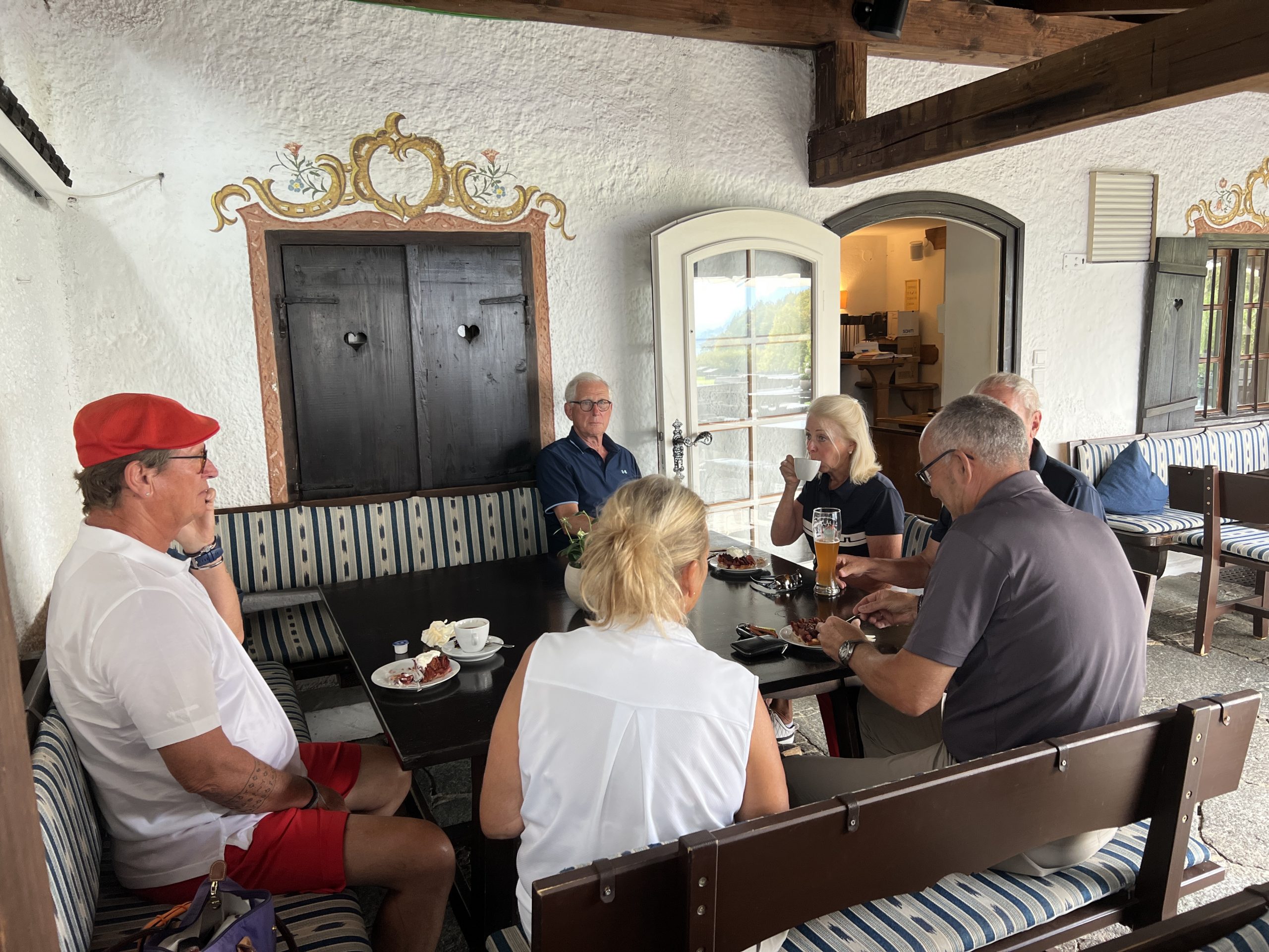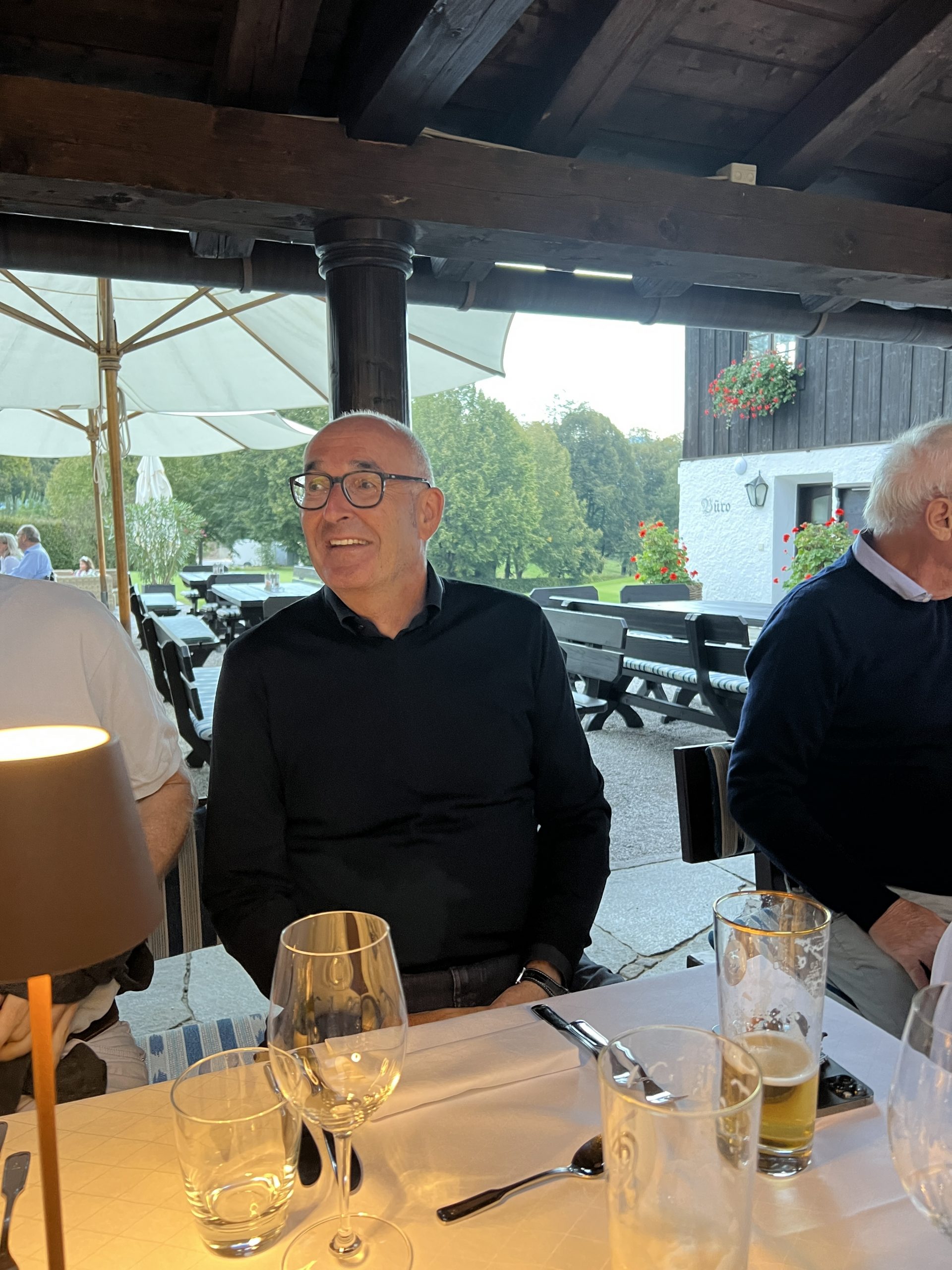 Mitte September treffen wir uns auf Initiative und Einladung von Günther Warchola - wie bereits im August der Jahre 2018 und 2019 - mit 20 Golf Buddies inclusive Damen zu einer wunderbaren spätsommerlichen Golfrunde mit anschliessendem Abendessen im Golfclub Bad Wiessee am schönen Tegernsee. Wir gehen nach einem internationalen Seniors Turnier ab 13:30 Uhr auf die Runde, wobei unsere Abschläge durch noch fehlende Carts um eine halbe Stunde verzögert worden war. Auf dem Platz hatten wir herrlich sonniges und für September extrem warmes Wetter und ich kam - selber auch mit einem Cart unterwegs - mit meinen Flightpartnern Wil Lieser und Kurt Goldstein in weniger als vier Stunden ins Clubhaus zurück. Ab 19 Uhr gab es - nachdem es an der Halfway Station bereits eine Gazpacho mit Getränken gab - ein Menü mit Tomaten Carpaccio mit Pfifferlingen, Tegernsee Saibling auf Zitronenschaum und Ratatouille sowie Beeren Sorbet und Kaffee. Dies alles konnten wir einschließlich Greenfee für 150 Euro pro Person geniessen. Am selben Abend besiegt die deutsche Fussball Nationalmannschaft mit dem neuen einmaligen Rudi Völler unsere französischen Freunde mit 2:1. Ziemlich bitter für unseren abwesenden Freund Pascal. Der renommierte Tegernseer Golf-Club wurde im Jahr 1959 gegründet und liegt auf 800m Seehöhe im wunderschönen Tegernseer Tal mit Blick auf die Alpen. Das teils anspruchsvolle und bewegte Gelände stellt für Golfer jeder Klasse eine abwechslungsreiche Herausforderung dar. Der Club besticht neben seinen anspruchsvollen Fairways und einem hügeligen Gelände durch den traumhaften Blick auf den Tegernsee, für den alleine es sich schon lohnt, die Golfschläger auszupacken. Hier bilden Golf und Gebirge eine atemberaubende Kombination und das Auge spielt definitiv mit! Der gepflegte Parkland-Course mit altem Baumbestand, das gemütliche Clubhaus und die familiäre Atmosphäre geben dem Golfclub vor atemberaubender Kulisse eine besondere Stellung im Voralpenland. Ob als Turnierspieler, Genussgolfer oder Gesellschaftsmensch, frei nach dem Motto „Leben und Leben lassen", kann und darf sich hier jeder wohlfühlen.