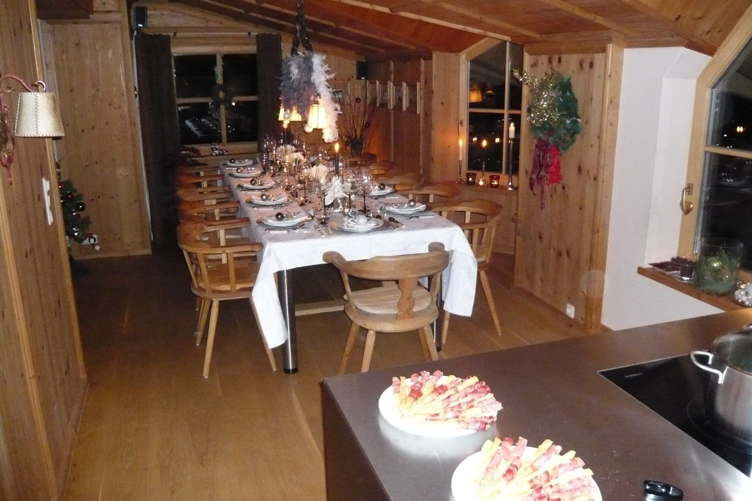 Das gemütliche Esszimmer ist wundervoll vorbereitet