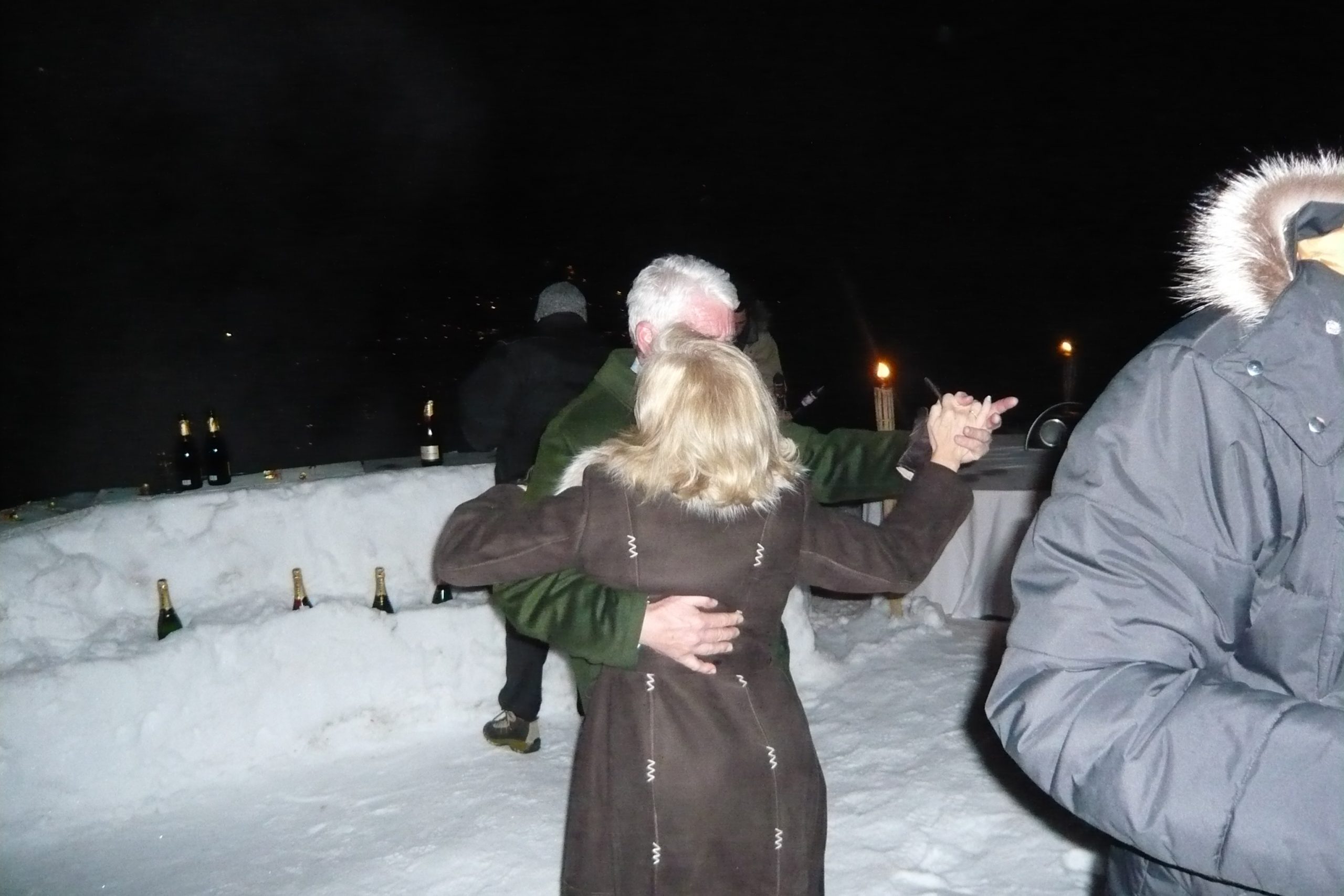 Zum Jahreswechsel waren wir von Markus Buchner und Evelyn in ihr wunderbares Anwesen oberhalb von Kitzbühel zur Silvesterfeier eingeladen. Mit zunächst getrennten Gruppen von zwölf Honoratioren und einer gleichen Anzahl von Junioren - Max und Michaela Buchner und deren Freunde - genossen wir schöne und köstliche Abendessen in unterschiedlichen Teilen des großen Hauses. Kurz vor Mitternacht ging es dann an die frische Luft und wir trafen uns an der von den Jungen erstellten Eisbar. Dort gab es nicht nur passende Drinks zum Anstossen, sondern auch gute Musik für ein Tänzchen in Ehren, um das neue Jahr zu begrüßen. Von Buchners Haus aus hatte man einen herrlichen Blick über das Kitzbüheler Tal. Bei schönem Wetter reicht dieser vom Kaiser im Norden über den Hahnenkamm bis zum im Süden gelegenen Pass Thurn hinter Jochberg. Der Abend war grandios und wir hatten viel Spaß und wurden von Hans-Georg genial bekocht. Über Nacht waren wir bei Eva & Thomas Hellmann in Jochberg zu Gast, mit denen wir nach einem gemütlichen Neujahrsspaziergang noch zum Mittagessen beim Hallerwirt in Aurach waren, bevor es dann wieder zurück nach München ging. Bereits am 5. Januar waren wir für unser Treffen mit Michel Perraudin und seiner Frau im Golf Club Restaurant des Hotel Arosa - bei dem wir damals das Märklin Angebot final verhandelten - wieder zurück in Kitzbühel.