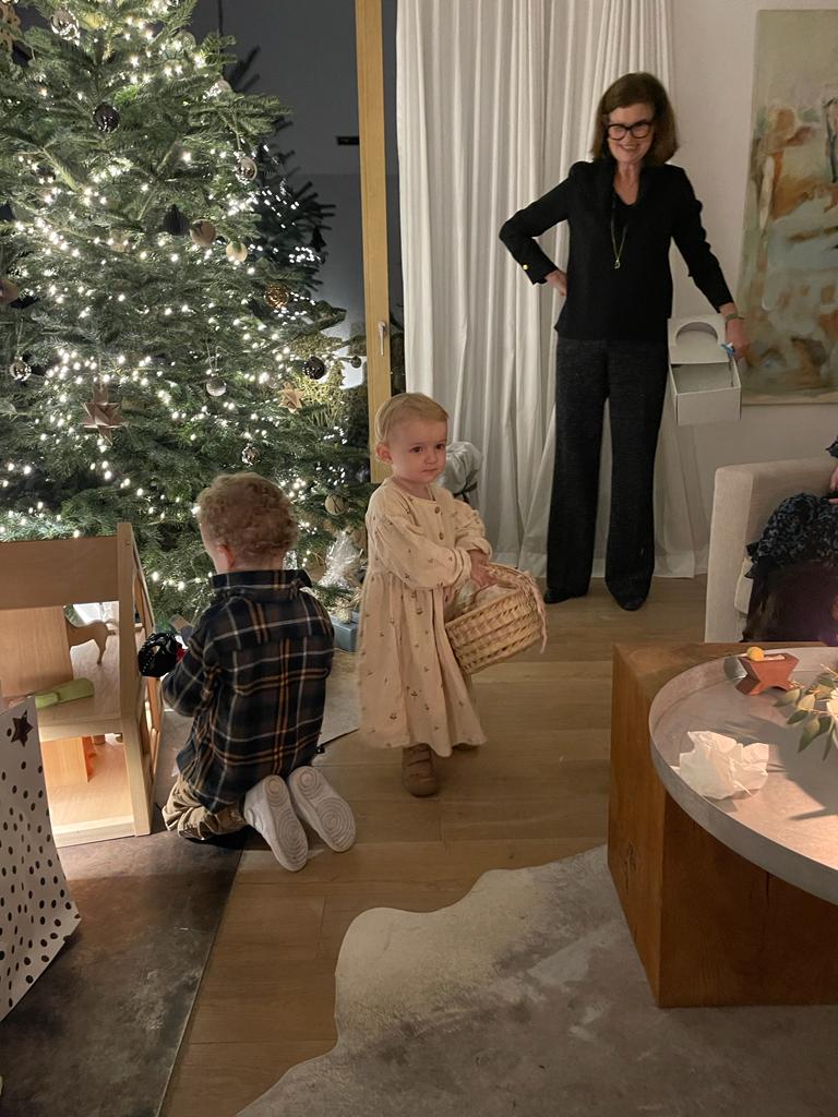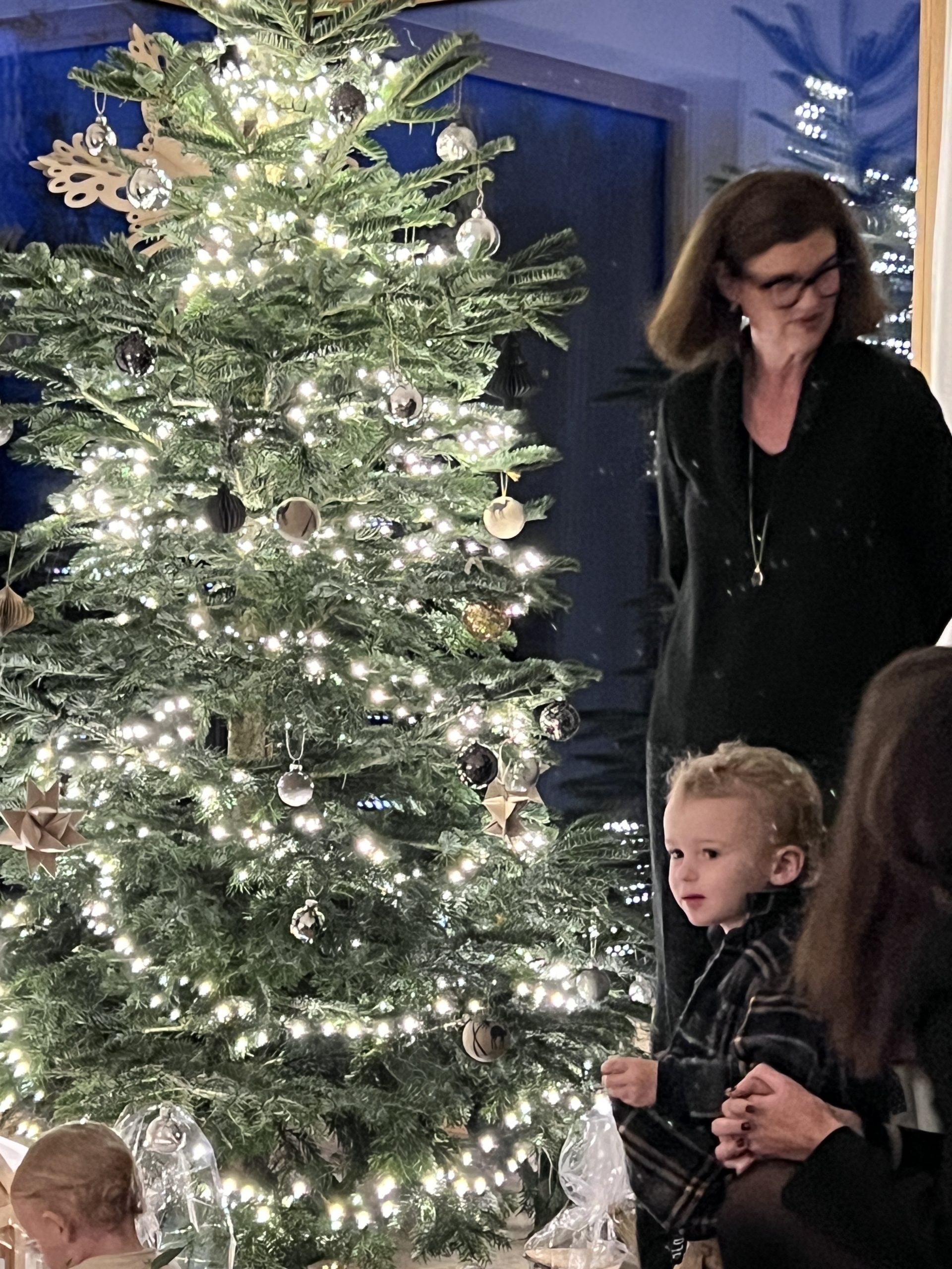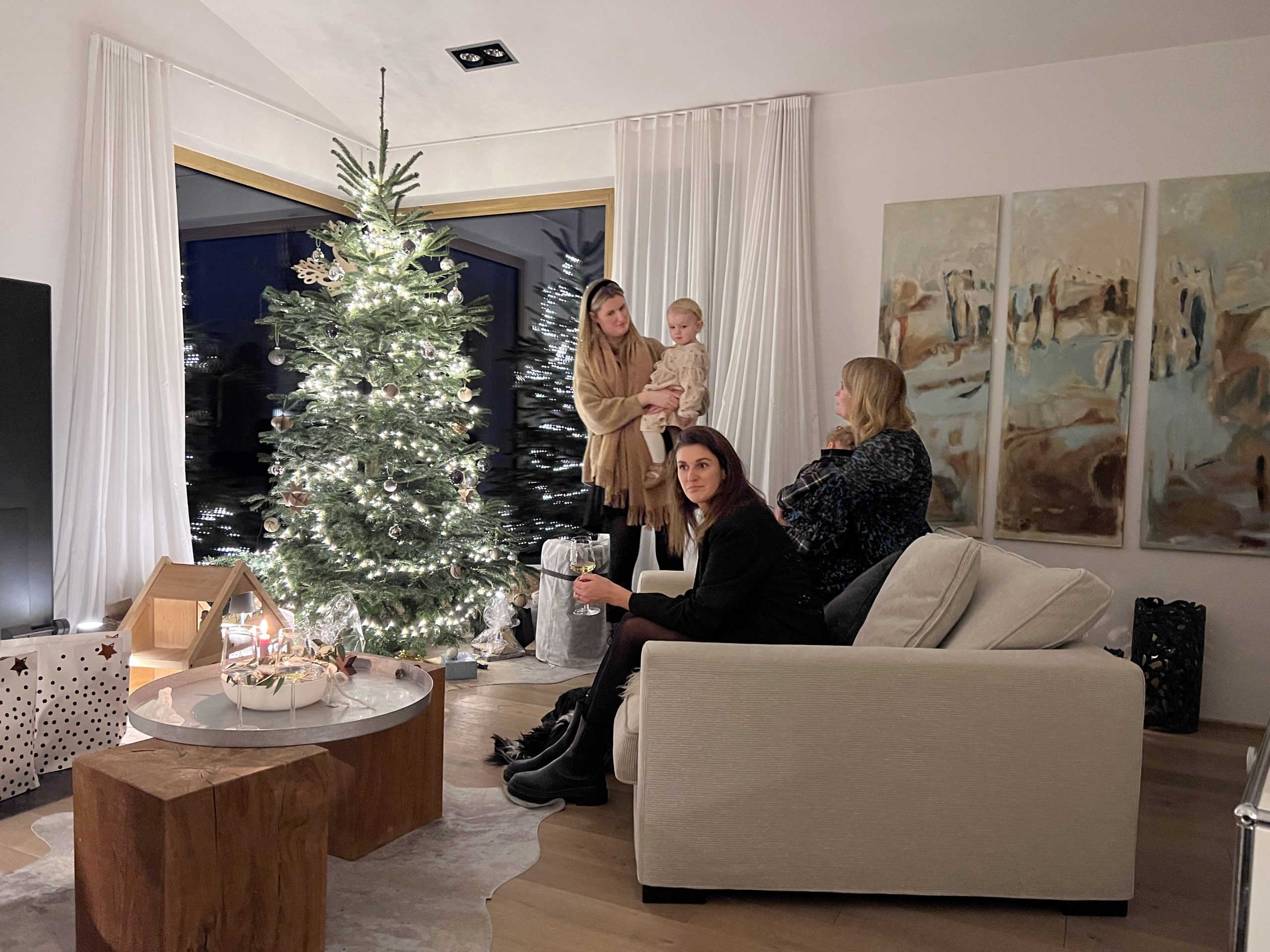 Tati sitzt wie selbstverständlich als erste vor dem wunderbar gewachsenen und herrlich geschmückten Weihnachtsbaum und wartet auf ihre Geschenke
