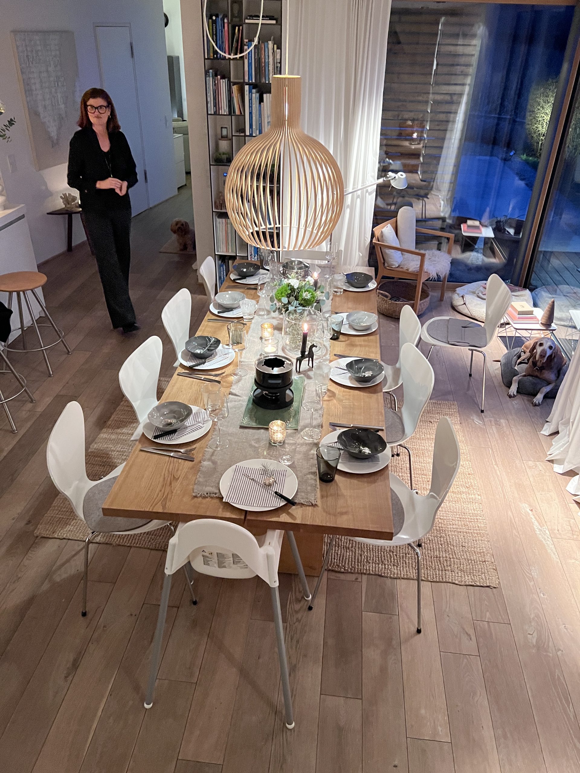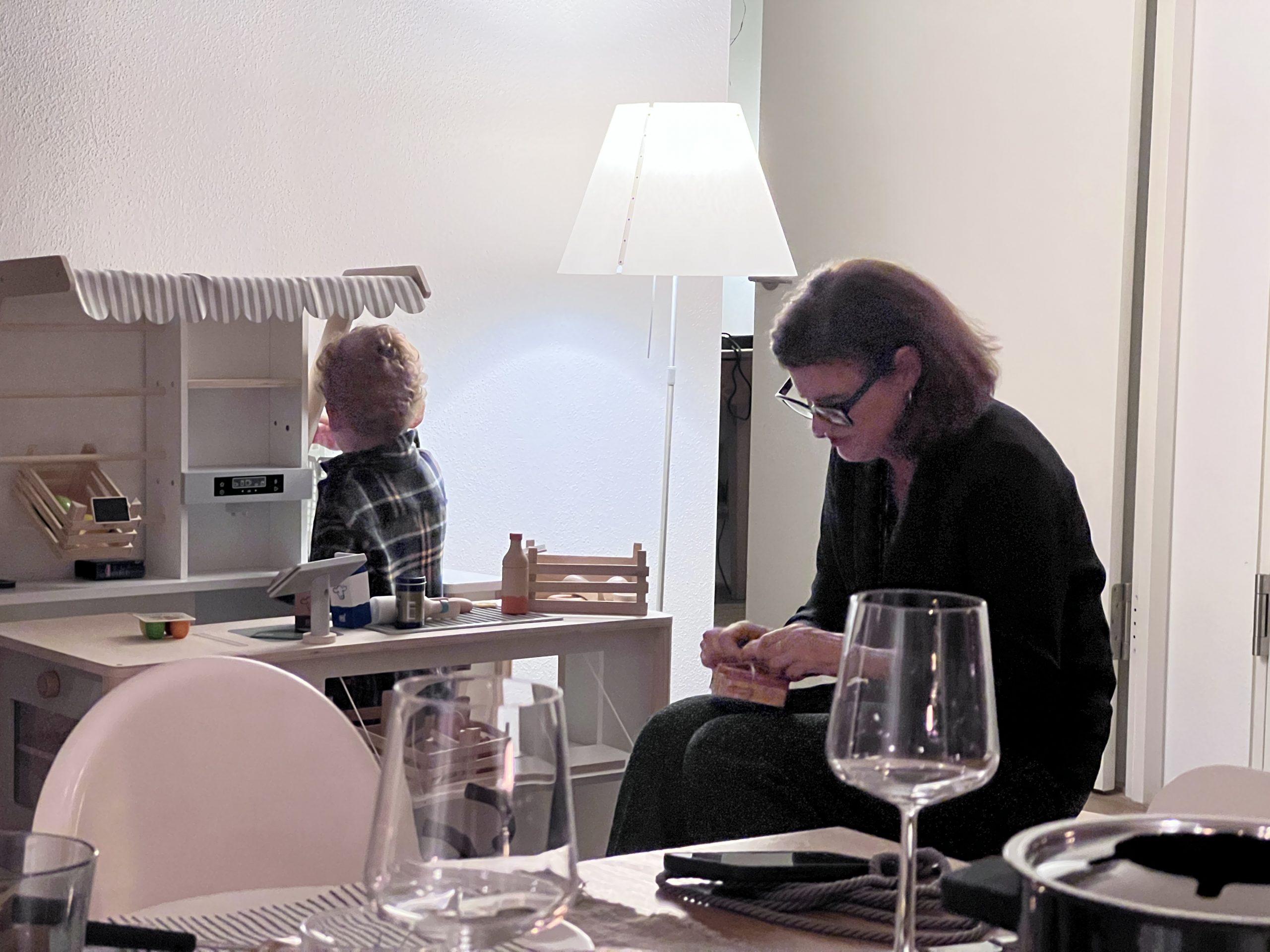 Nani checkt als Gastgeberin noch einmal die Eindecklage des Fondue Tisches und kann zufrieden "Alles ok" feststellen ... und auch Tati liegt fürs Essen bereit