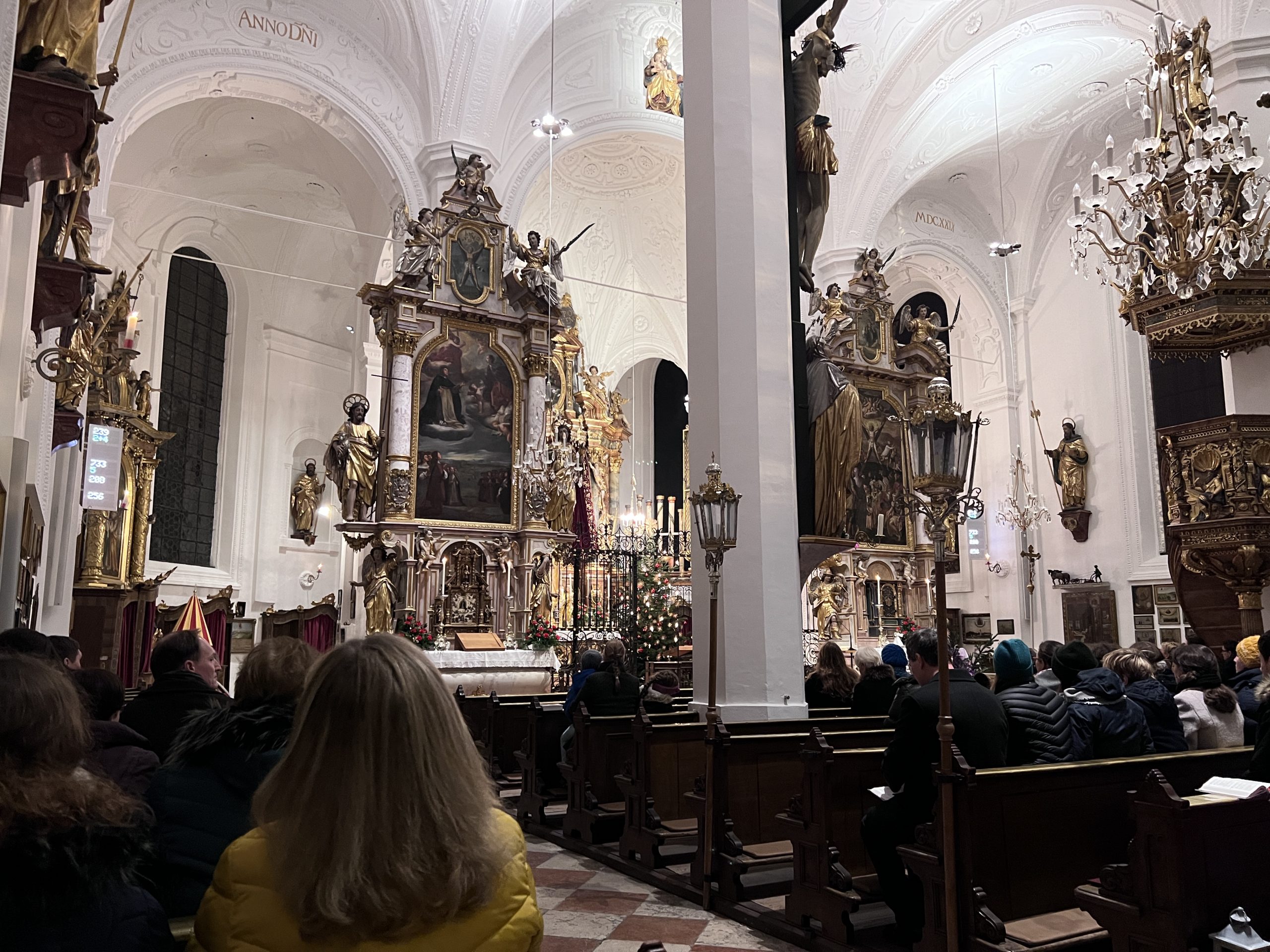 Eine wunderbare Stimmung in einer schönen Kirche bringt uns dem katholischen Glauben erheblich näher und wir lauschen der Weihnachtspredikt eines extra aus Rom angereisten Paters