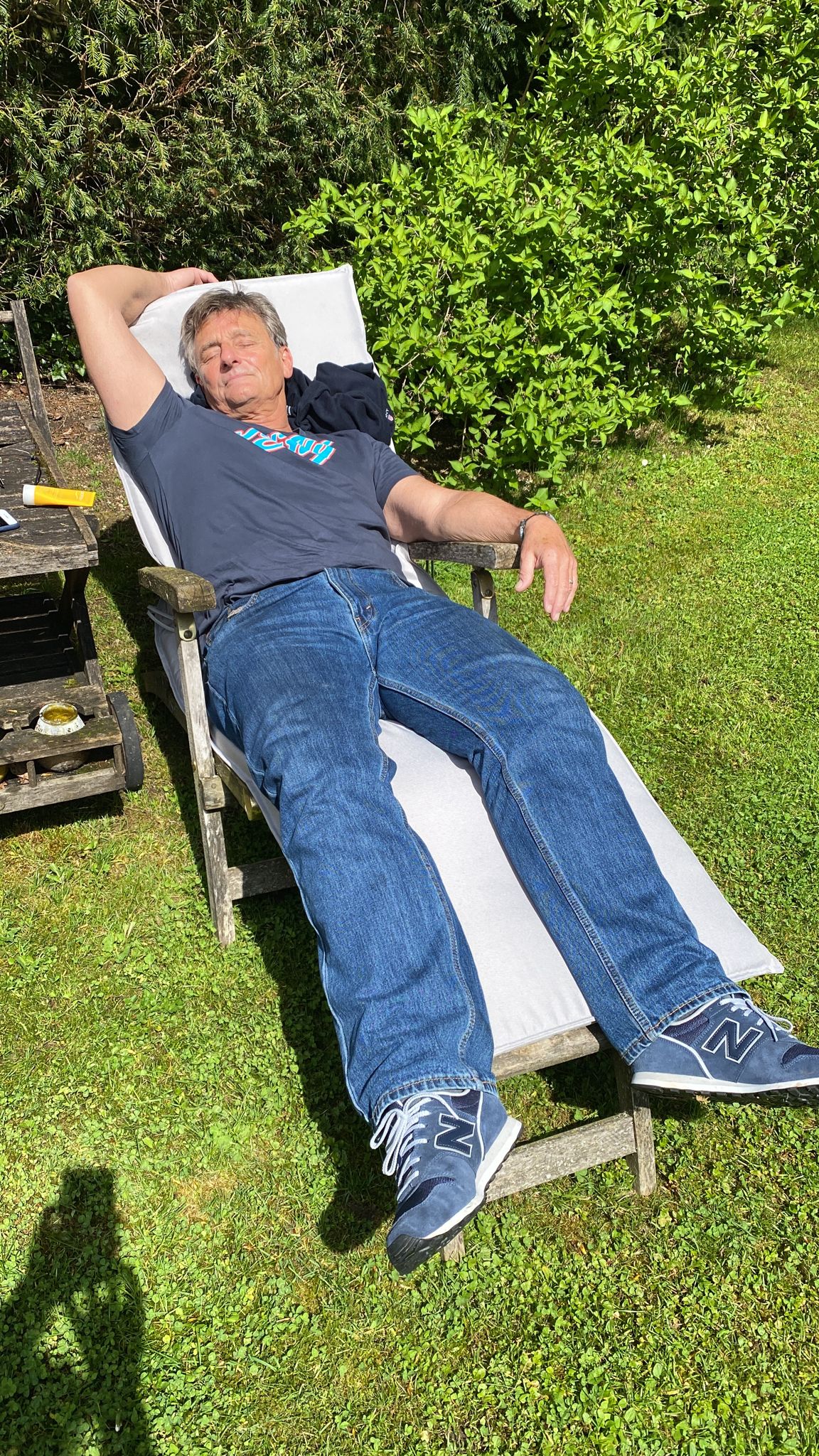 Michi hat ganze Arbeit geleistet und Jasmin zum Geburtstag eine Plastik seines eigenen - etwas verkleinerten - Körpers auf einem Felsen aus Sardinien geschenkt ... das macht müde
