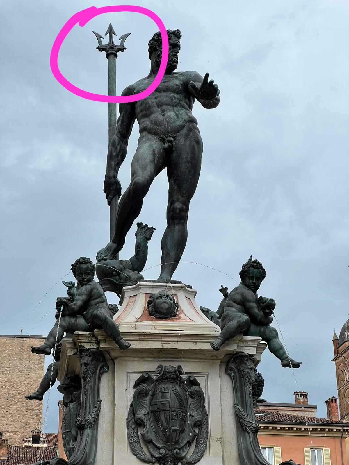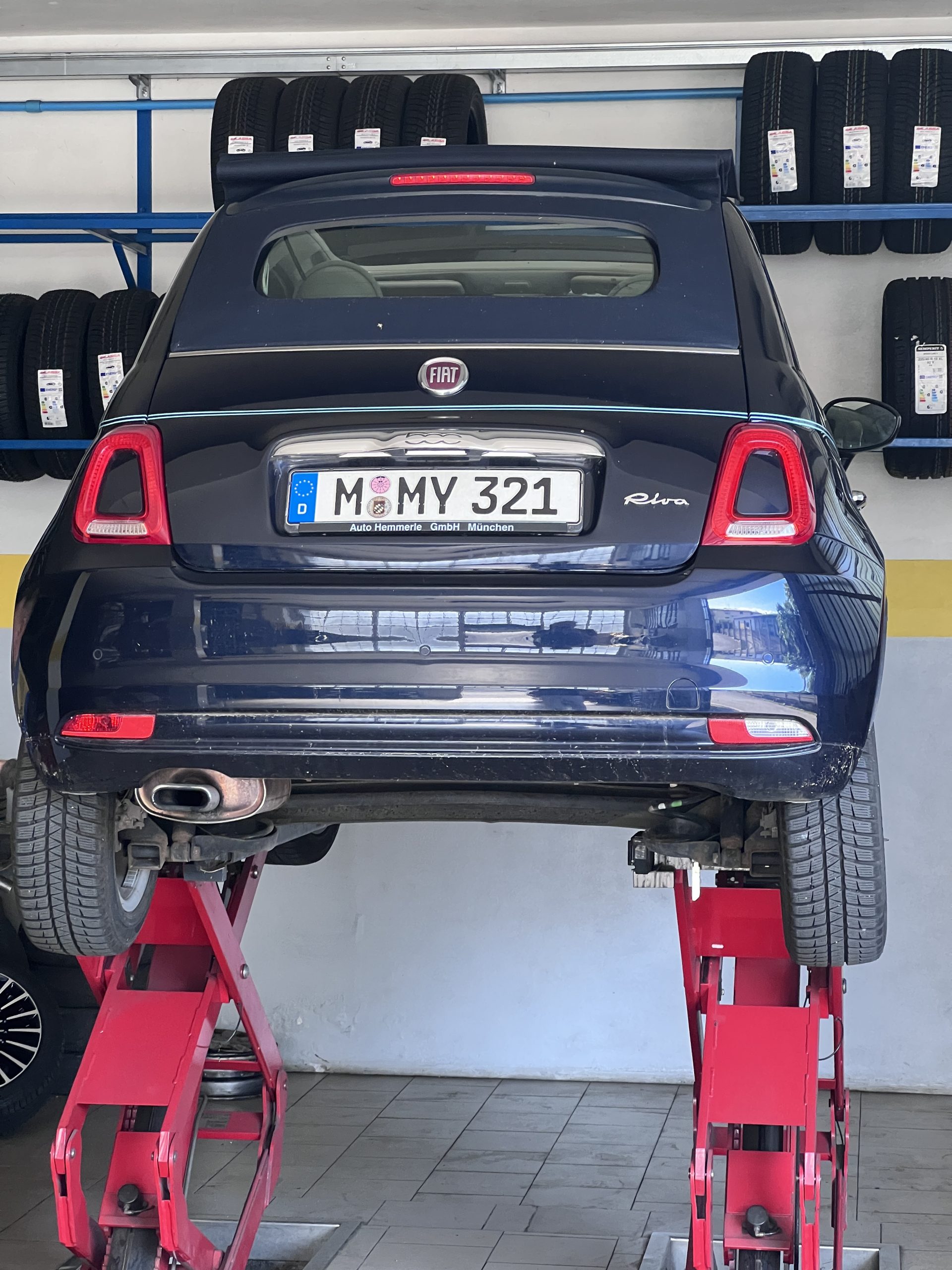 Ich lasse bei unserem 500er Fiat die von Sanne aus München mitgebrachten Sommerreifen montieren und Vincent Hannwacker findet in der Innenstadt von Bologna heraus, woher die Sportwagen Marke Maserati sein Logo hat