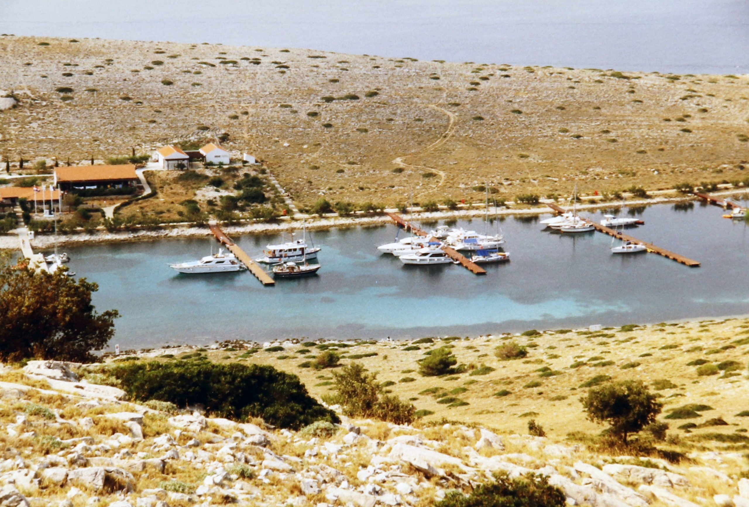 Der Blick auf unseren Hafen auf der Insel Piskera. Am mittleren Steg haben sich übrigens Michael und Jasmin Plank kennen gelernt. Der Kornati-Nationalpark, umfasst einen Teil der Inselgruppe der Kornaten eines Archipels in der kroatischen Adria. Die Kornaten stellen die dichteste Inselgruppe im Mittelmeer dar und wurden 1980 als Nationalpark unter strikten Naturschutz gestellt.
