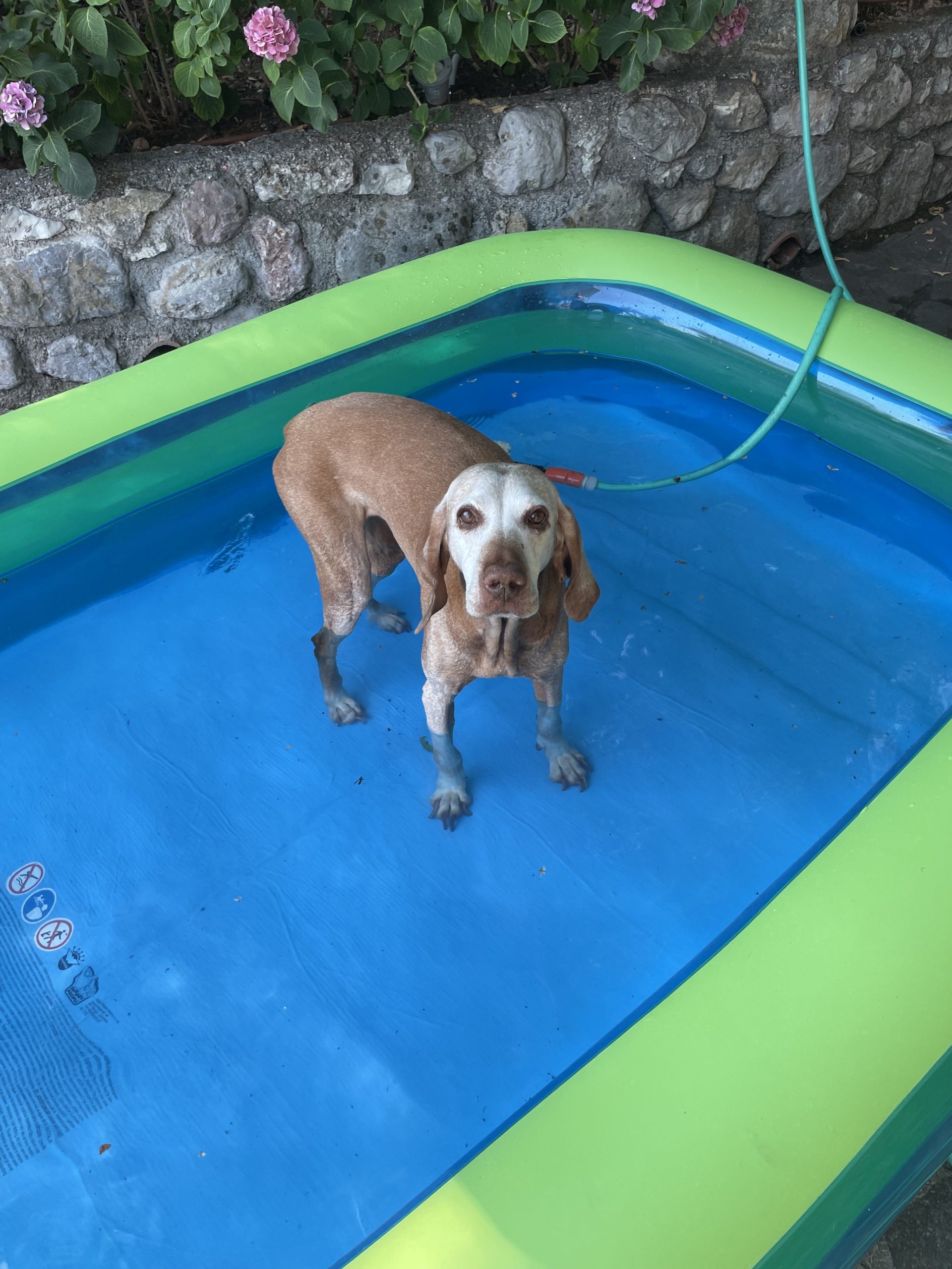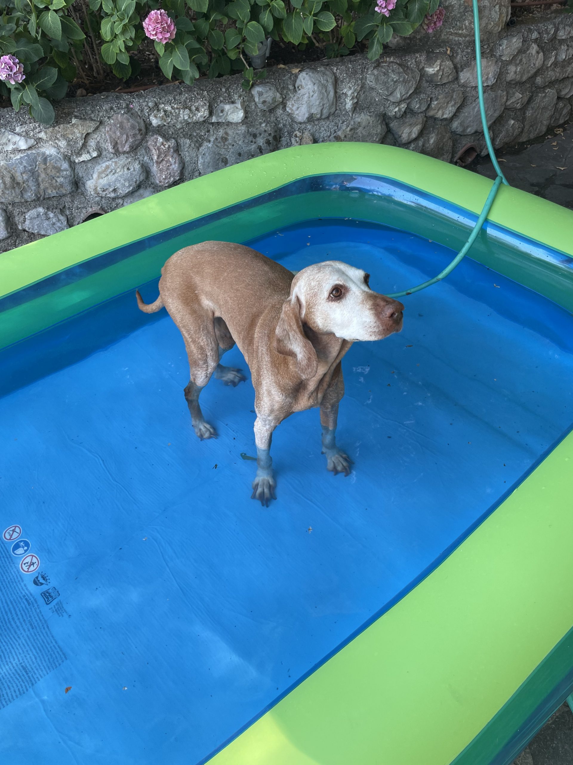 Tati hat mit Wasser und Pools keinerlei Berührungsängste ... bei Ginger muss schon jemand als gutes Beispiel voran gehen