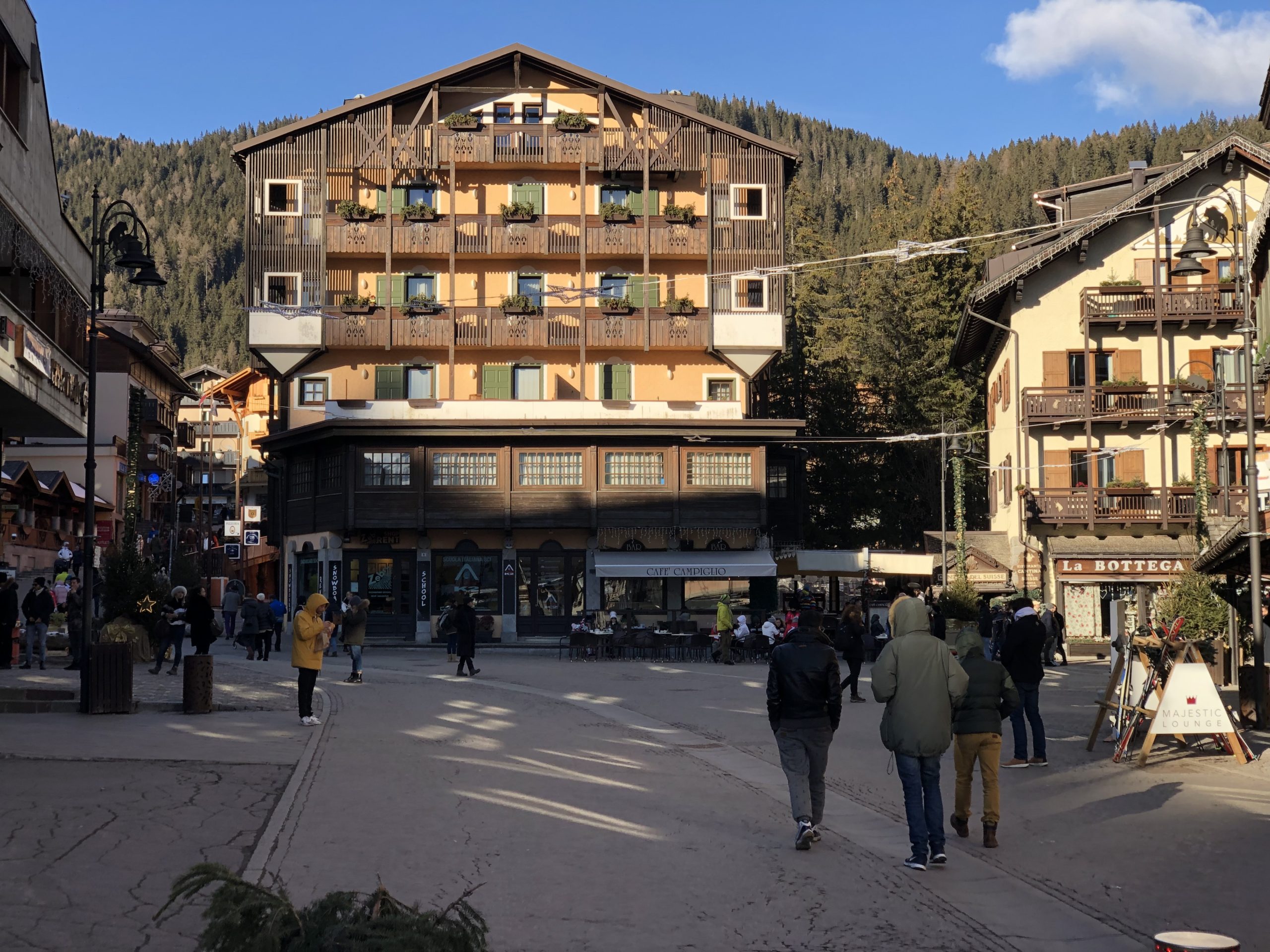 Mit Madonna di Campiglio haben wir im Winter einen von Gardone-Riviera aus gut erreichbaren mondänen Skiort, der keine Wünsche offen lässt. Nach knapp anderthalb Stunden Fahrt über circa 100 km Bundesstrasse ist man in einem ausgedehnten Skigebiet mit vielen Pisten bis auf 2.600 Meter Höhe. Madonna di Campiglio ist bis heute Austragungsort im Alpinen Skiweltcup mit drei Rennen auf den Pisten von Canalone Miramonti. Auch war es viele Jahre lang Heimat der Ferrari Skitage, woher wohl auch die Fiat Hütte als edle Gastronomie auf 2.000 Meter Höhe stammt. Mit Michael Fehringer und der Gehrckens Family samt Friends war ich zum Ende des Jahres letztmalig dort.