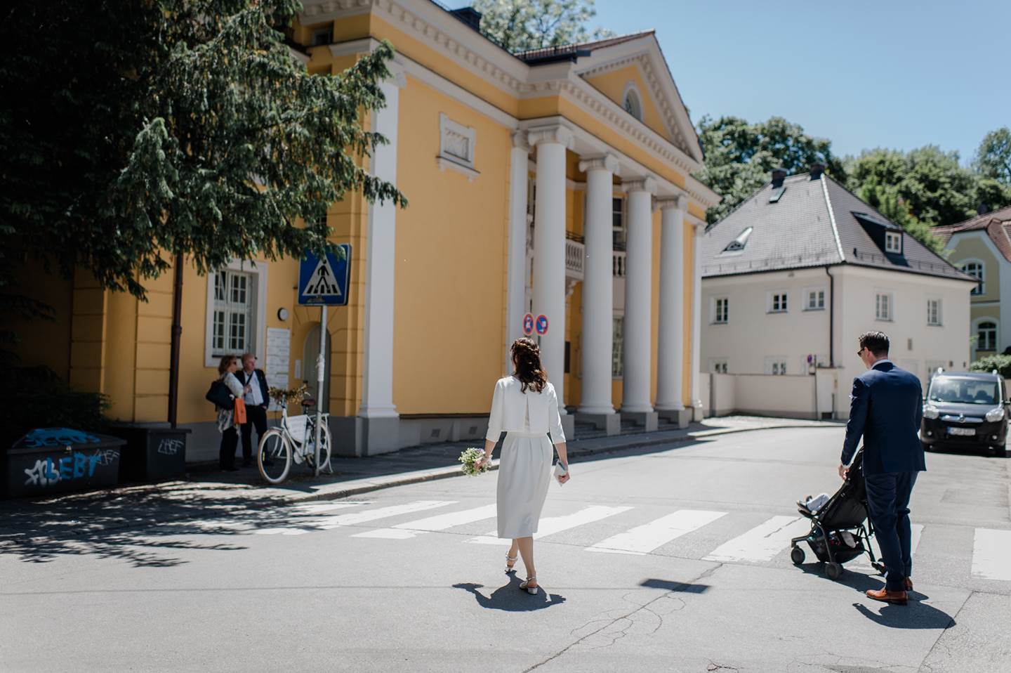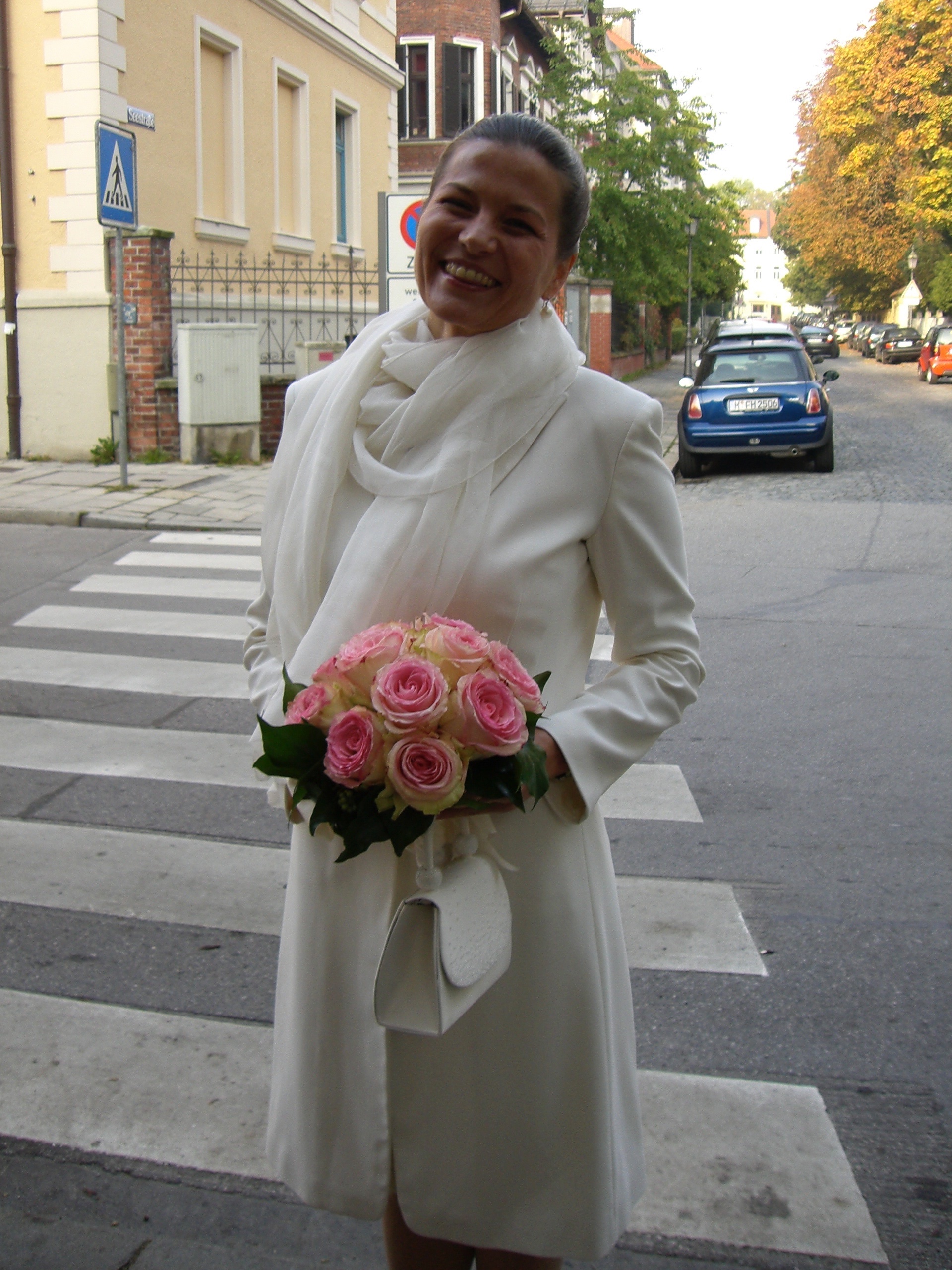 Andrea als erwartungsvolle Braut vor dem Standesamt in der Schwabinger Mandlstrasse ....