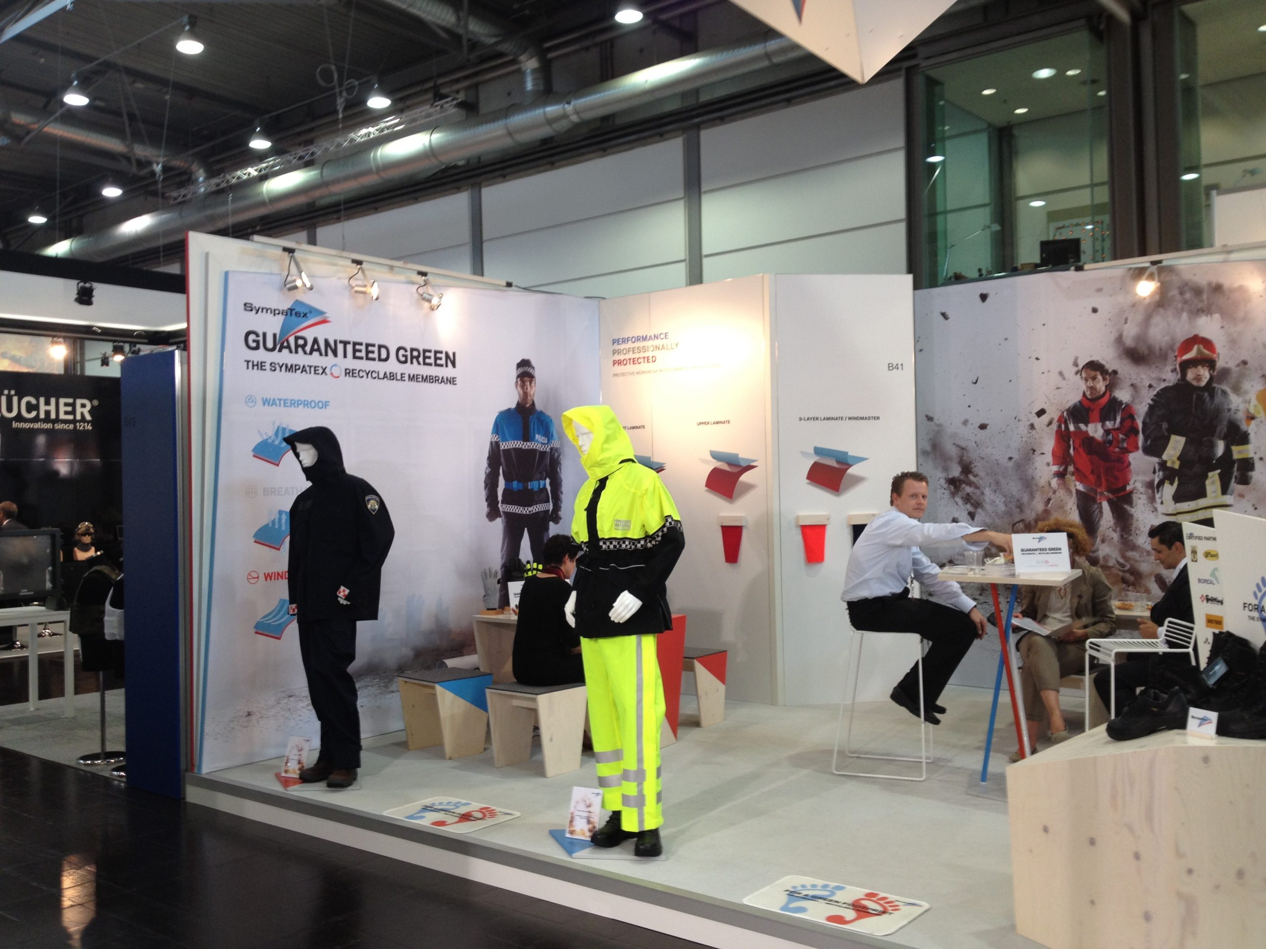 Die Demotools winddicht, wasserdicht, atmungsaktiv waren kleine Teststationen. Einfach die Hand reinhalten und probieren wie es sich anfühlt