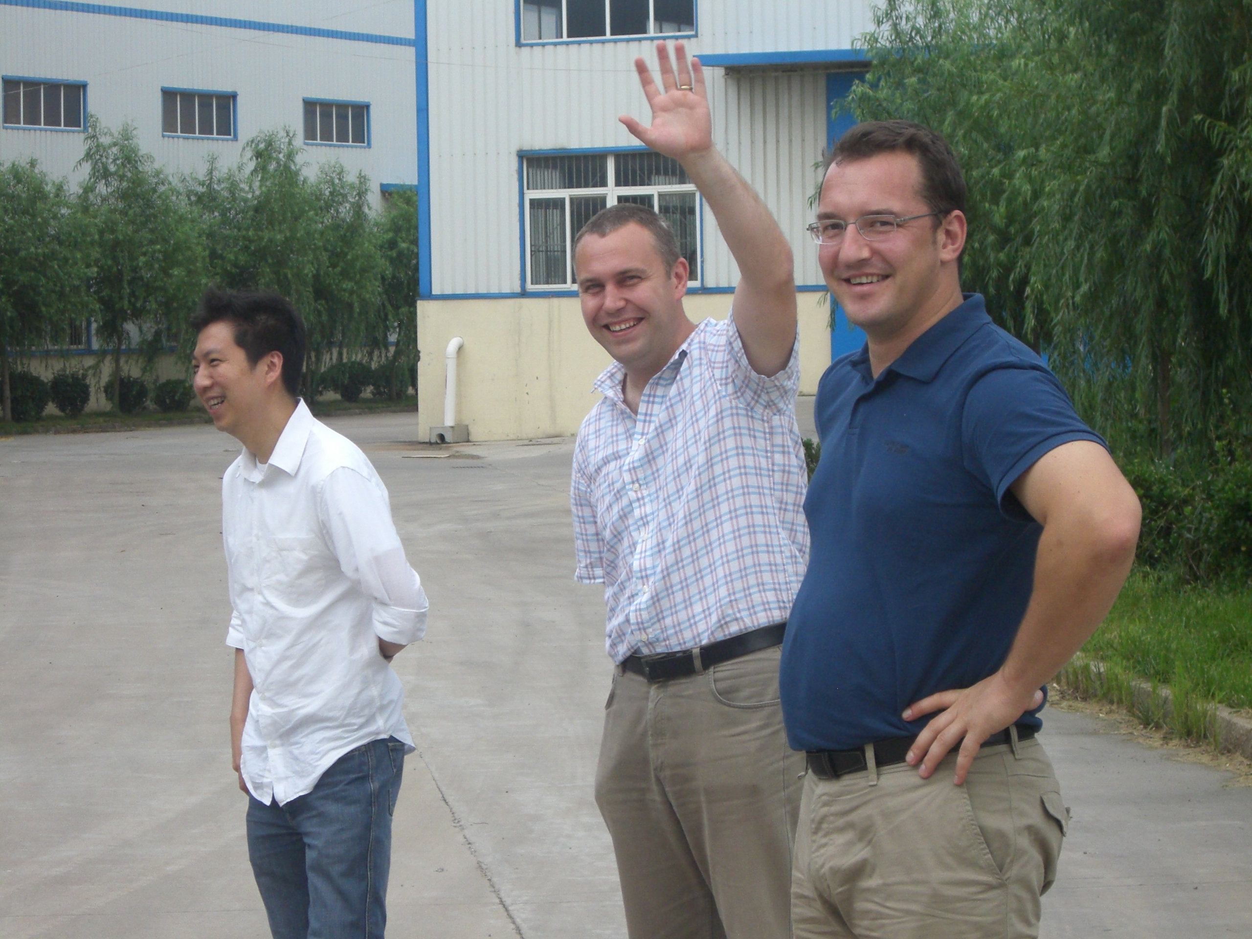 Regelmäßig fuhren wir nach Quingdao - der wichtigsten ehemals deutsche Kolonie mit den größten chinesischen Brauereien und schön am Meer gelegen - und grübelten dann, wie wir so viel Plüsch unter die Leute bringen könnten, bzw. ob so ein großer Haufen von Löwen wohl gut brennt. Hier mit unserem fröhlichen und gut gelaunten Asia Manager Andrew Cheng links, Richard Ortly, dem COO unserer Eigentümer SVP (Strategic Value Partner) in der Mitte sowie dem Asset Manager der SVP Stephan Menzel ganz rechts