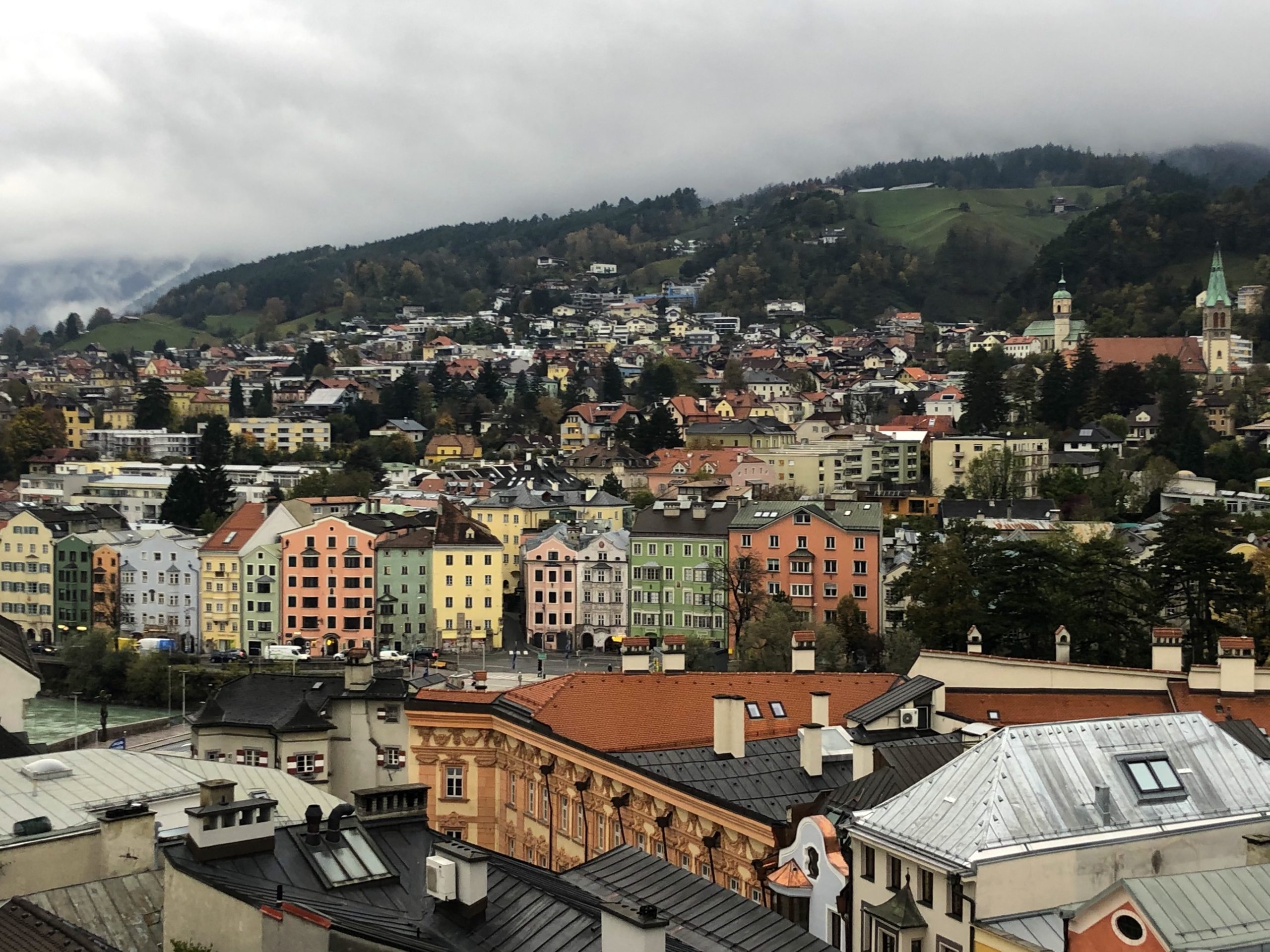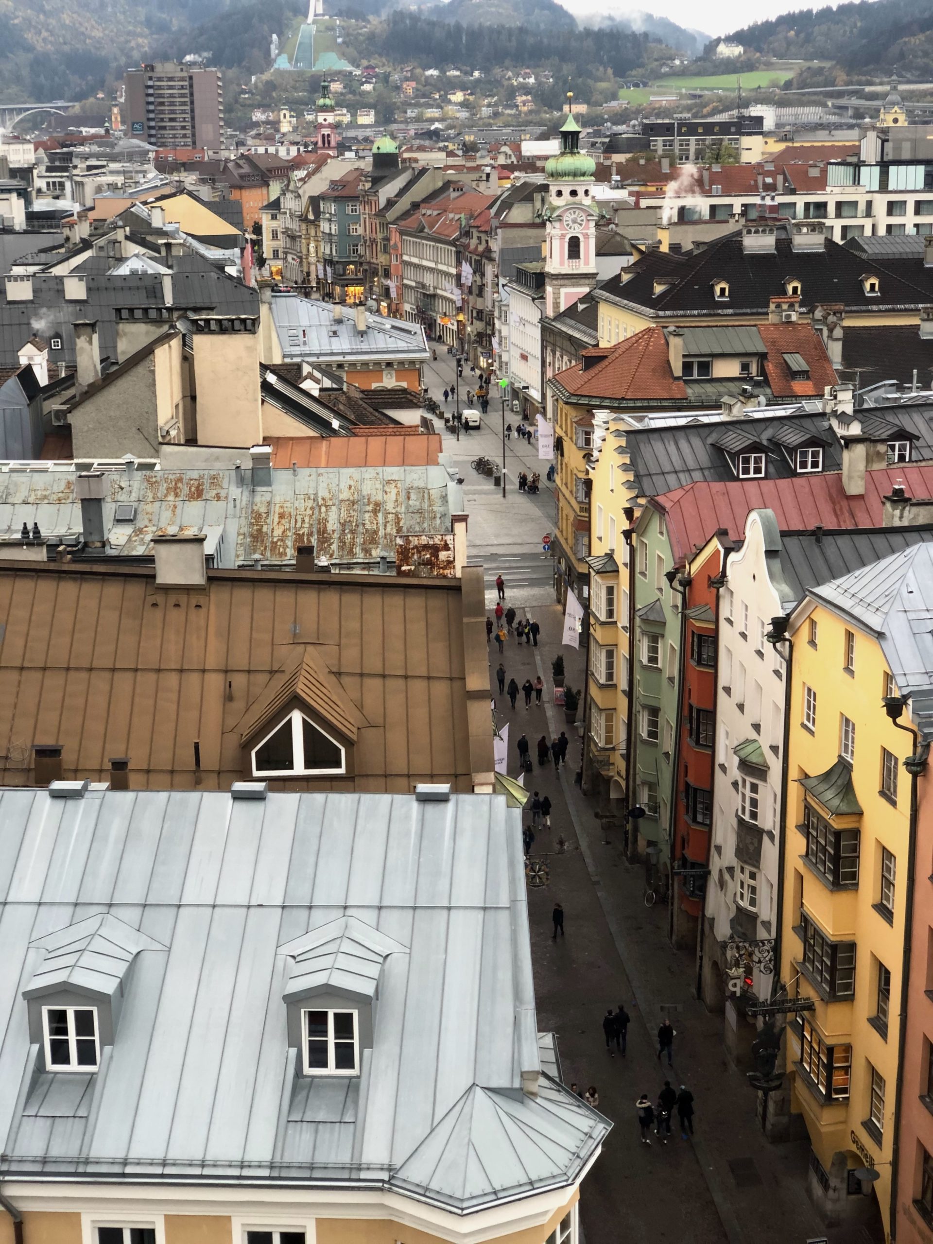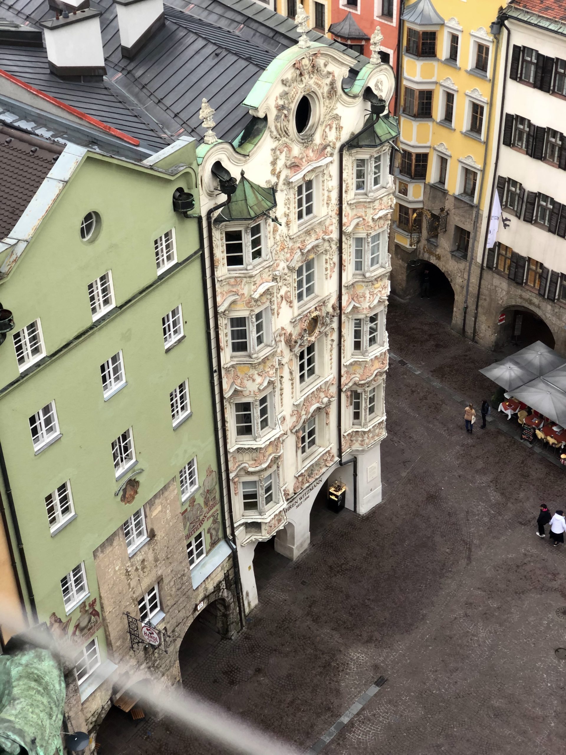 Endlich mache ich wieder einmal einen kurzen Besuch im schönen Innsbruck. Ich erkunde die Stadt bei einem Stop auf der Fahrt von München an den Gardasee und während Annette Ihre Kunden in der Stadt besucht. Das überregional bekannte Goldene Dachl ist natürlich Pflichtprogramm; zudem habe ich allerdings auch keine Mühen gescheut und kletterte auf den Stadtturm rauf. Ein guter Aussichtspunkt zur Orientierung und um Innsbruck aus romantischer Perspektive kennenzulernen.