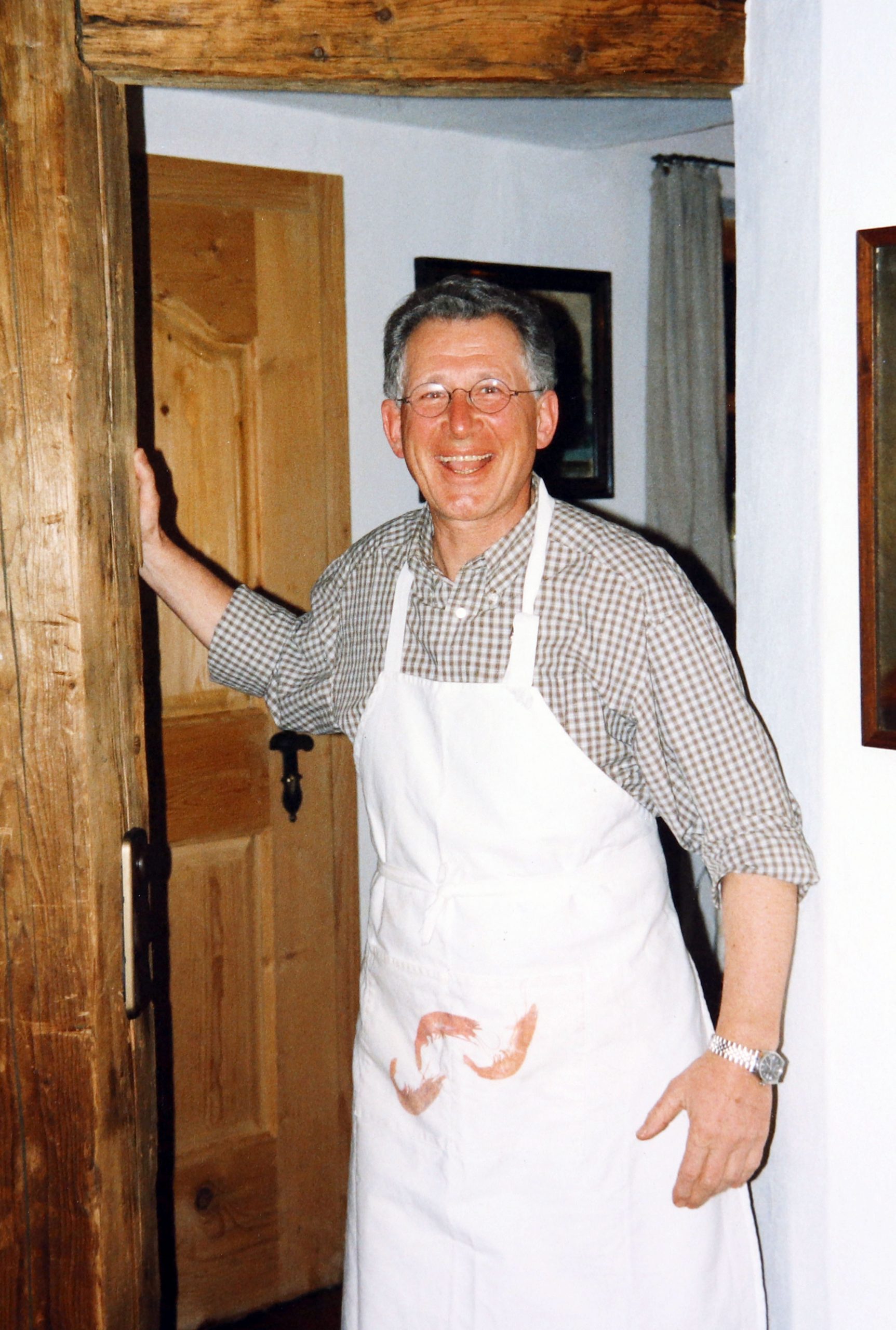 Karl - wie immer der perfekte Gastgeber - empfängt uns bereits in seinem Lieblingsoutfit als Maitre de Cuisine