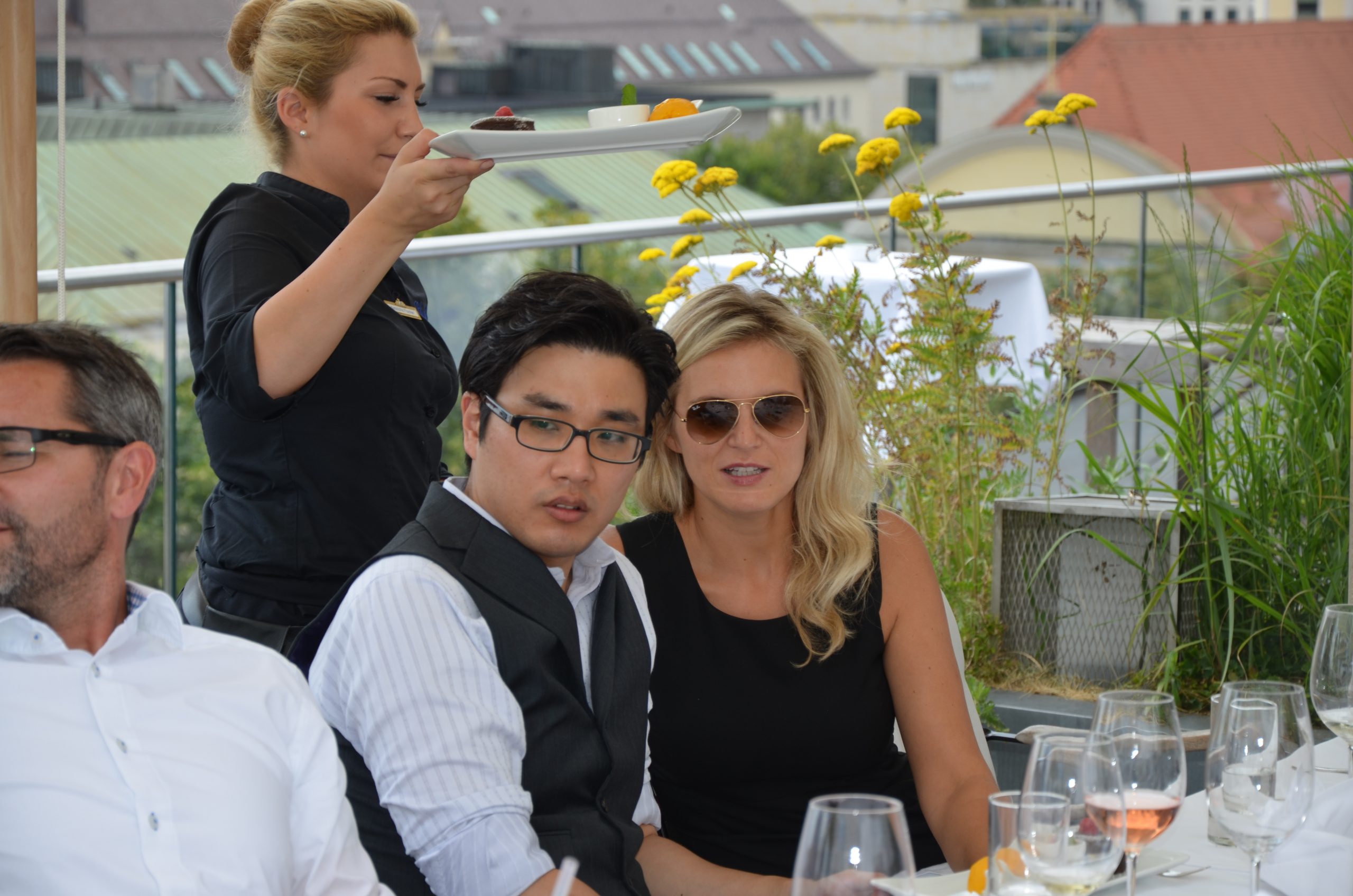An einem wunderbaren Hochsommertag feiern wir im Rahmen einer hochoffiziellen Veranstaltung den Abschluß der Vereinbarung zur Belieferung des koreanischen Textilherstellers Kolping mit den Funktions Materialien unserer Marke Sympatex. Als Location für diesen Event haben wir uns die Dachterrasse des Hotels Bayerischer Hof am Promenadeplatz ausgesucht. Das Wetter spielt mit und so treffen wir uns bei strahlendem bayerischen Himmel vor der Kulisse der Frauenkirche, um an einem besonders optimal gelegenen Ecktisch die Vertragsunterschriften zu leisten und auf eine zukünftig gute Zusammenarbeit mit einem Bier anzustossen. Zum anschliessenden Mittagessen waren unsere bei dem Projekt involvierten Sympatex Mitarbeiter Steven Kim, Nina Saxinger, Sonja Zajontz, Haymo Strubel sowie Beate Hoerl natürlich auch eingeladen. An weiteren Gästen haben wir Banker, Messeleitungen, Anwälte, Steuerberater und Wirtschaftsprüfer mit dabei. Zudem das gesamt Team und die Familie von Man Young Park, dem Eigentümer der Firma Kolping. Es war ein wunderbarer Nachmittag und wir haben seit diesem Tag eine erfolgreiche Zusammenarbeit in Korea begründet.