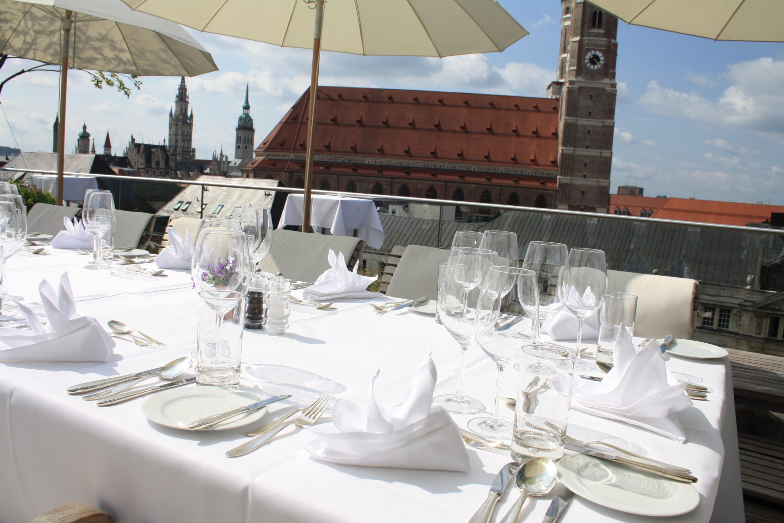 Bei schönem Wetter ist die Dachterrasse des Blu Spa eine wunderbare Location, um in München zu essen oder einen Empfang zu haben