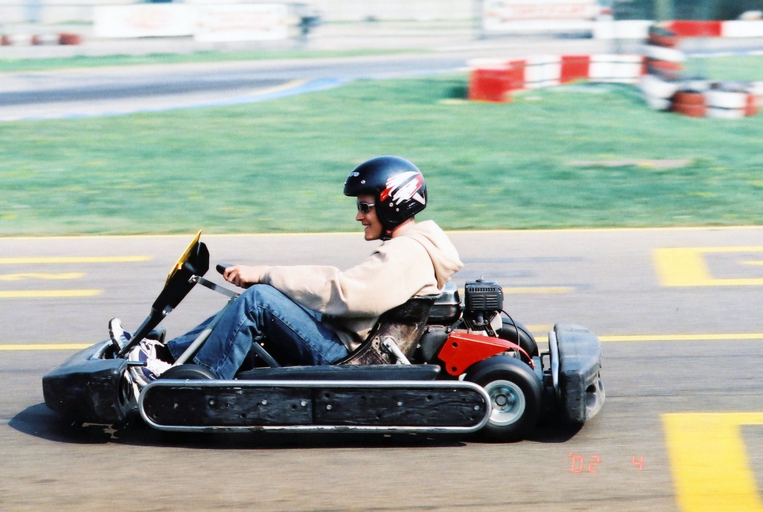 Paul checkt die Lage beim Boxenstop und Quirin Hornberger arbeitet an der Poolposition ... ärgerlich war, daß während unserer sportlichen Aktivitäten mit den Karts auf der Piste das Auto von Hornbergers Freunden auf dem Parkplatz hinter der Tribüne aufgebrochen und leergeräumt wurde