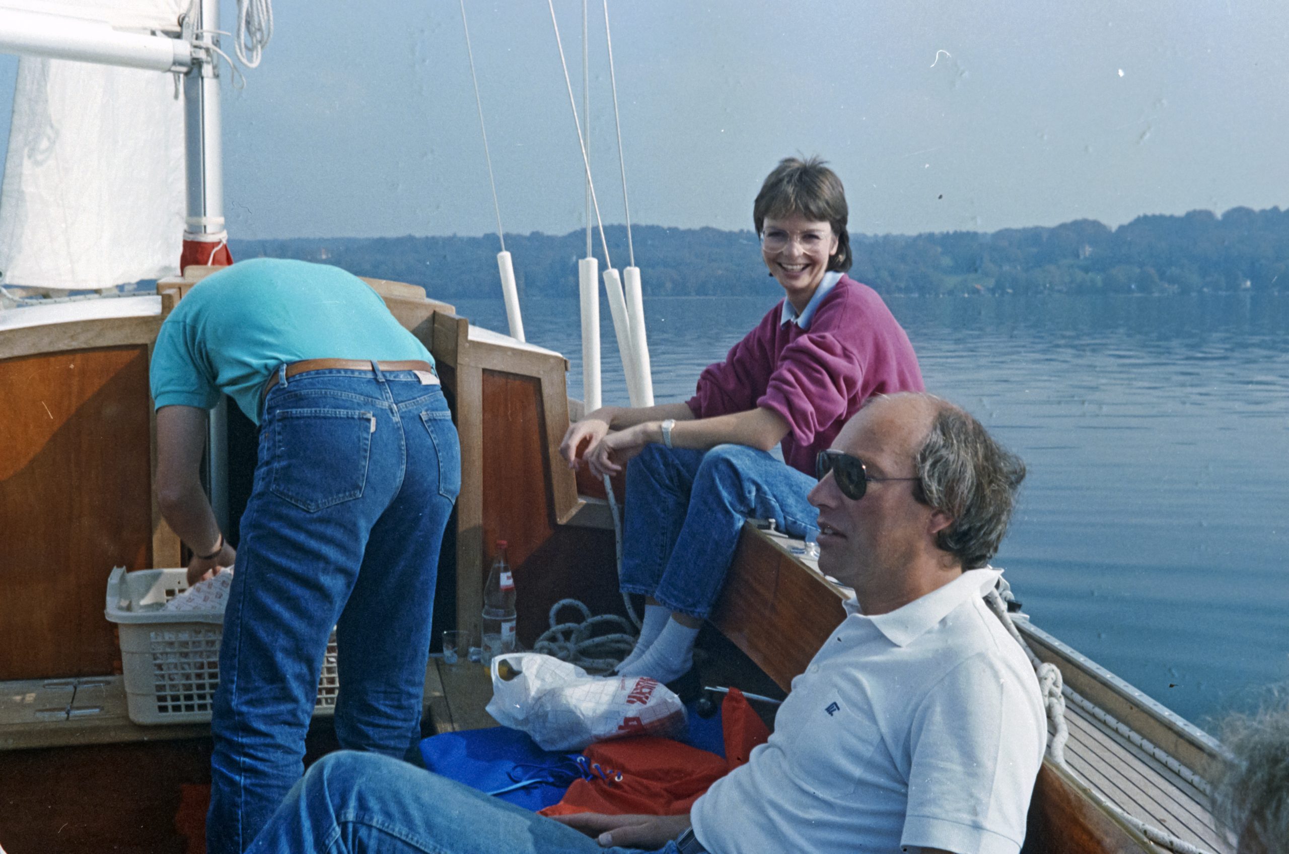 In meiner beruflichen Phase als junger Berater bei meinem ersten Job in der amerikanischen Wirtschaftsprüfungsgesellschaft Arthur Andersen war mein absolutes Lieblingsmandat die Firma North Sails am Starnberger See. Dies einerseits deshalb, weil ich die Segel des Unternehmens selber schon in meiner Regattaphase verwendet habe und andererseits, da die North Sails Truppe in Penzberg immer besonders nett zu meinem damaligen Kollegen Joerg von Petrikowsky und mir gewesen sind. Daher haben wir uns für diese Firma auch besonders engagiert eingesetzt und viele positive Entwicklungen als Berater eingeführt und voran getrieben. Zum Dank wurden wir vom North Sails Team zu einem Segelausflug auf den Starnbergersee eingeladen. Die Organisatoren des schönen Tages waren der damalige Finanzchef Erich Metterlein und der Leiter Customer Service Mucki Binder. Mucki war mit der Schwester des Werftbesitzers Markus Glas aus Possenhofen verheiratet, wodurch er auch Zugriff auf das damals größte Segelboot am See - den Seeadler - hatte. Mit diesem gingen wir dann Mitte Juni auf Tour - Joerg war besonders begeistert - und hatten neben der Gattin und dem Sohn von Mucki auch Erich und Johannes Fitz mit an Bord. Wind war eigentlich keiner ... jedoch war das Restaurant "Nordbad" - unser Ziel fürs Mittagessen zum Glück nicht weit entfernt. Zwei Jahre später habe ich dann übrigens die Seiten gewechselt und bin von Arthur Andersen zu North Sails gewechselt