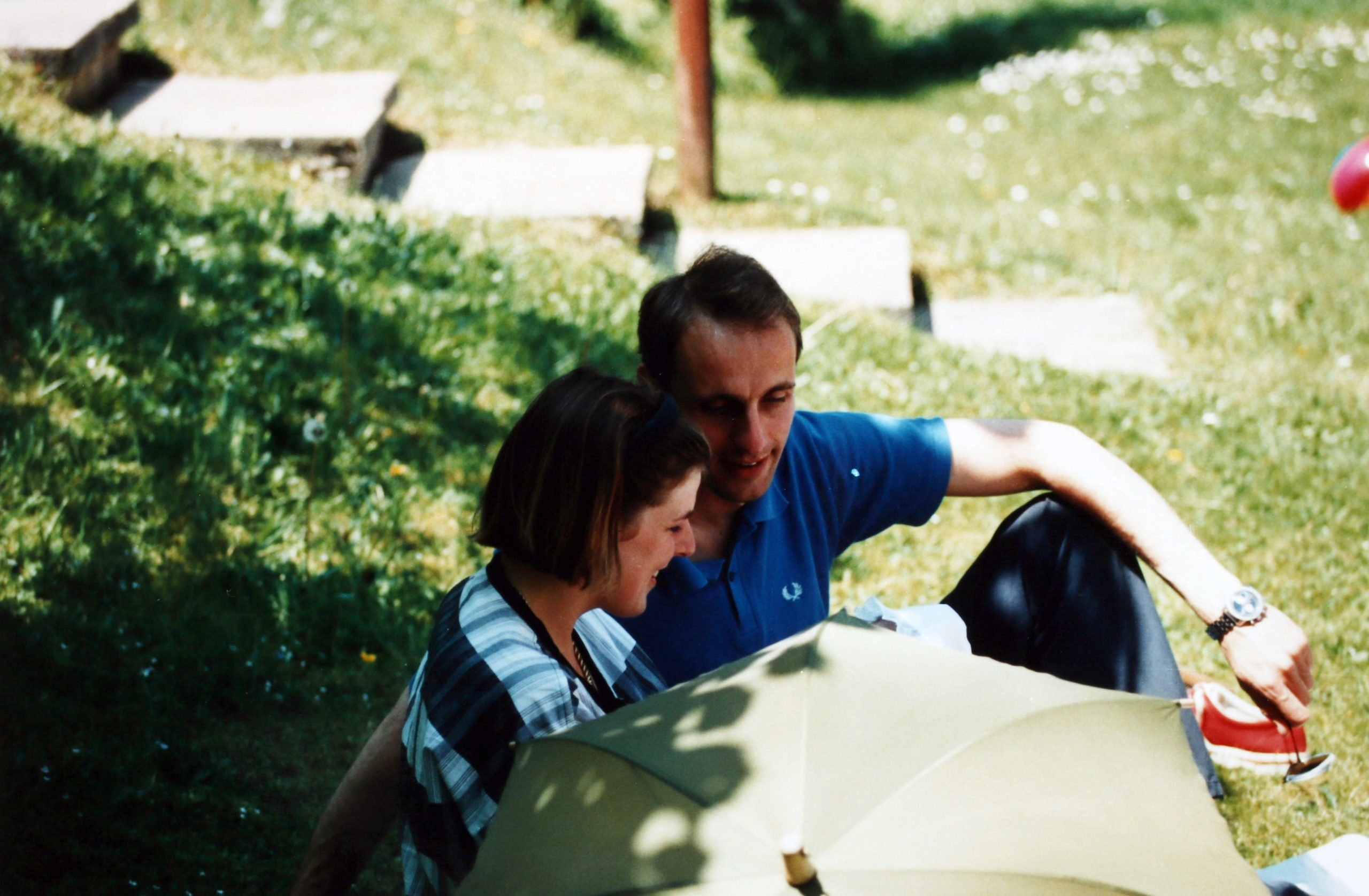 Perfekt abgeschirmt - Baby Larissa. Hier ist die Tante Ulrike mit Rolf ... einem der langjährigsten Freunde der Familie bei uns zu Gast