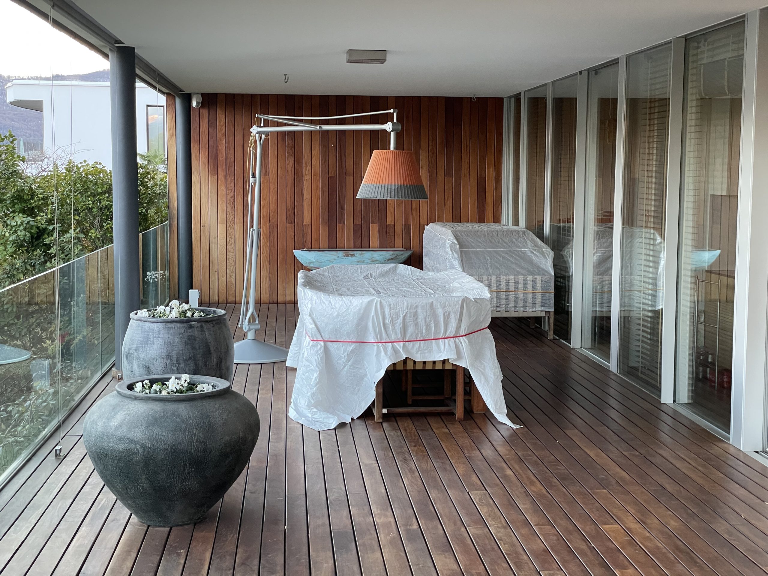 Die herrliche Terrasse war im Monat Februar noch nicht im Betrieb