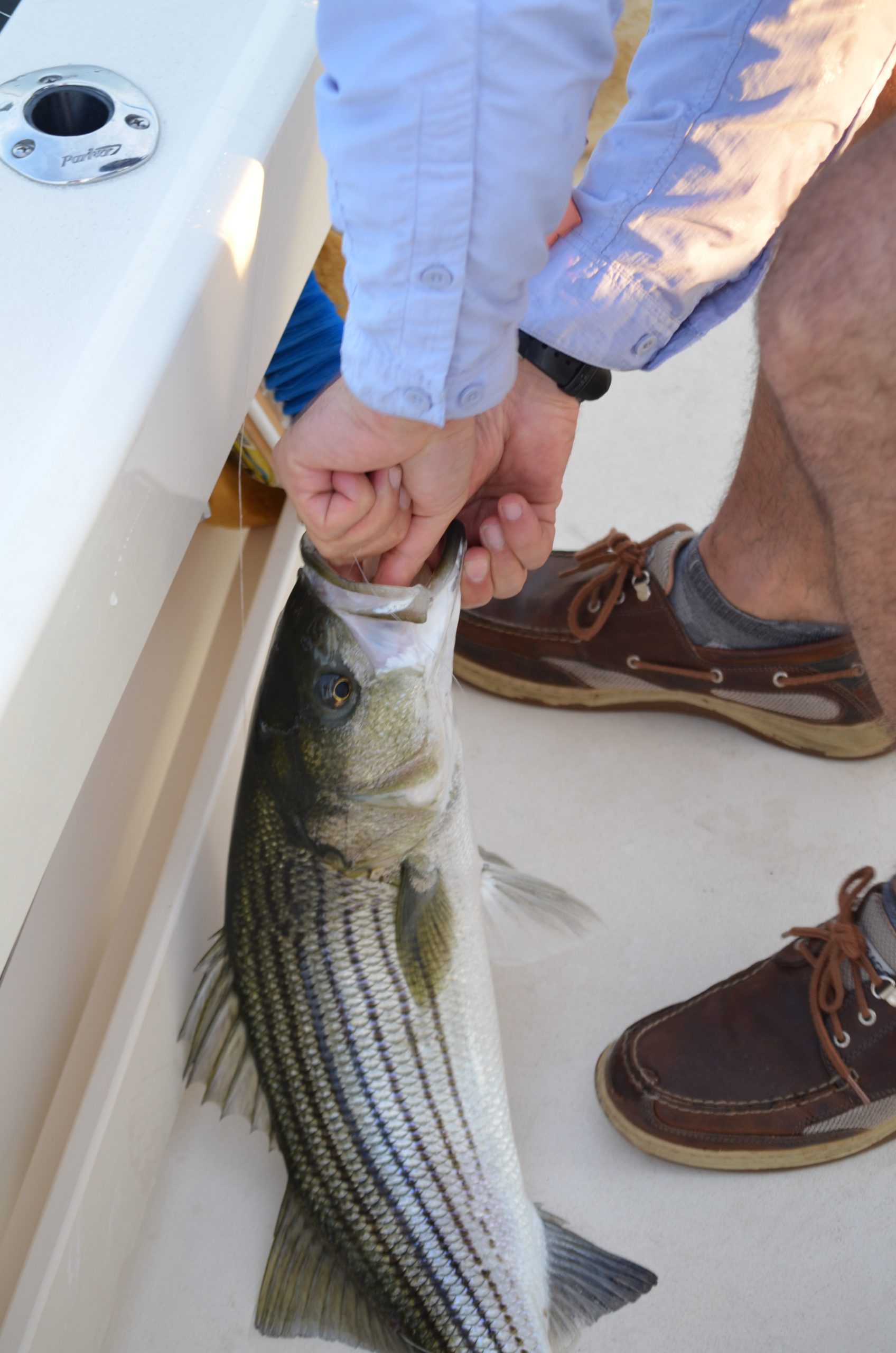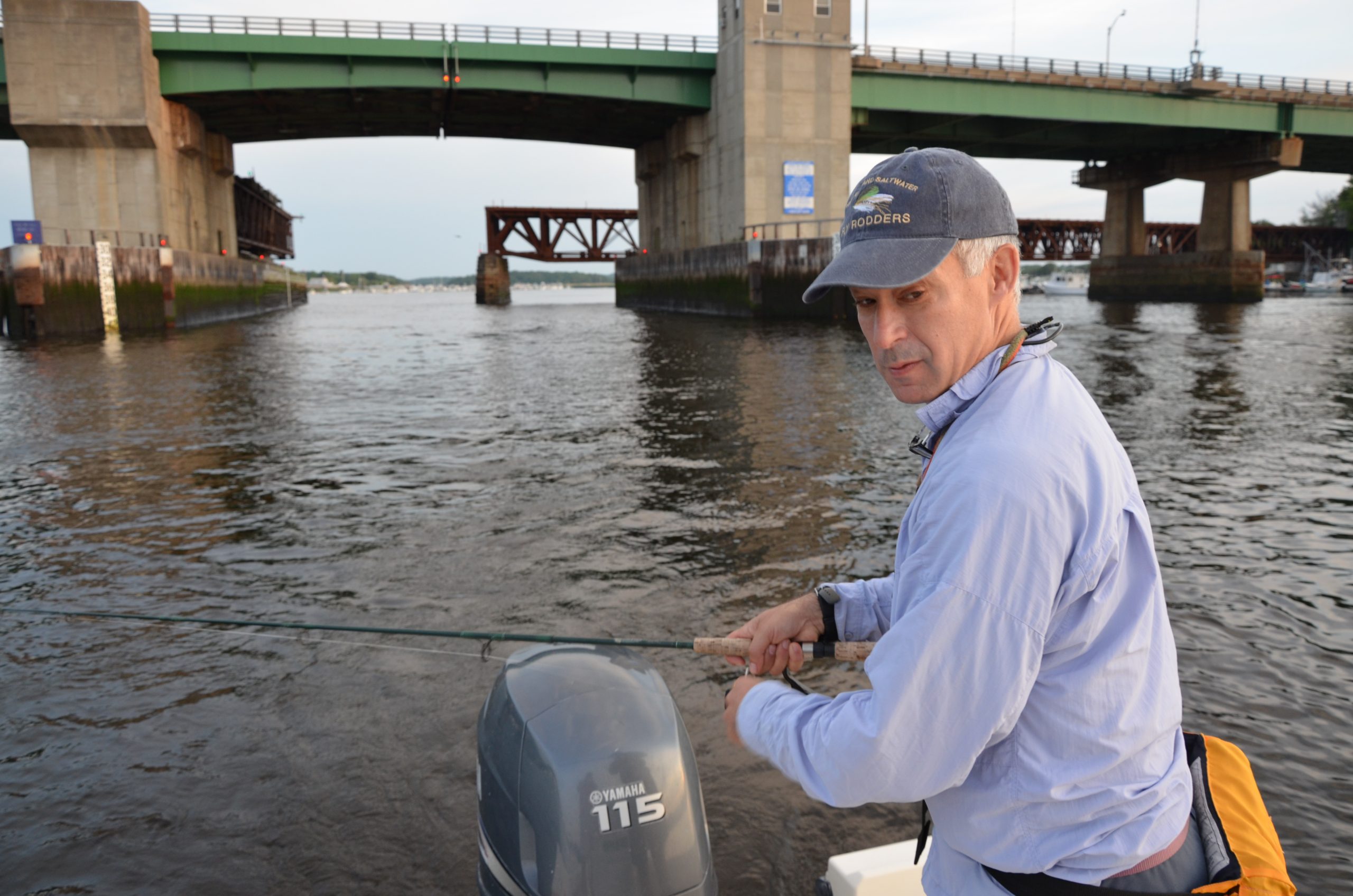 Wenn ich das Glück hatte, im Sommer bei unserer US amerikanischen Tochtergesellschaft Sympatex Inc. Termine in Newburyport im Ostküstenstaat Massachussets wahr zu nehmen, zog es mich gemeinsam mit unserem dort verantwortlichen Managing Director Stephen Kerns bei schönem Wetter frühmorgens aufs Wasser, da wir beide begeisterte Angler sind. Mit Stephens Boston Whaler fuhren wir dann den Merrymack River, der die Grenze zwischen Massachussets und New Hampshire bildet flußabwärts und durch die Flußmündung an Plum Island vorbei, um auf offener See Fische zu fangen. Immer wieder ein Erlebnis und zudem eine großartige Gelegenheit sich in Ruhe an Bord auszutauschen. Stephen ist ein extrem versierter Angler und auf alle Kaliber vorbereitet. Auch diesmal konnten wir uns Petri Heil zurufen, da wir beide ganz ordentliche Burschen aus dem Wasser holen konnten.