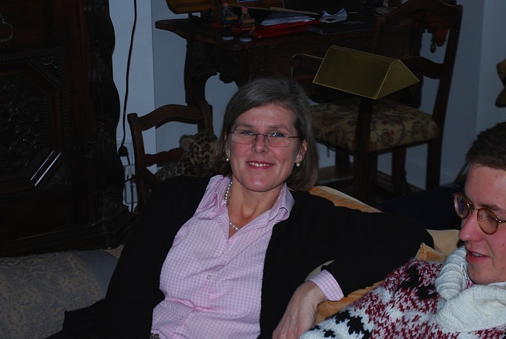 Auch meine Schwester Ulrike kann als Arbeits vorbereitende Gastgeberin noch lachen ... hier schon im entspannten Gespräch mit ihrem Neffen Paul