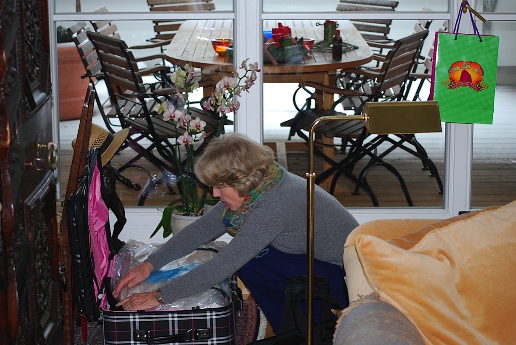 ... und Oma Uta kämpft mit ihrem Koffer, wobei unsere Eltern bei Uli und Adam übernachtet haben