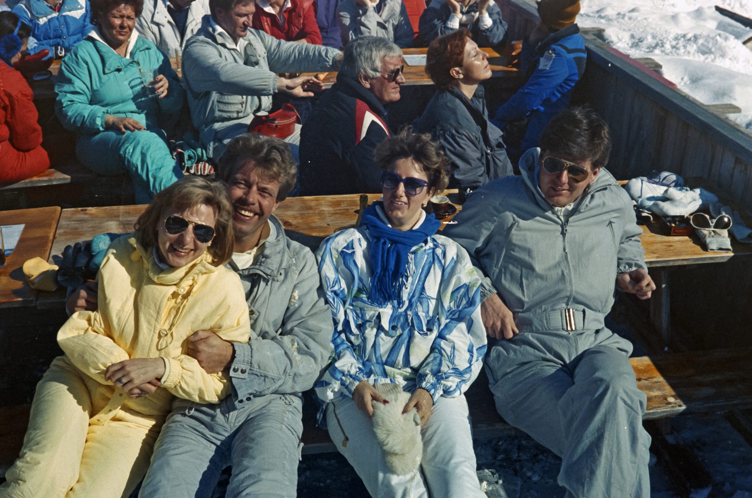 Und beim gemeinsamen Skiurlaub im Engadin ... hier mit Gaby Angermaier und Vogls sowie dem damaligen Freund von Miranda