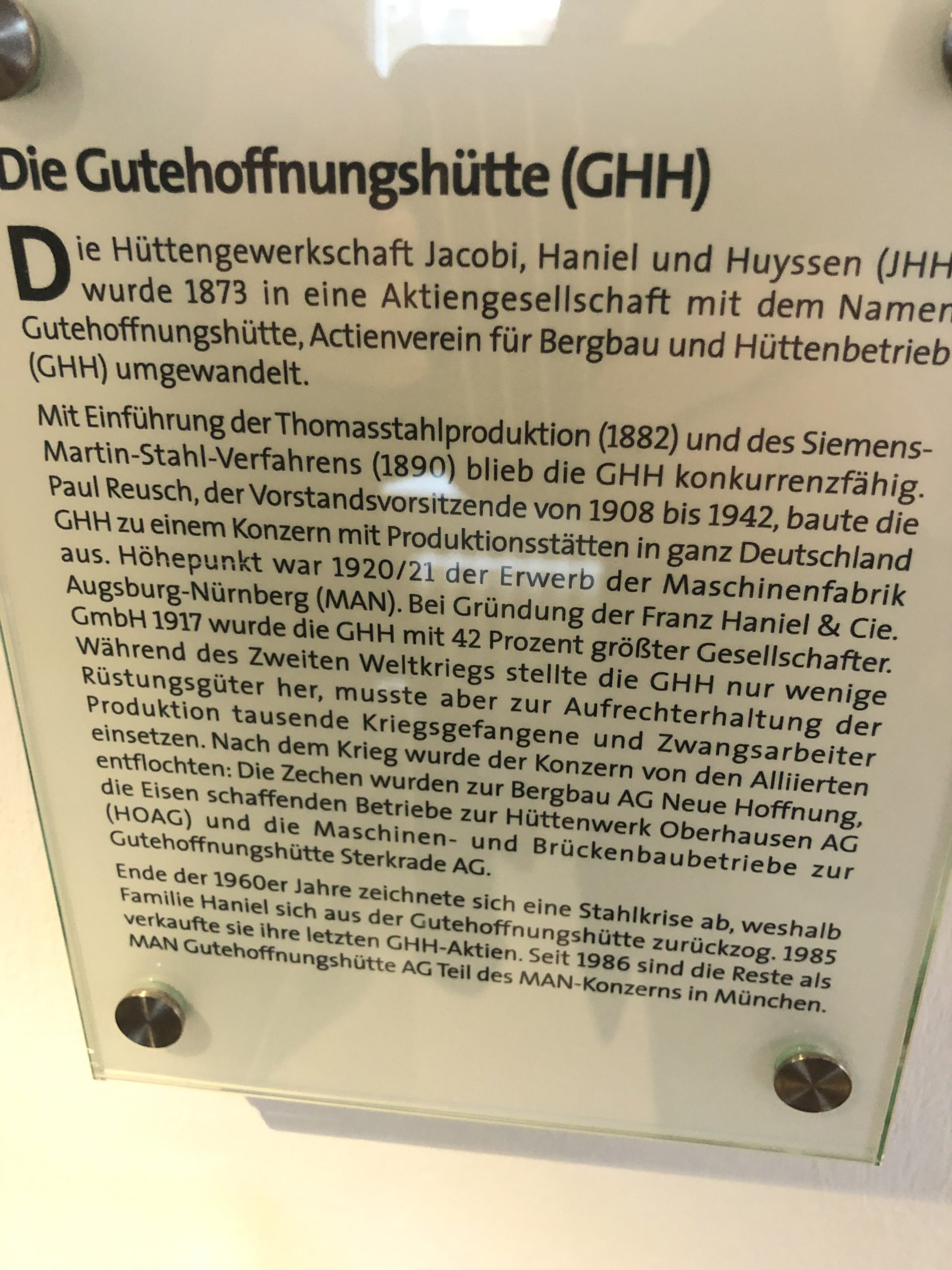 Man lernt nie aus: Die Gutehoffnungshütte, Aktienverein für Bergbau und Hüttenbetrieb (kurz GHH) war ein bedeutendes Montan- und Maschinenbauunternehmen mit Sitz in Oberhausen im Ruhrgebiet. Ursprünglich als reiner Hüttenbetrieb gegründet, expandierte die GHH frühzeitig in die Bereiche Bergbau und Weiterverarbeitung, wandelte sich im 20. Jahrhundert zum größten Maschinen- und Anlagenbauer Europas und ging schließlich 1986 im heutigen MAN-Konzern auf. Die Geschichte der GHH ist eng mit dem Namen der Unternehmerfamilie Haniel verbunden, so dass der Volksmund das Kürzel gern mit Gehört Hauptsächlich Haniel übersetzte. GHH hatte sehr viel später auch das Unternehmen unserer Familie - eine Aluminiumgießerei im Stuttgarter Raum - übernommen.