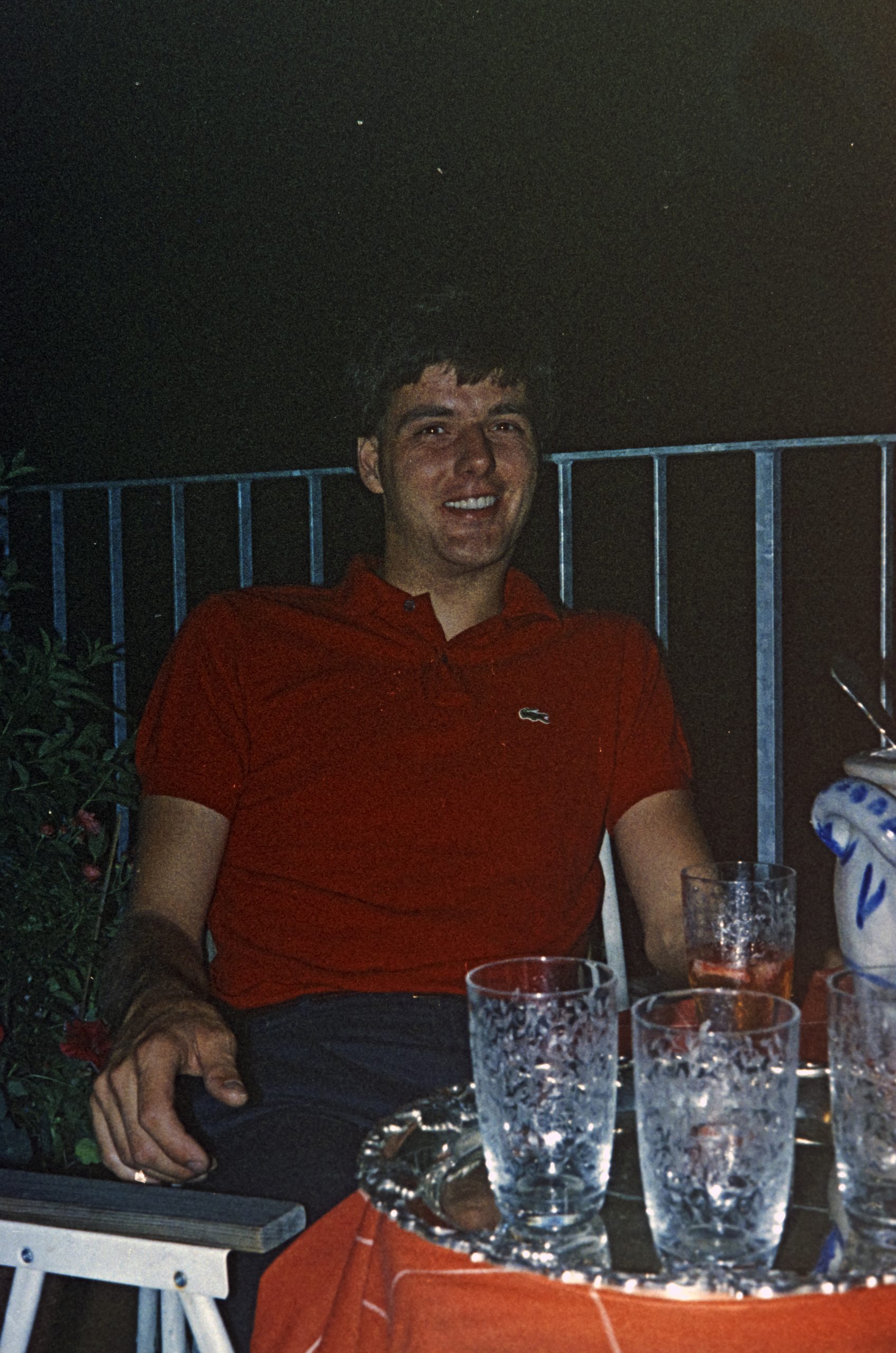 An einem sehr warmen 3. Juni feiern wir meinen 22. Geburtstag mit Simone und Wolf Mang, sowie Susanne und Dieter Schön bei einem Abendessen auf dem Balkon unserer Wohnung in der Schleissheimer Straße. Nici hat wie immer groß aufgekocht und wir amüsieren uns alle in einer 6er Runde prächtig .... ich steige auf das Dach unseres Hauses, um den Ausblick über Schwabing und den Massmannpark sowie den besonderen Augenblick des Älterwerdens zu geniessen. Im Nachhinein betrachtet ... unglaublich, wie wir als junge Studenten ausgeschaut haben. Die Mode damals bescherte uns Schulterpolster, Haarbänder, weiße Rüschchenblusen, Neonfarben, Schnurrbärte, Lacoste Polos in allen Farben....