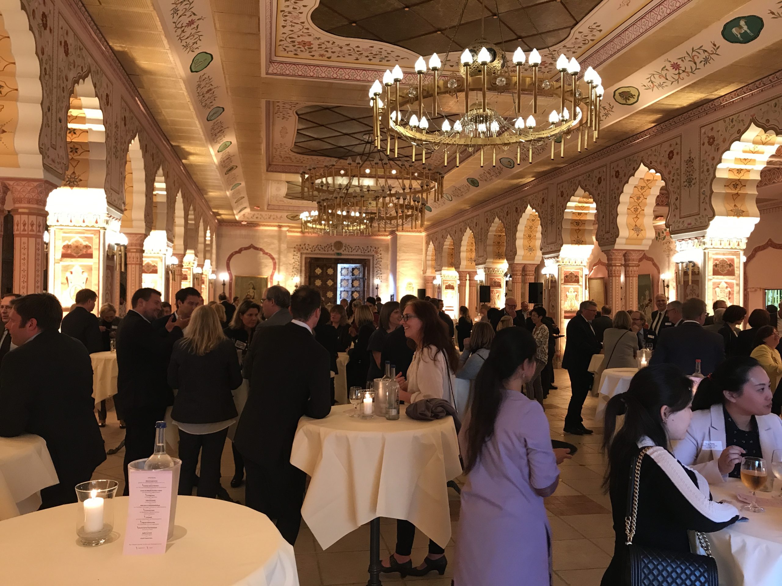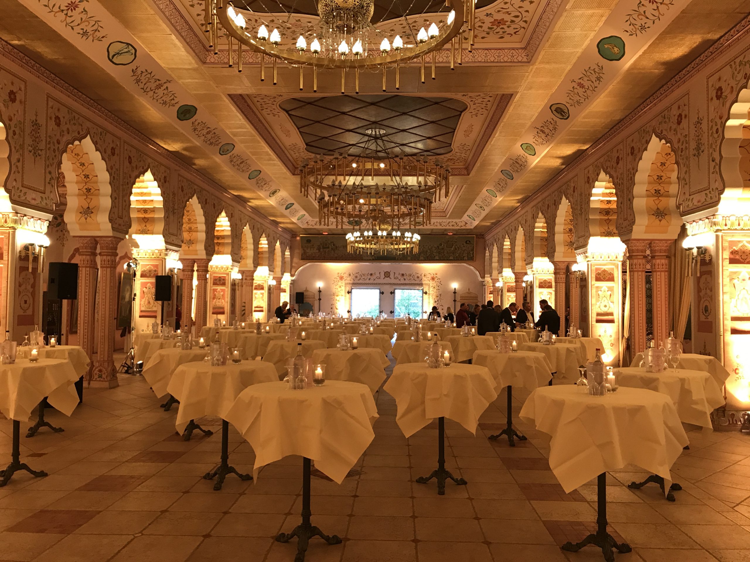 Die Feier hat einen sehr stilvollen Rahmen: Der Prunksaal des Maharadschas im Zoo. Exotischer Glanz so weit das Auge reicht: farbenfrohe Wandbemalungen, riesige Kronleuchter, indische Gemälde - bei jedem Blick kann man neue Details entdecken und sich fühlen, als wäre man beim Maharadscha persönlich zu Gast.