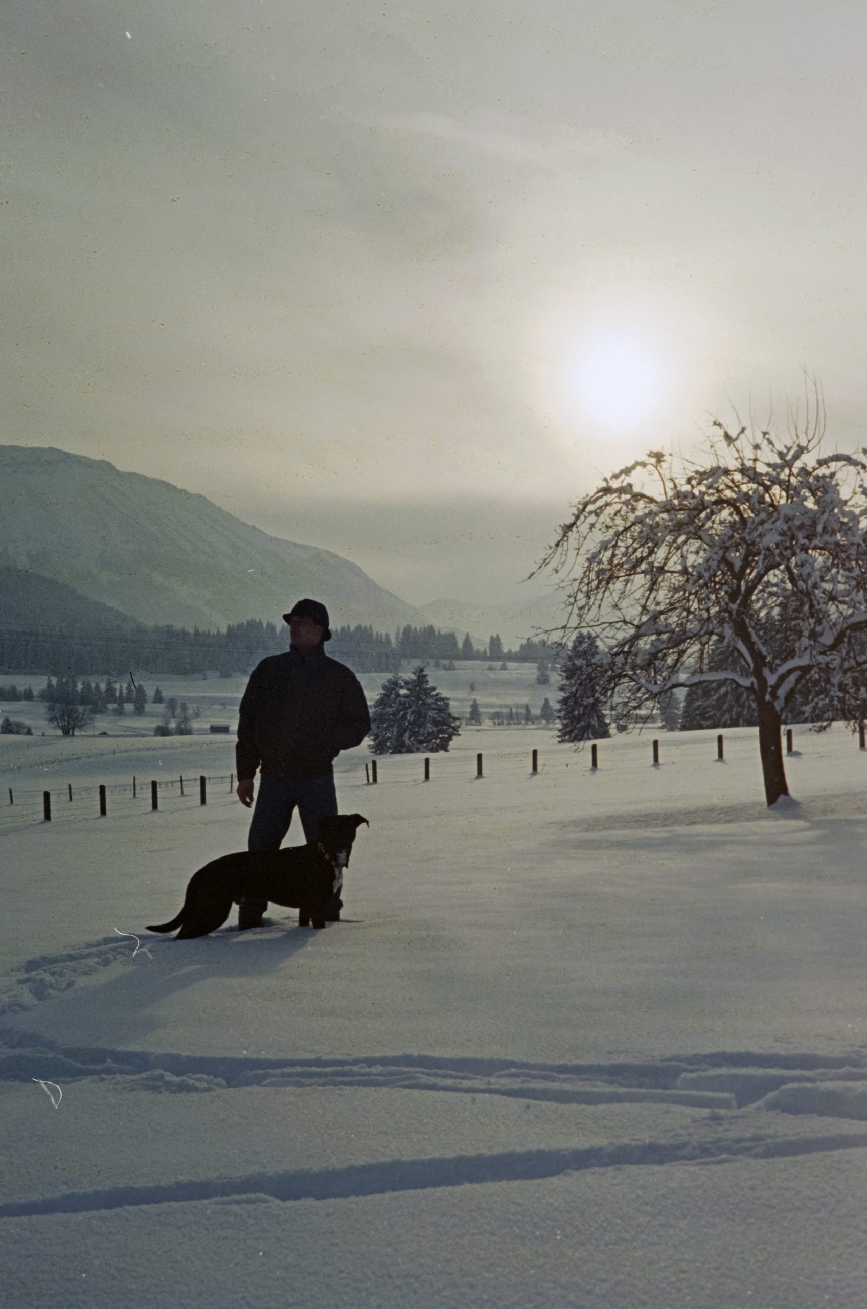 In der letzten harten Phase vor dem Start in unsere schriftlichen Examens Prüfungen im Früjahr verbrachten wir Mitte Januar ein ruhiges Lernwochenende auf dem Filserhof am Weissensee. Hierdurch erhielten wir den immer wieder mal nötigen Abstand von der Vorbereitung in unserer Münchner Wohnung. Herrlich sonniges Wetter verwöhnte uns auch diesmal im Allgäu, und zur Entspannung suchten wir auch hier - wie sonst im Olympiapark in Schwabing - unseren Rodelspaß am kleinen Hang im Garten. Auch Benjamin - unser Labrador Mischling - hatte mit uns Spaß an den Outdoor Aktivitäten. Mittags und abends wurden wir jeweils vom Verwalterehepaar Senft aufs köstlichste bekocht. Nicht nur die Kässpatzen von Frau Senft waren immer ein Gedicht, sondern besonders ihre Geflügelvariationen aus gebratenen Tauben. Herr Senft und seine Frau waren gebürtige Sachsen aus Haale an der Saale und der Gatte ein ehemaliger Eisenbahner. Damit war sein Hobby Brieftaubenzucht klar definiert, was uns in einen Vorteil bei der Frischfleischversorgung brachte. Immer wieder gerne zeigte mir Herr Senft auch seine noch aktiven Rennpferdchen oben im "Stall" des Filserhofs und erzählte mir dann vom großen Eisenbahnunglück in seiner ehemaligen Heimat.