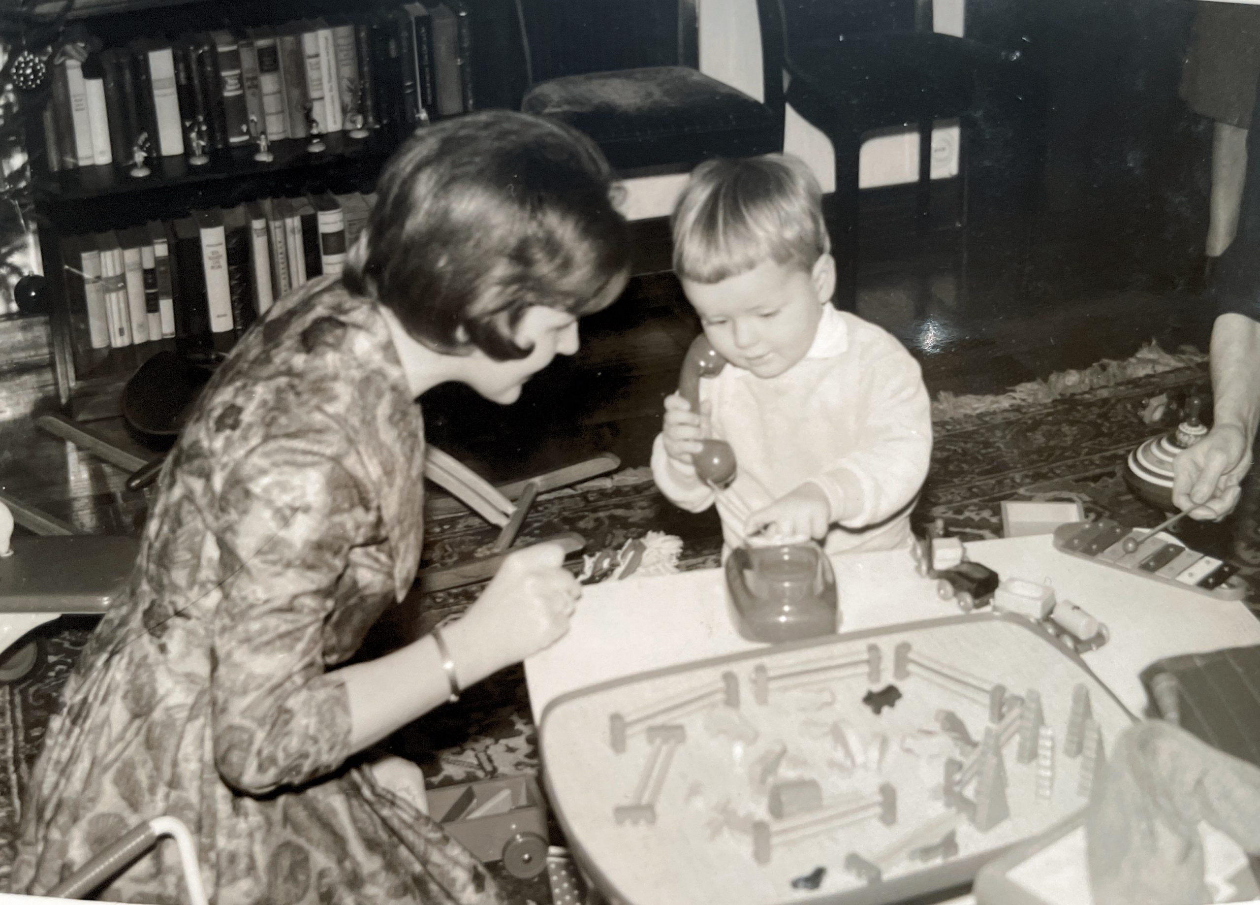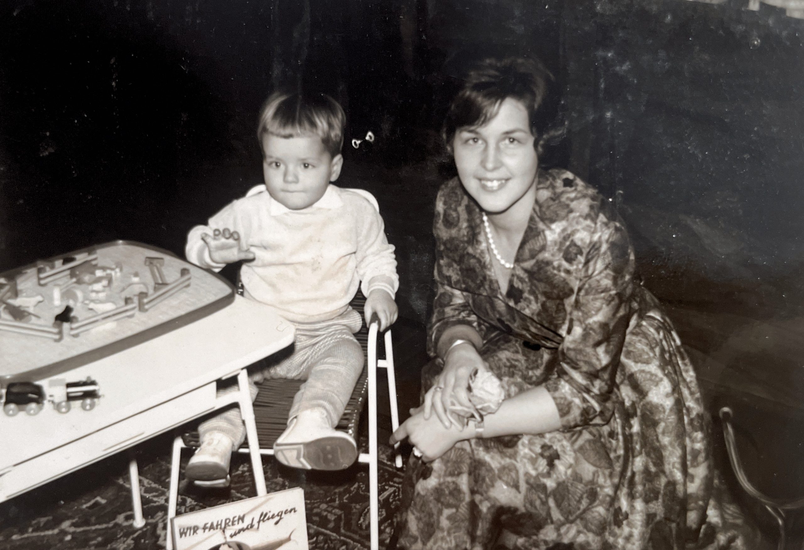 Unsere ebenfalls noch ziemlich junge Mutter mit damals 24 Jahren .... man beachte auch mein erstes eigenes Buch: Wir fahren und fliegen !!