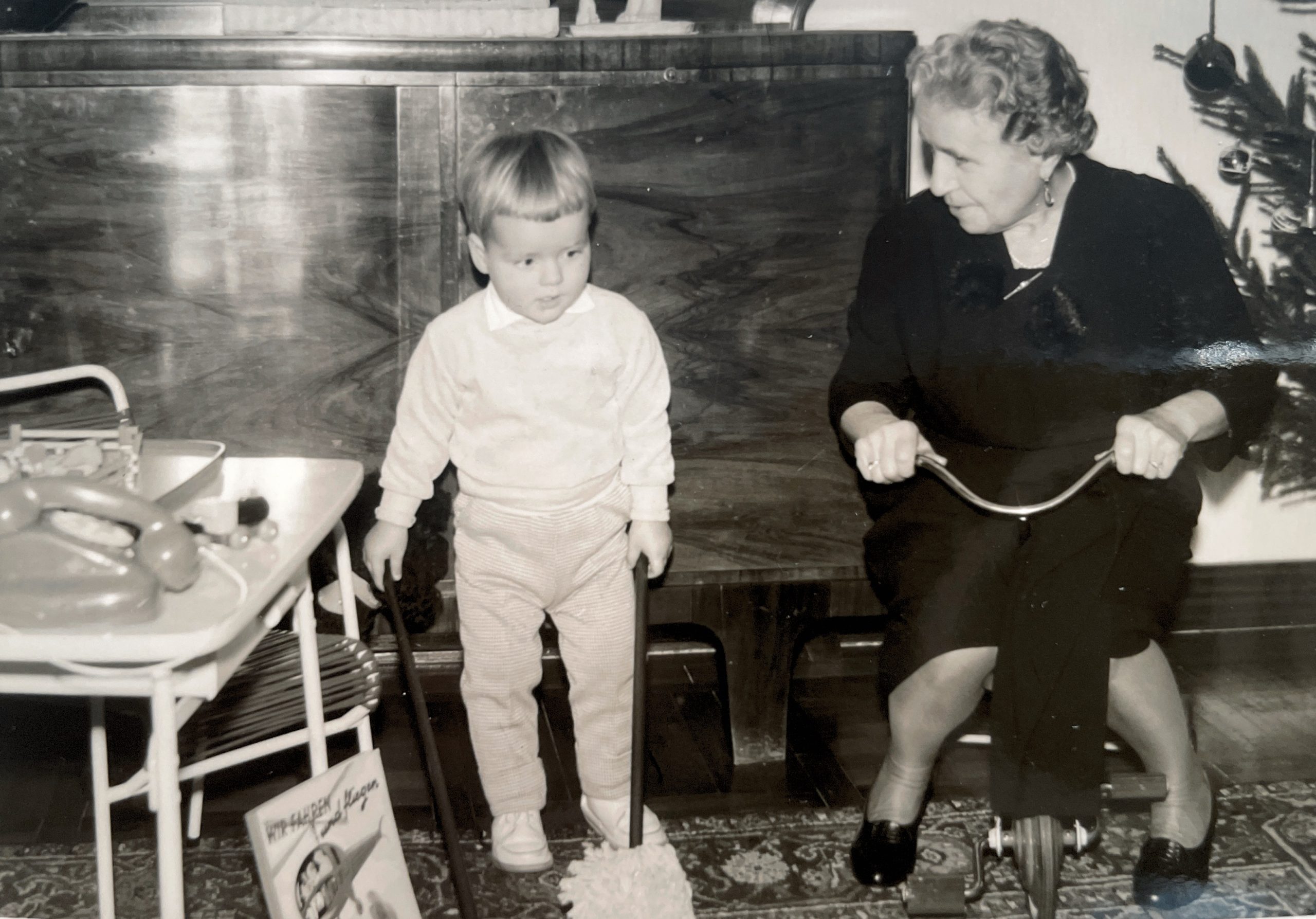 Hier versucht mir meine Oma auch noch die Nutzung meines ersten eigenen Bikes zu erklären