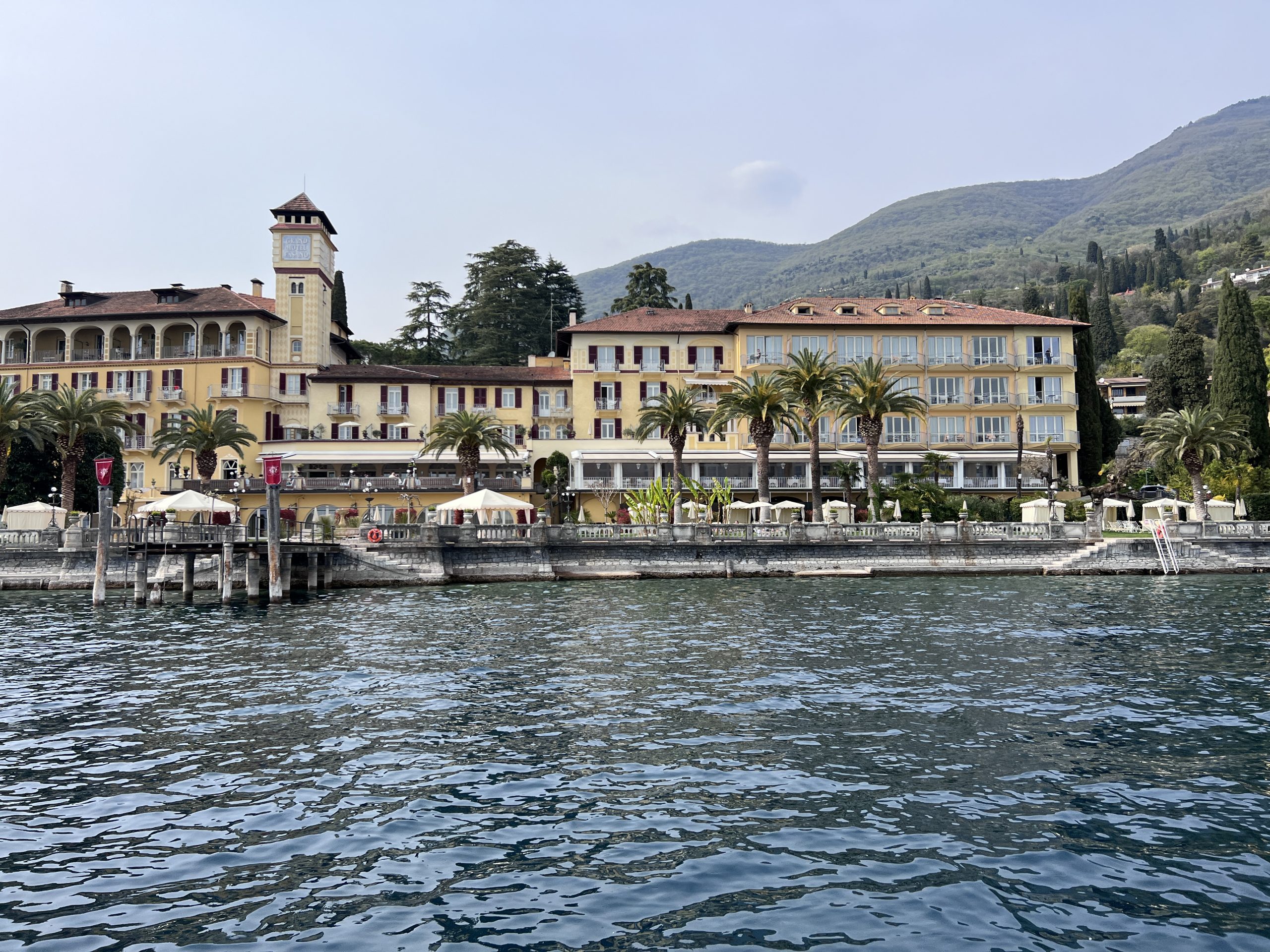 Mit Captain Justus cruise ich am Grand Hotel Gardone vorbei zu einem kleinen Ausflug entlang des Ufers, um Neubauten zu inspizieren