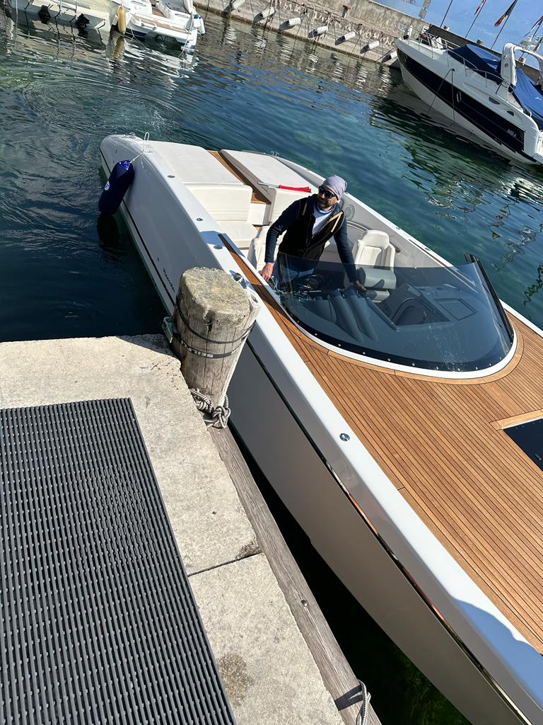 Christoph Pfaff dreht von Gargnano aus mit seiner noch neuen Frauscher Mirage und Lisa an Bord ebenfalls eine Runde auf dem See