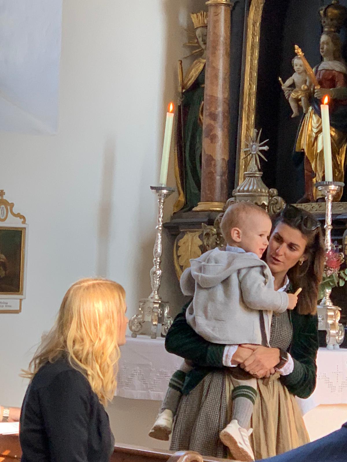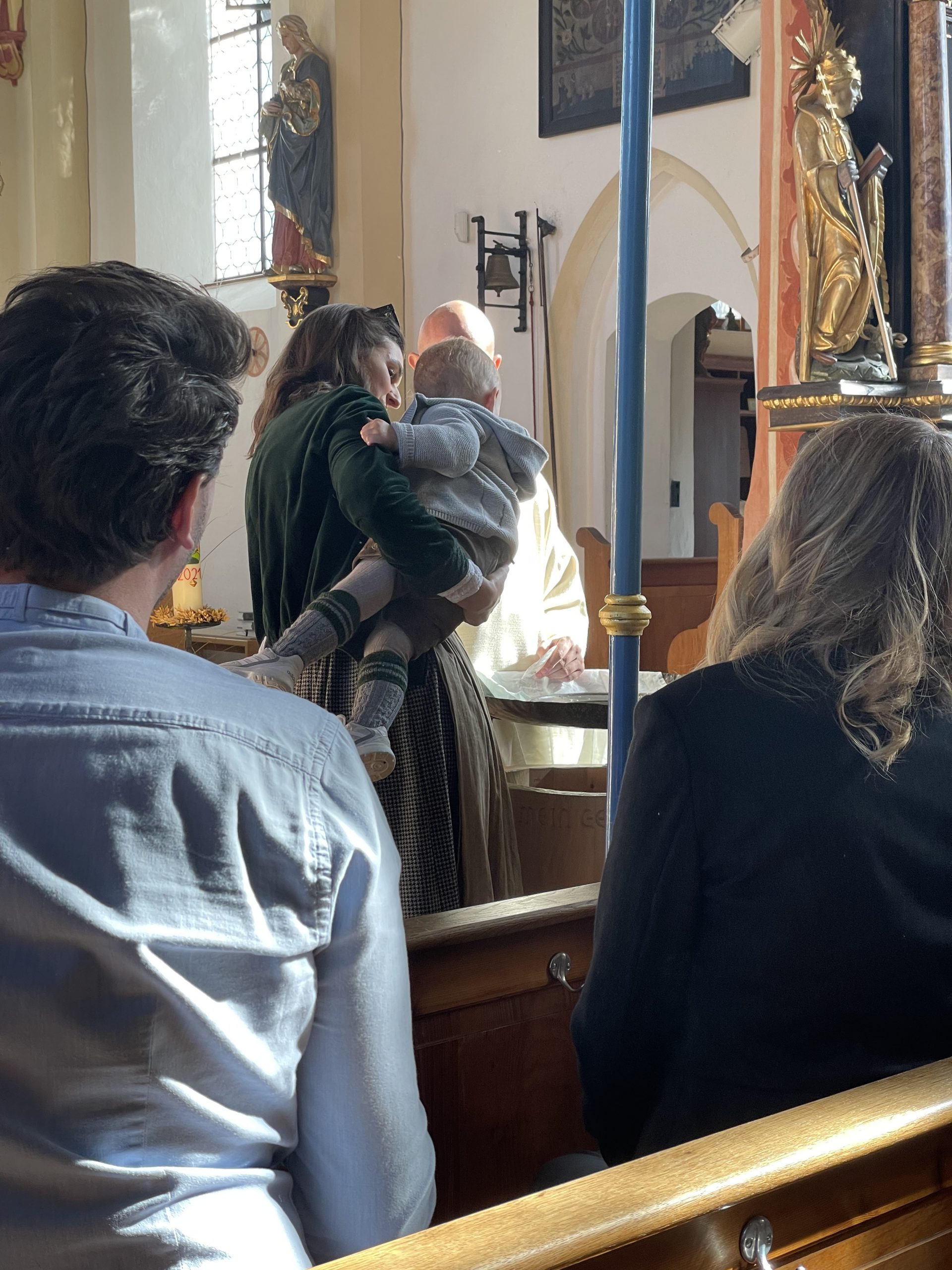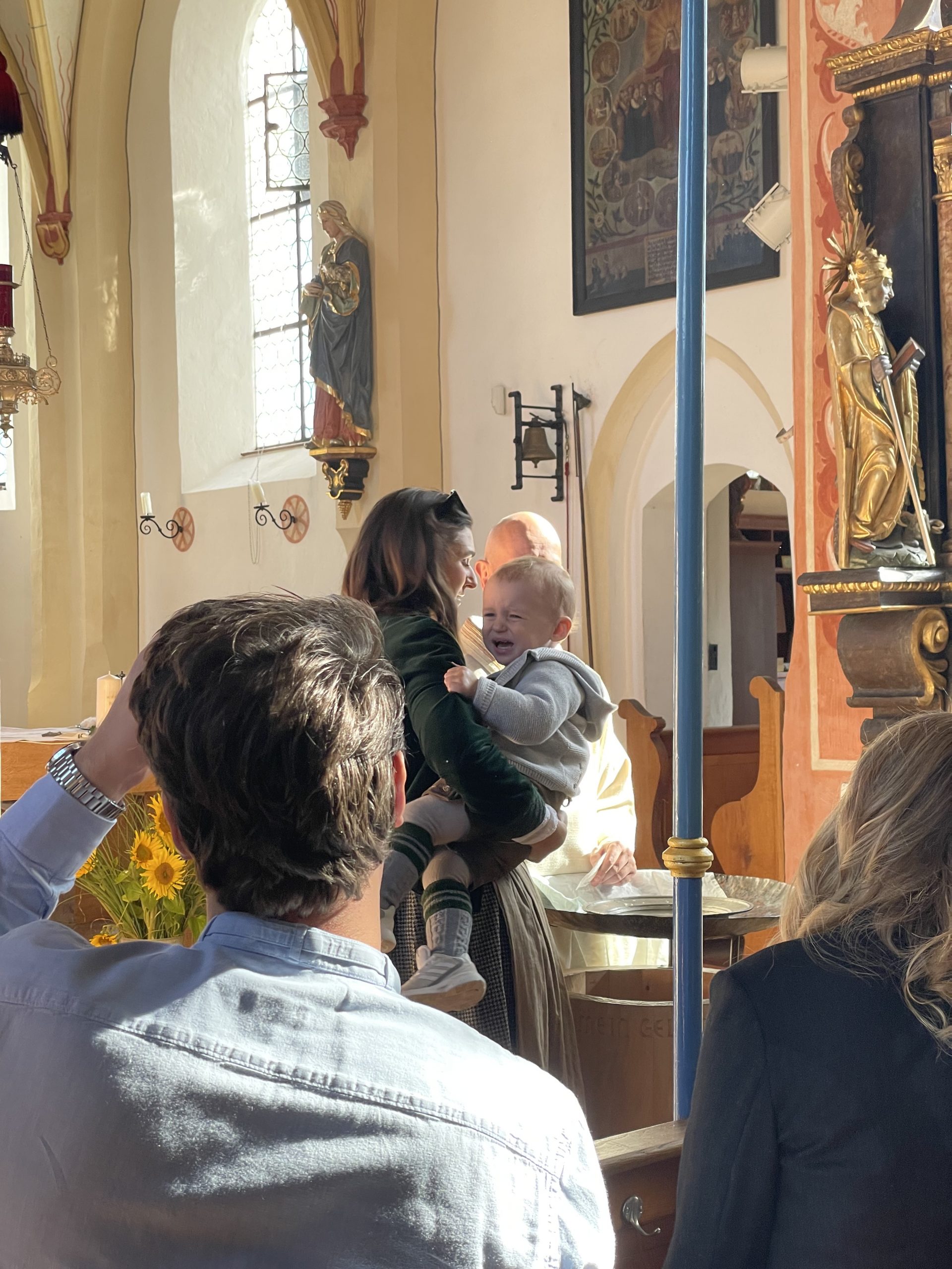 Raphael war als älterer der beiden Täuflinge bereits vor dem Einzug in die Kirche skeptisch, was den weiteren Ablauf angeht. Später hat er uns dies dann über dem Taufbecken schwebend auch lautstark mitgeteilt