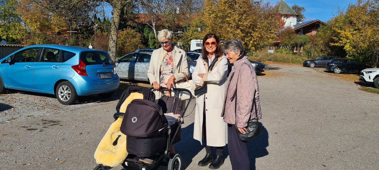 Bevor es dann zur festlichen Ente ins Restaurant Hinterholzer geht, wird die Jüngste von Ihrer Großmutter, Urgroßmutter und Ihrer Großtante Ette noch im Kinderwagen begutachtet