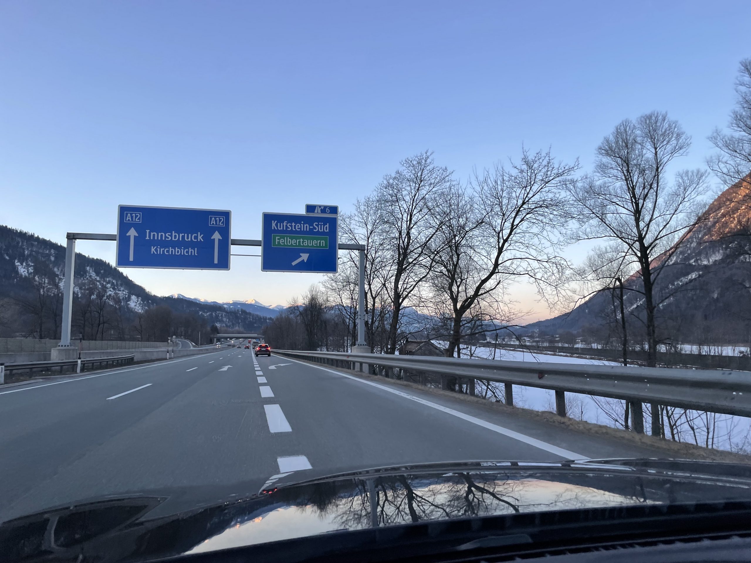 Den LKW-Stau haben wir hinter uns gelassen .... von der Ausfahrt Kufstein Süd brauchen wir gute 15 Minuten bis in die Tiefgarage an der Brandstadlbahn