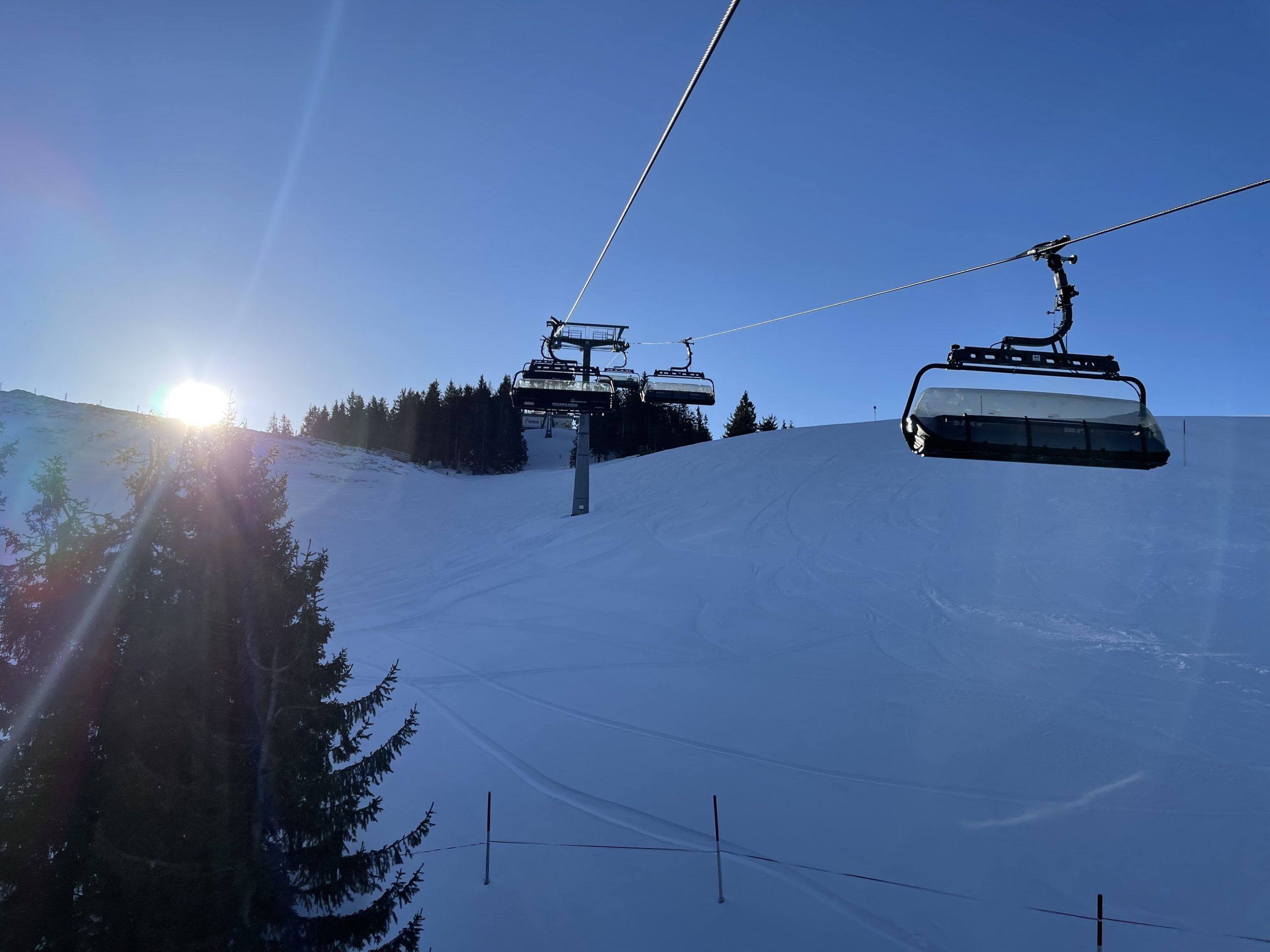 Von 8:00 Uhr bis 10:00 Uhr sind wir quasi allein im Lift und auf der Piste unterwegs