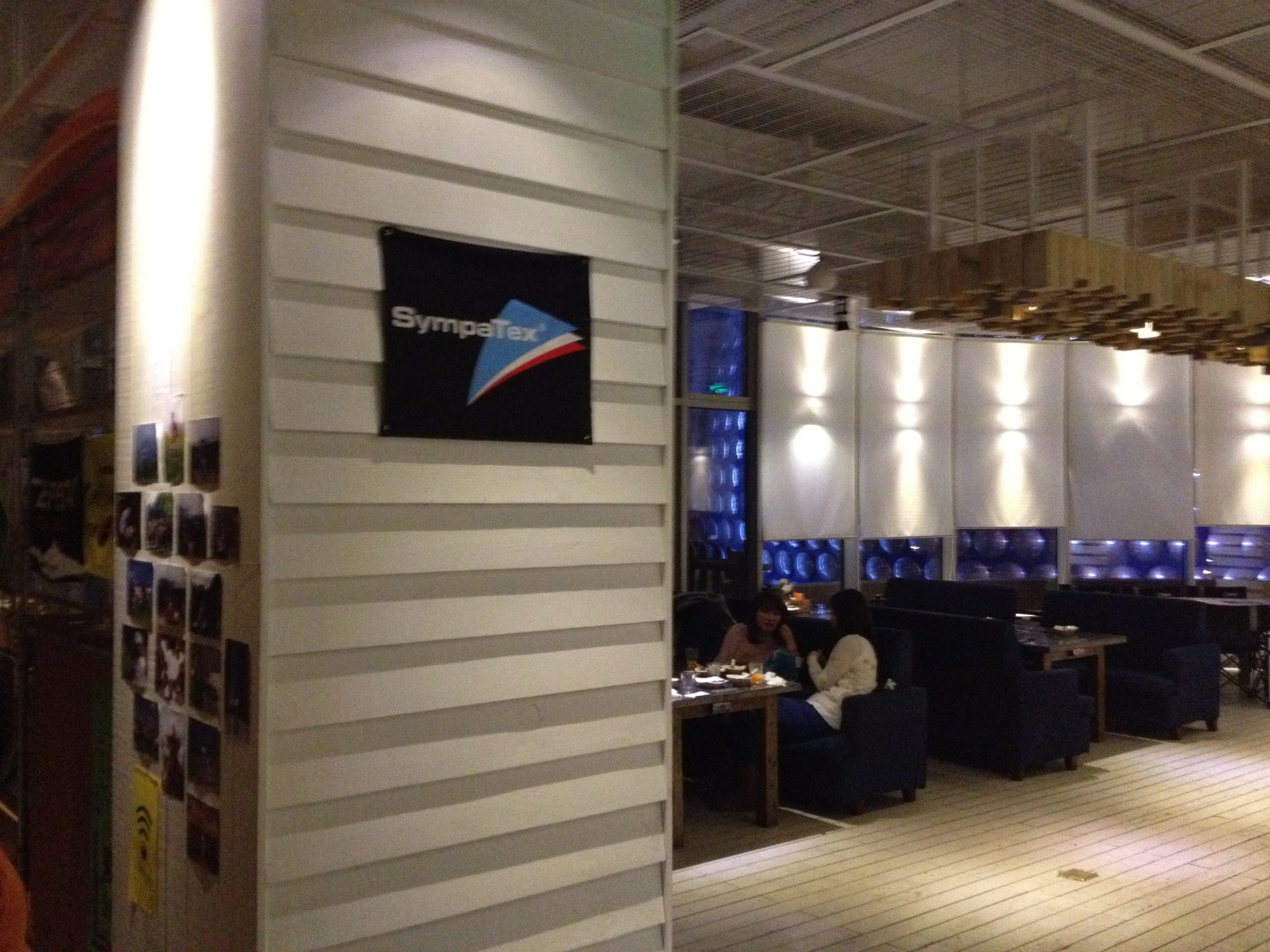 In der Stadt besuchten wir ein Restaurant, das mit unserem Sympatex Logo gebrandet war