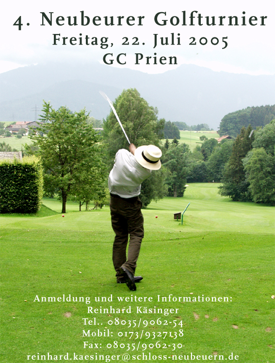 So wie das früher über Jahrzehnte jährlich veranstaltete Neubeurer Skirennen als Wettbewerb zum Vergleich der Alumnis mit den aktuellen Schülern erfreute sich auch das jeweils zum Sommerfest im Juli durchgeführte Neubeurer Golfturnier einer wachsenden Begeisterung. Auch ich war ein großer Fan dieser Veranstaltung und machte daher immer alles möglich, um bei diesem Termin mit dabei sein zu können und es auch als Altschüler zu unterstützen. Für das im Juli des Jahres 2005 stattfindende Turnier hatte mich der Schulleiter Jörg Müller darum gebeten den Neubeurer Alumni Heiner Lauterbach für eine Teilnahme zu gewinnen. Dieser war in meiner frühesten Neubeuerer Jugend nicht ganz freiwillig von der Schule "gegangen" und dadurch nicht immer nur gut auf unser Internat zu sprechen. Als leidenschaftlicher Golfer, als den ich Ihn später kennengelernt habe, war er allerdings gerne an einem schönen Turnier dabei und wollte zudem auch erfahren, wie es unserer alten gemeinsamen Schule geht. Daher war er mit an Bord und spielte gemeinsam mit Claudia Heinemann-Nath - einer Single Handicaperin und wie ich und auch ihr Vater Altneubeuererin - und mir im Flight das Turnier engagiert bis zu unserem Flight-Sieg mit.