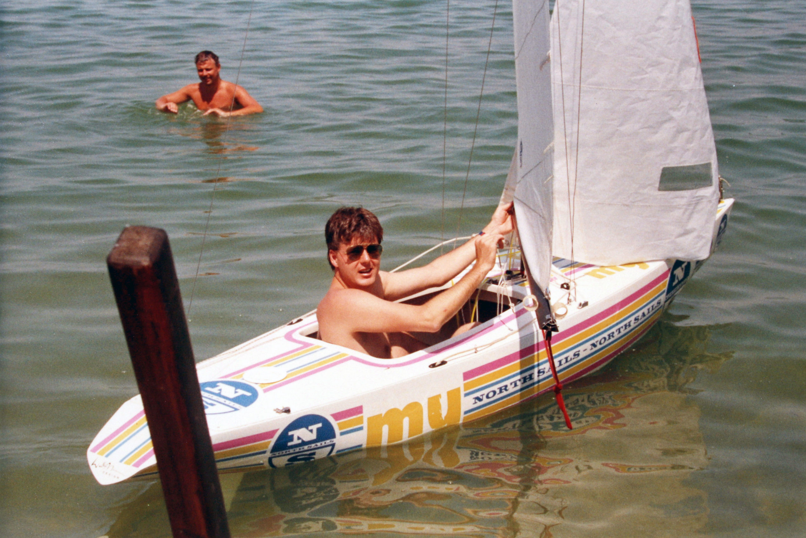Eine frühe Form des heute so populären und beliebten Stand Up Paddlings. Balance Übungen auf dem Mistral Surf Board