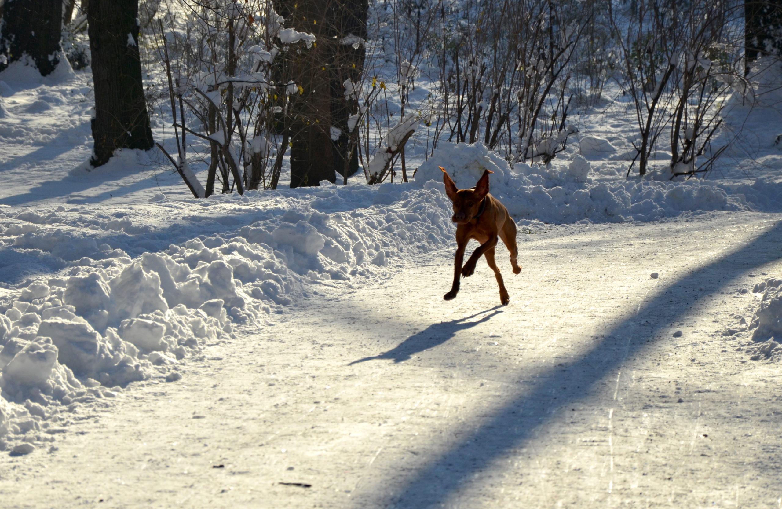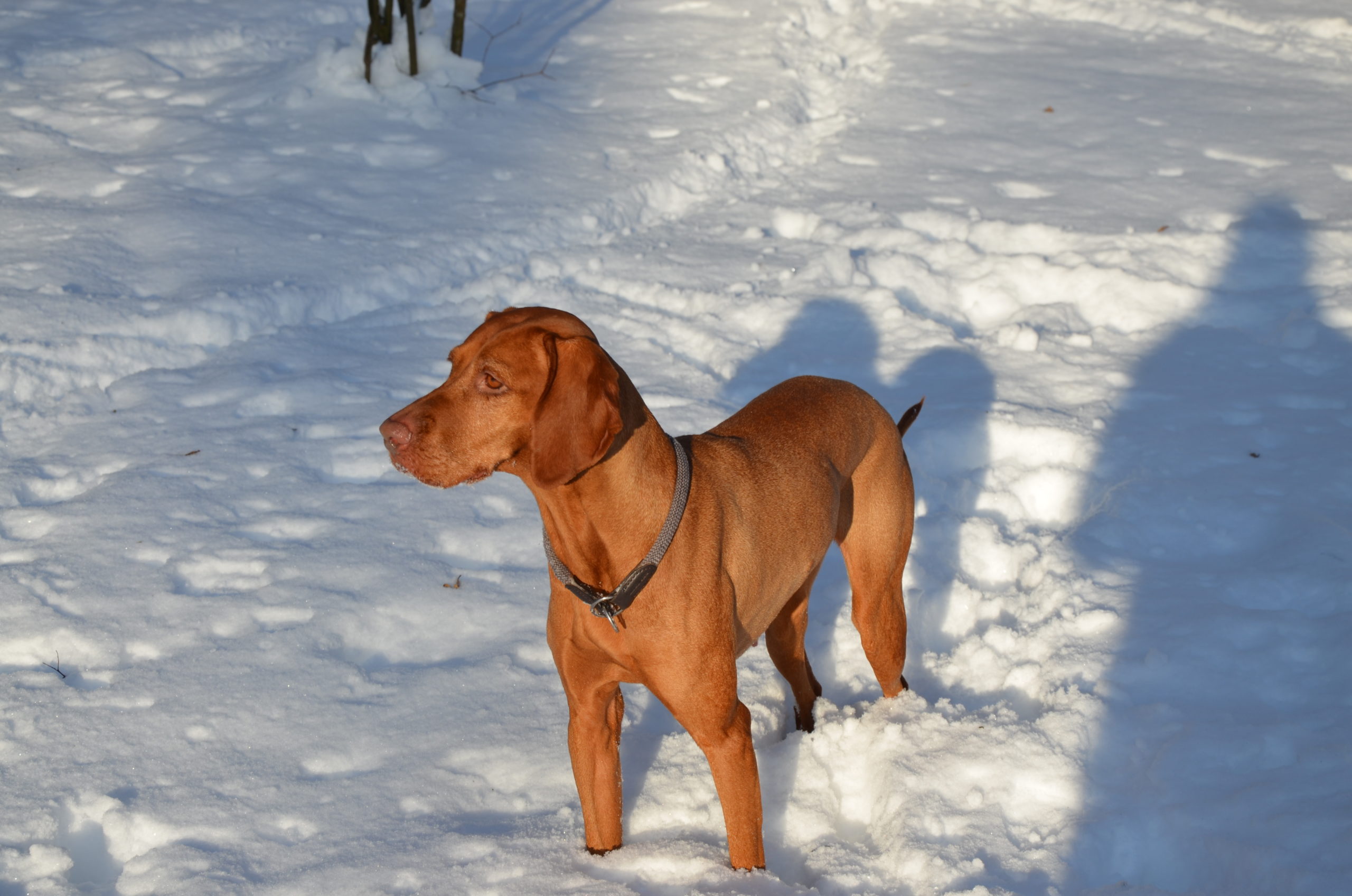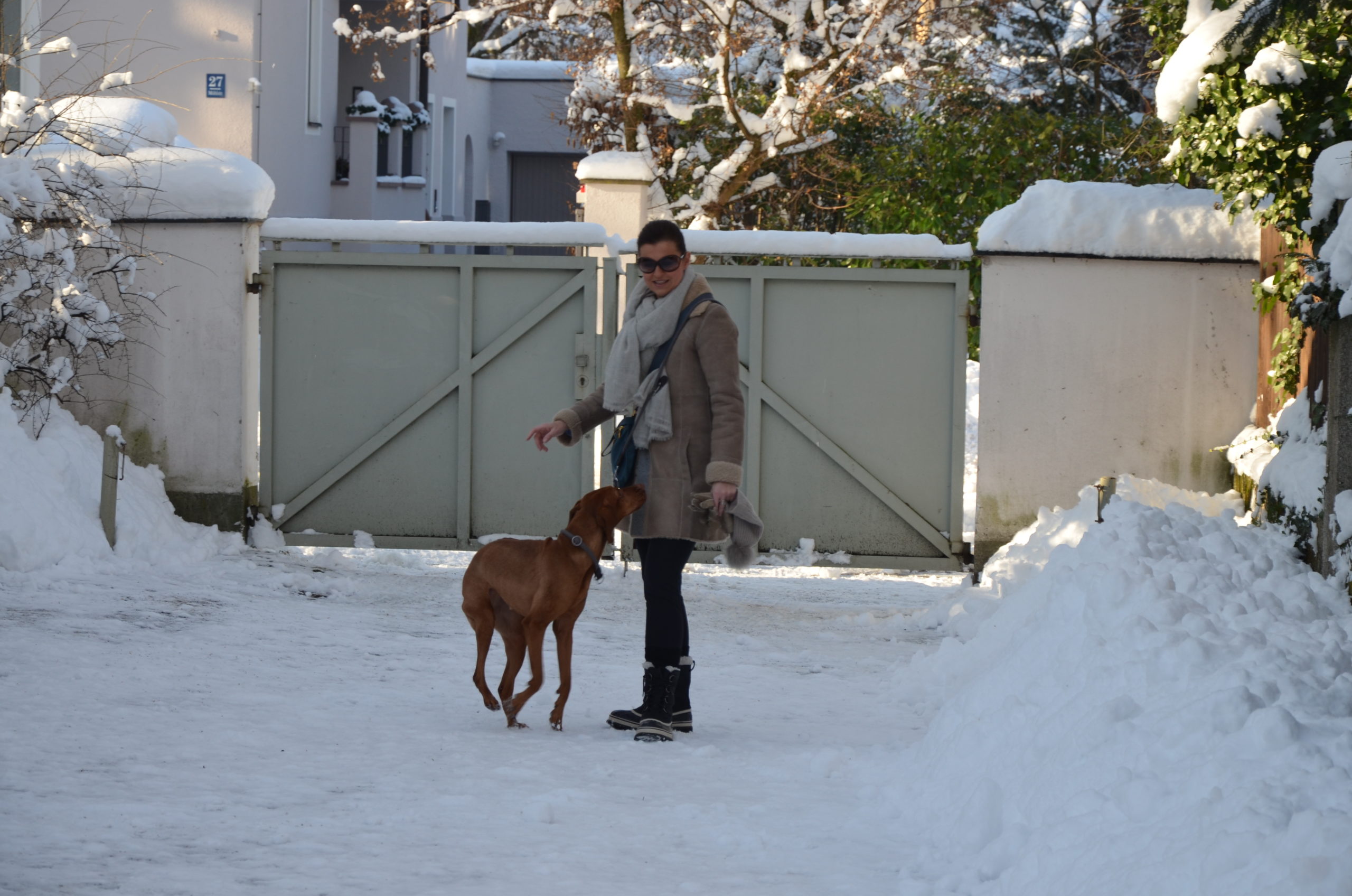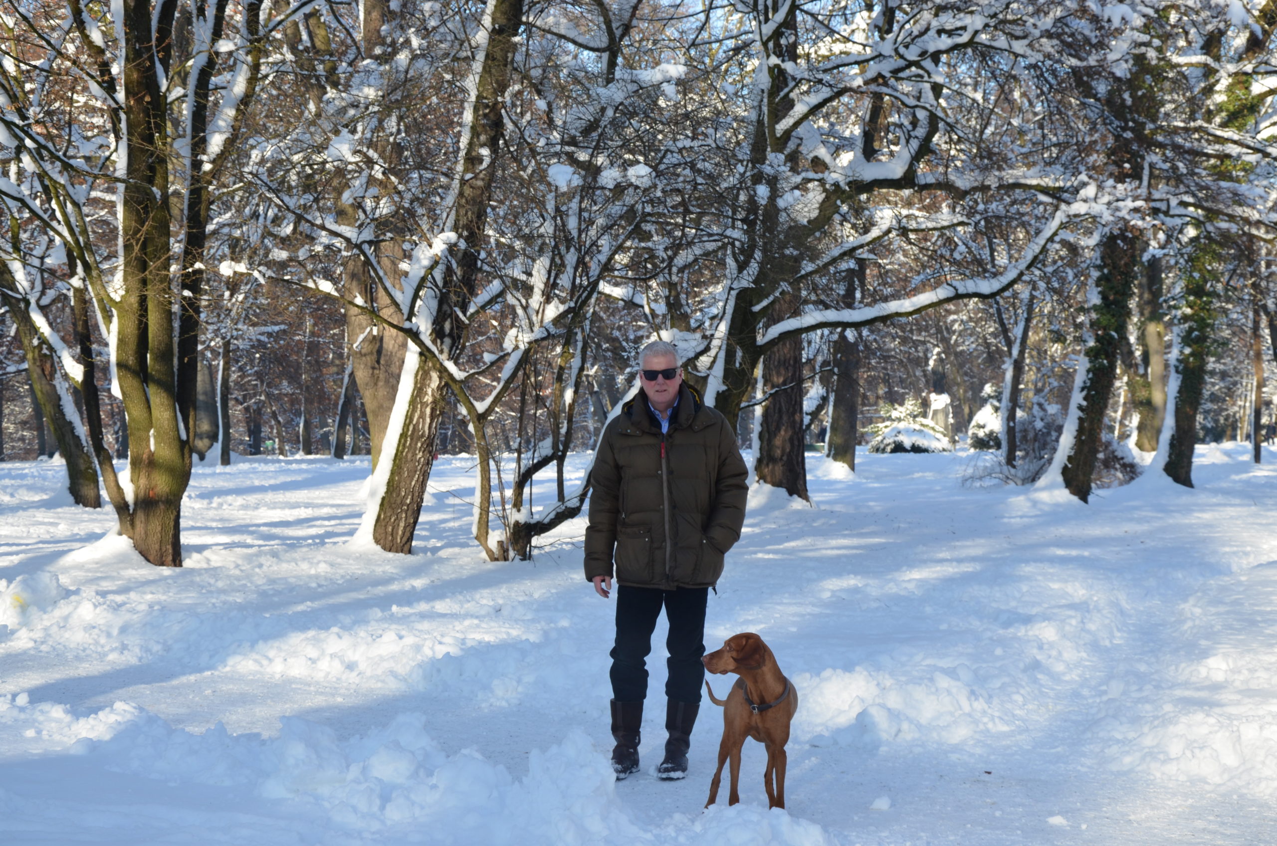 Neujahrsspaziergang in den Maximilians-Anlagen – Magyar Vizsla im Lead – 2015