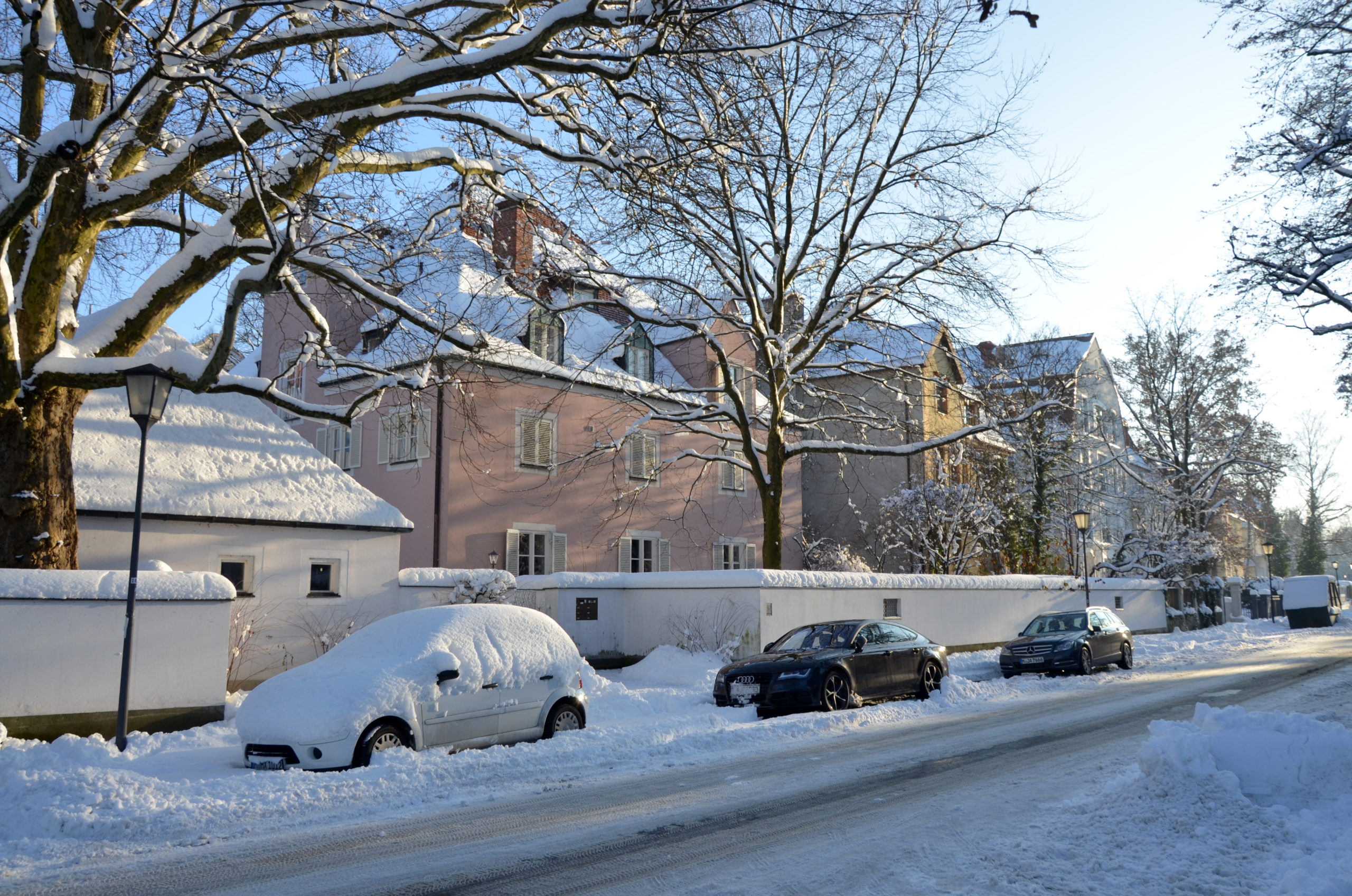 Der Neujahrsmorgen ist immer etwas ganz spezielles. In diesem frisch begonnenen Jahr 2015 ist er für uns besonders reizvoll. Es hat zuvor geschneit und der Schnee ist durch die kalten Temperaturen auch liegen geblieben. Damit wurde unsere Bogenhauser Nachbarschaft in eine Winterwunderwelt verwandelt, was zum Jahreswechsel sehr selten ist und schon lange nicht mehr vorkam. Nach unserem gelungenen Silvesterfest mit Andrea und Markus in der Möhlstrasse nun aber nichts wie los. Unsere neugierige und lebhafte Tati lockt uns in die Isaranlagen. Bei herrlichstem Wetter folgen wir ihr nur zu gerne auf ihren Wegen zum Maximilianeum und dem Friedensengel. Was für ein herrlicher Start in das neue Jahr!