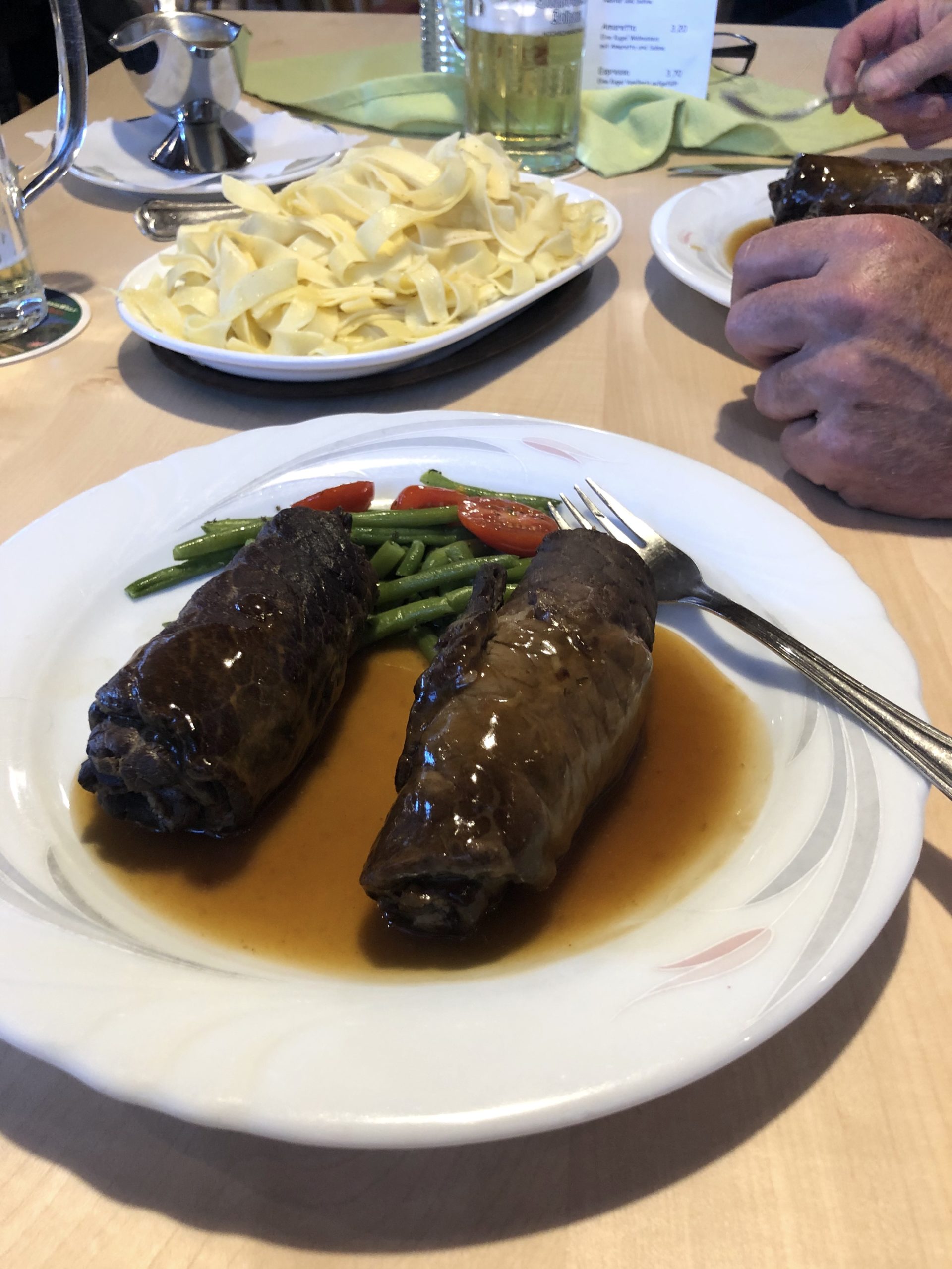 Hier unsere zwei Schwergewichter, die fabelhaften Rindsrouladen, kurz vor dem Verzehr! Das Lokal liegt direkt neben dem eindrucksvollen Golfplatz Obere Alp