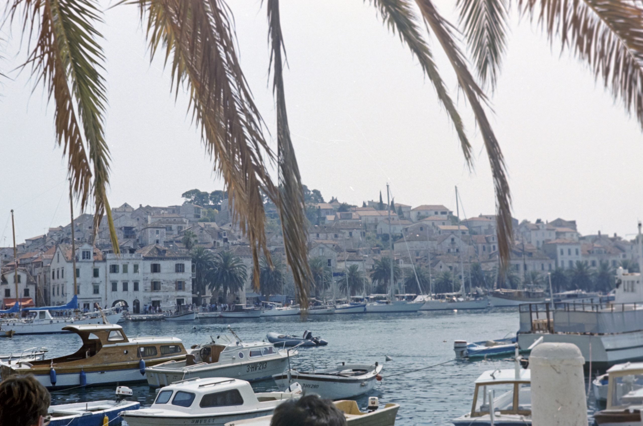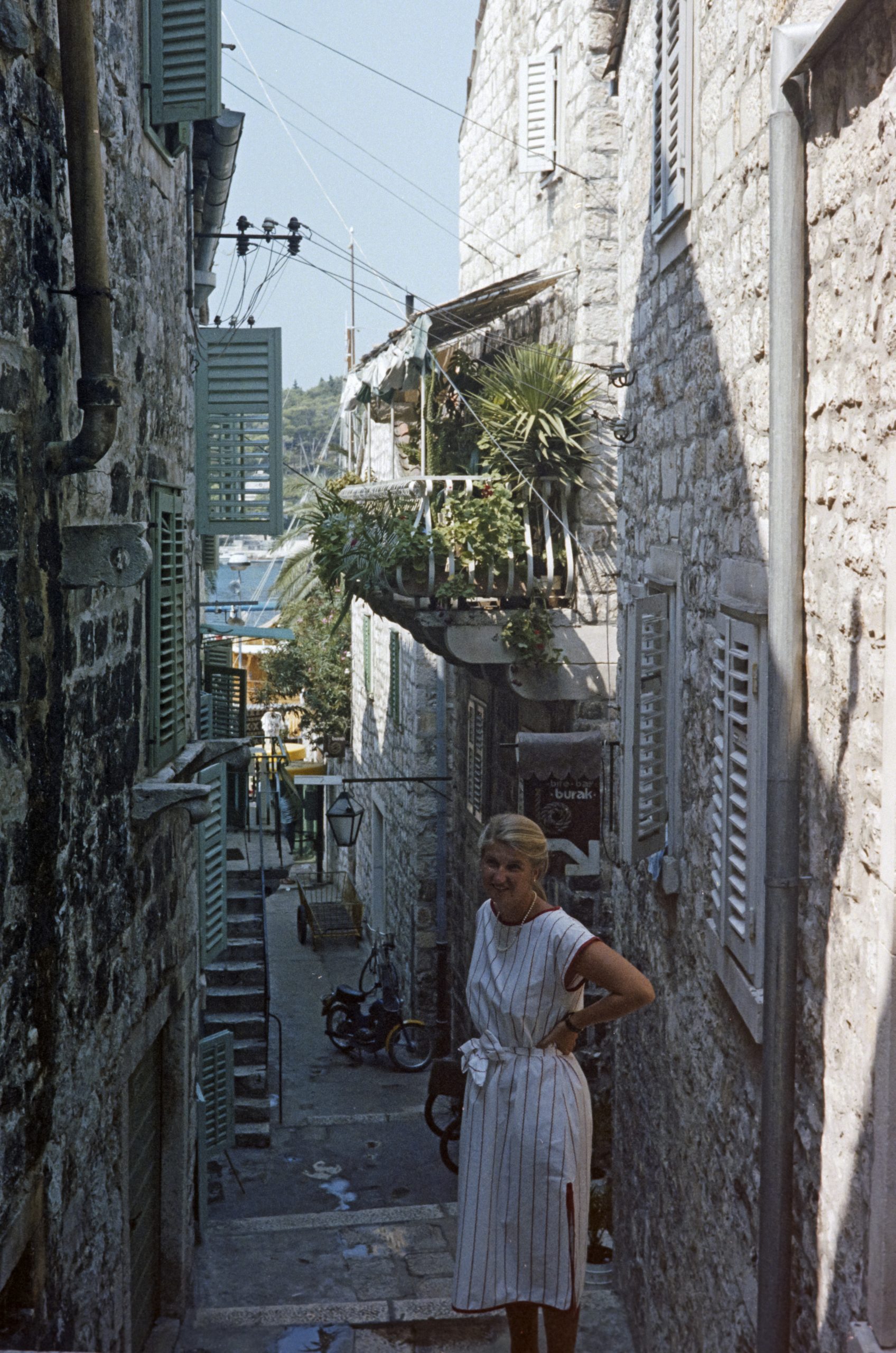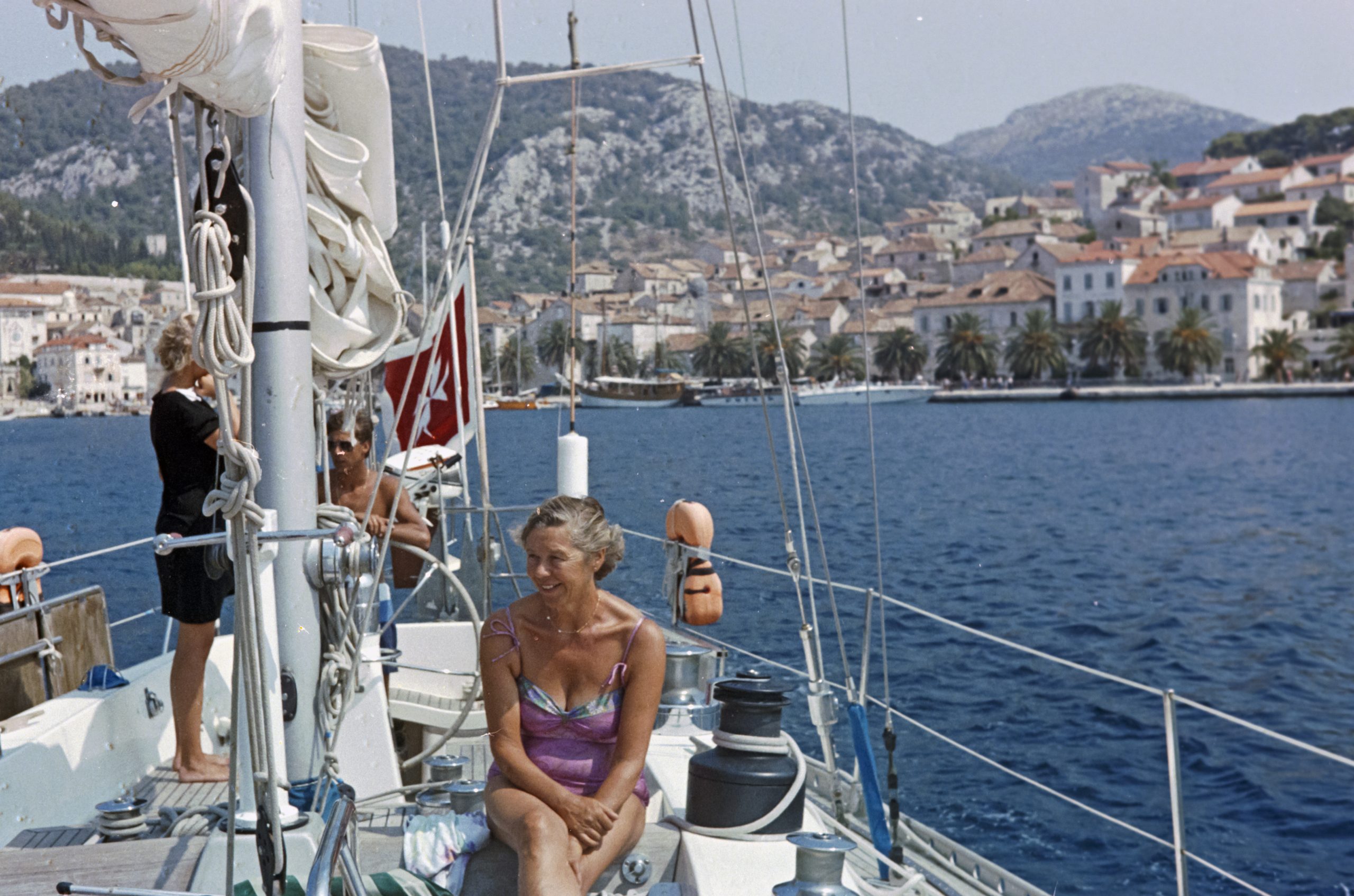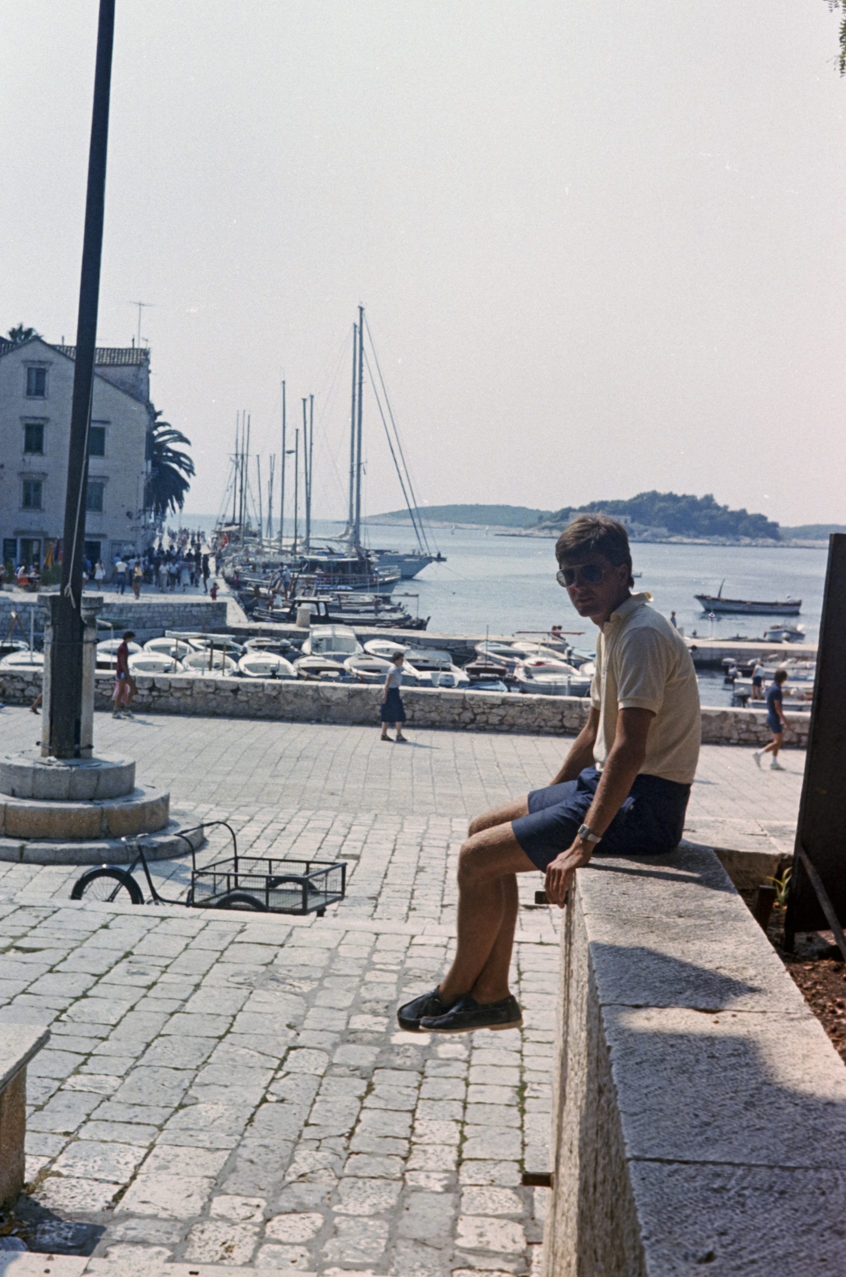 Im August sind Nici und ich mit der Familie Poullain auf deren Segelyacht Saida im Mittelmeer und der Adria unterwegs. Von Brindisi aus segelten wir nach Dalmatien, wobei unser erster Stop auf der Insel Hvar war. Grund hierfür war die Lieferung eines großen Grundig Fernsehers - den wir vom örtlichen Fernsehhändler in Brindisi an Bord genommen hatten - als Schmuggelware an die Besitzer einer Pension auf Hvar, in dem Inge und Ludwig Poullain in den frühen 50er Jahren ihre Hochzeitsreise verbrachten. Hvar ist eine kroatische Insel in der Adria vor der dalmatinischen Küste. Sie gehört zur Gespanschaft Split-Dalmatien. Die langgestreckte Insel ist die viertgrößte der Adriainseln. Sie ist eine lange und schmale Insel und dabei mit einer Länge von 67,5 km die längste Insel Kroatiens. Die Insel befindet sich 14 km südöstlich der Insel Šolta, 3,4 km südlich der Insel Brač, 7,2 km nördlich der Halbinsel Pelješac und 27,6 km nordöstlich der Insel Vis. Sehenswürdigkeiten der geschützten Landschaft sind zum Beispiel die Höhle „Grapčeva pećina“ auf der Südseite der Insel, die ein paläontologisches und archäologisches Denkmal ist. Hier fand man Schichten aus der Danilo-Hvar-Kultur, die man in die Jungsteinzeit und Kupfersteinzeit datiert (3900–3300 v. Chr. Von Hvar ging es dann weiter nach Korcula und Mljet und später nach Dubrovnik, von wo aus wir auch wieder in Richtung Heimat starteten.