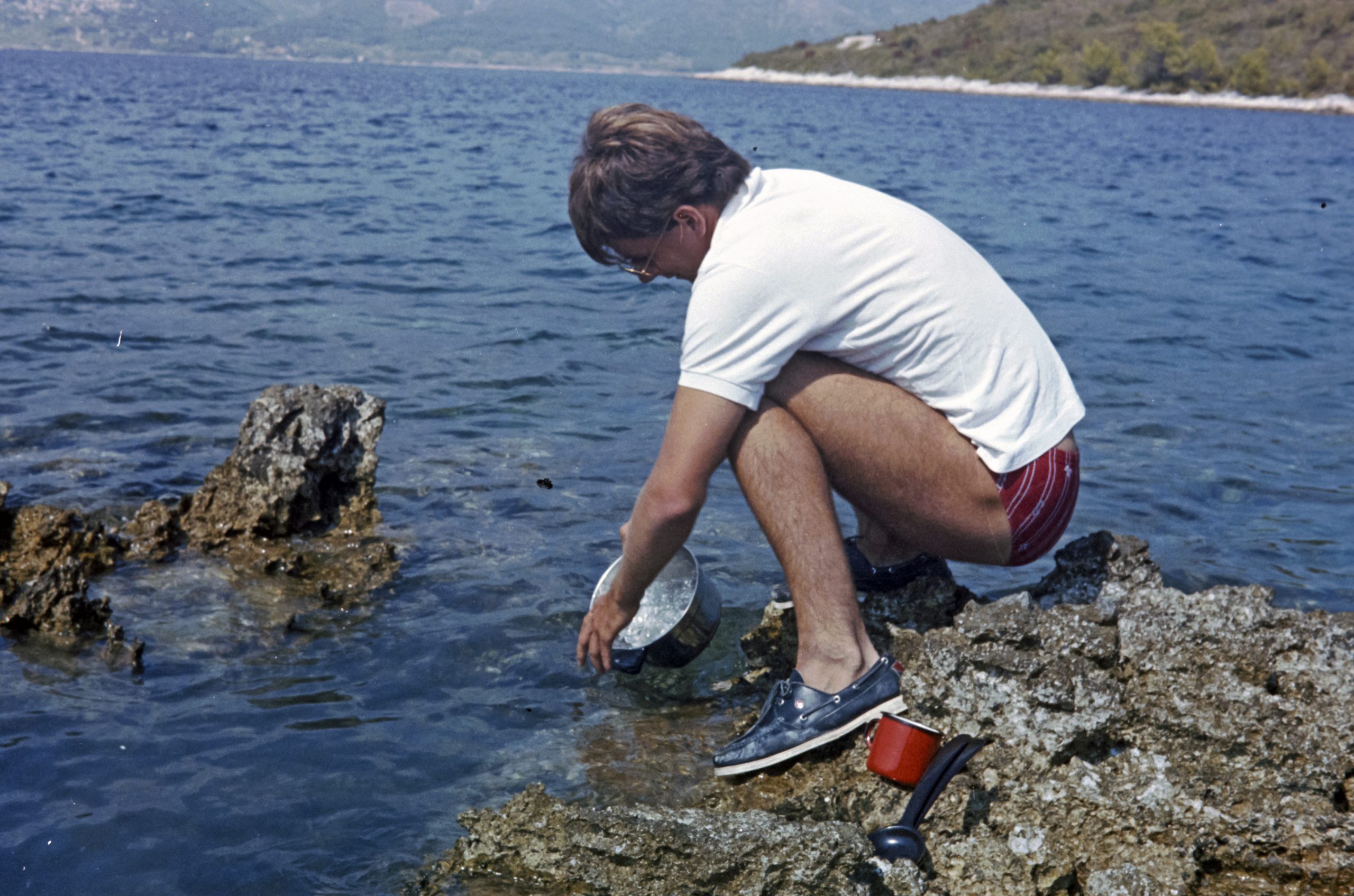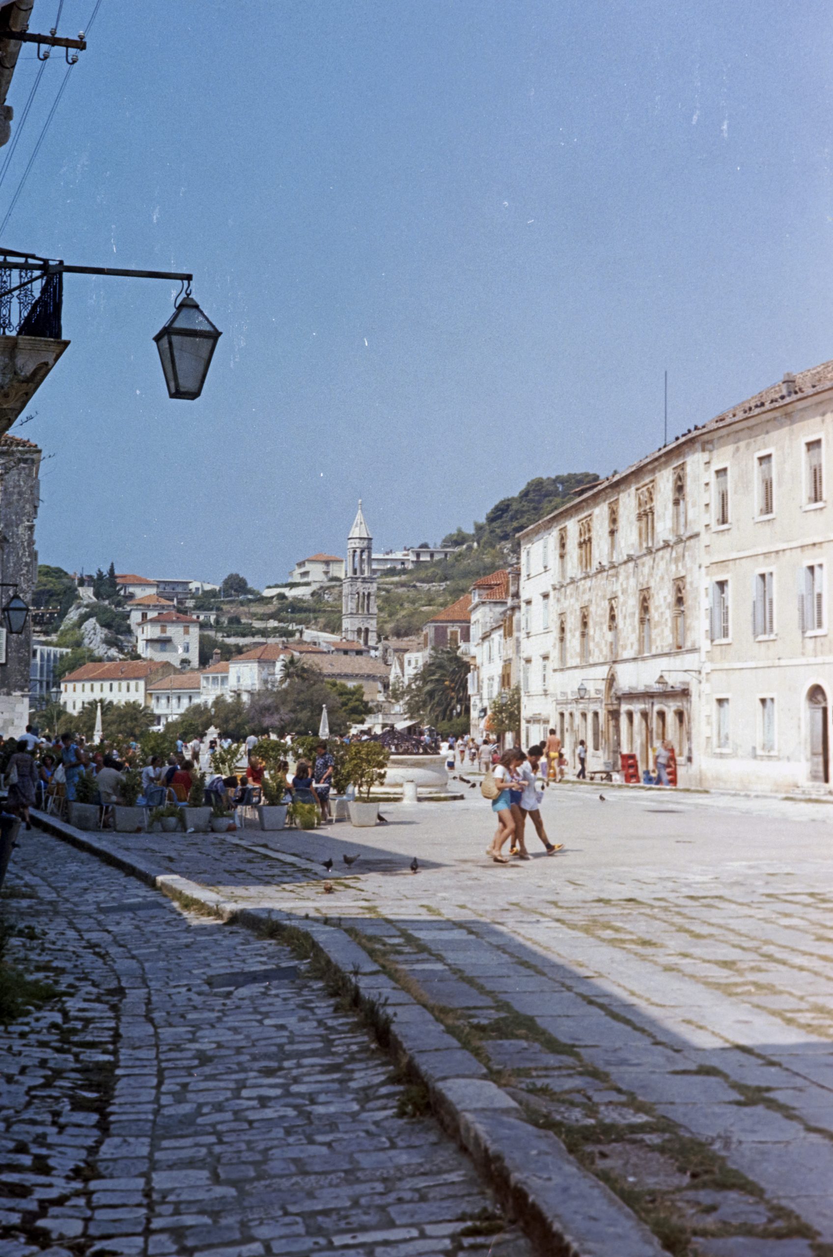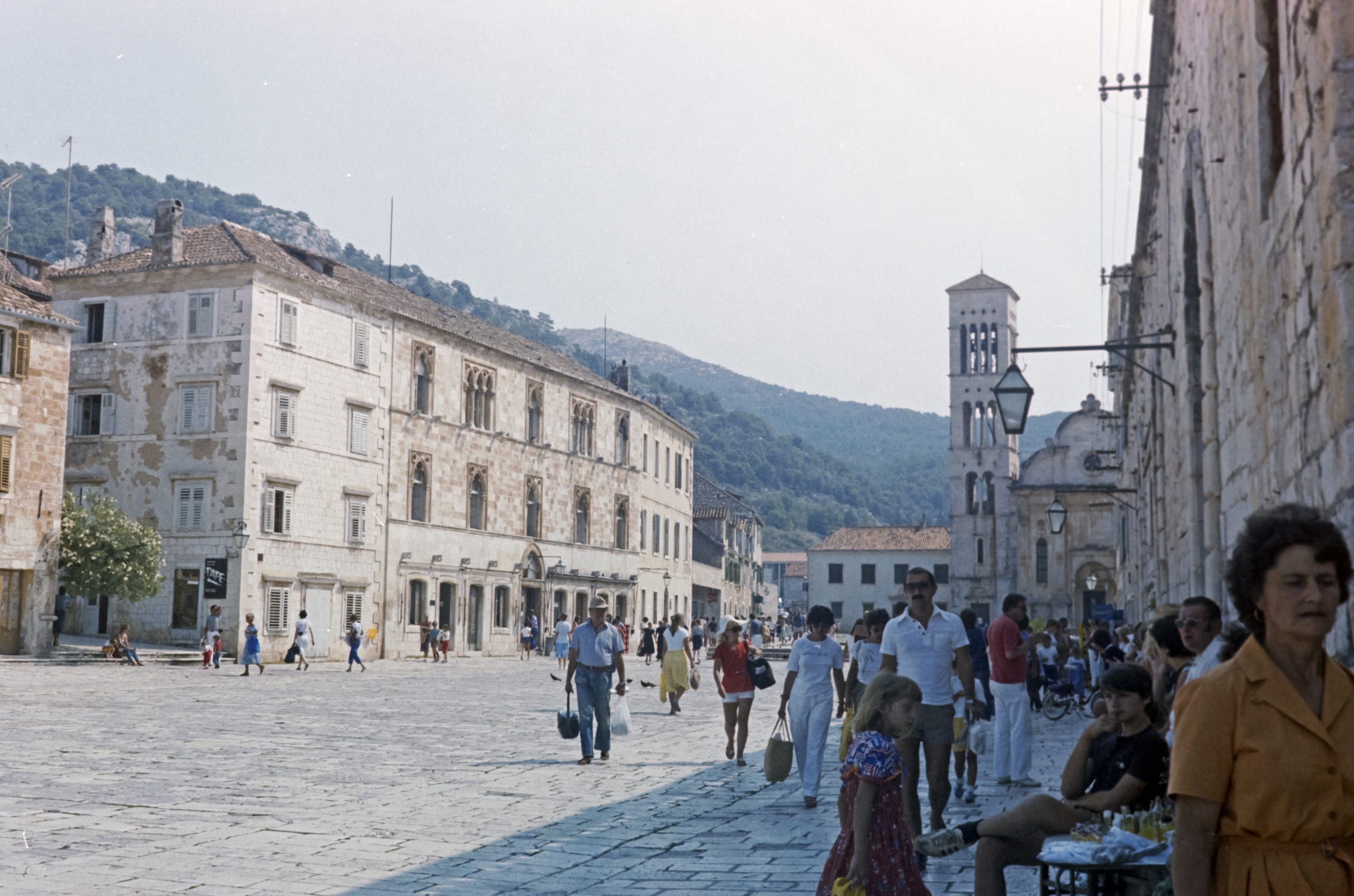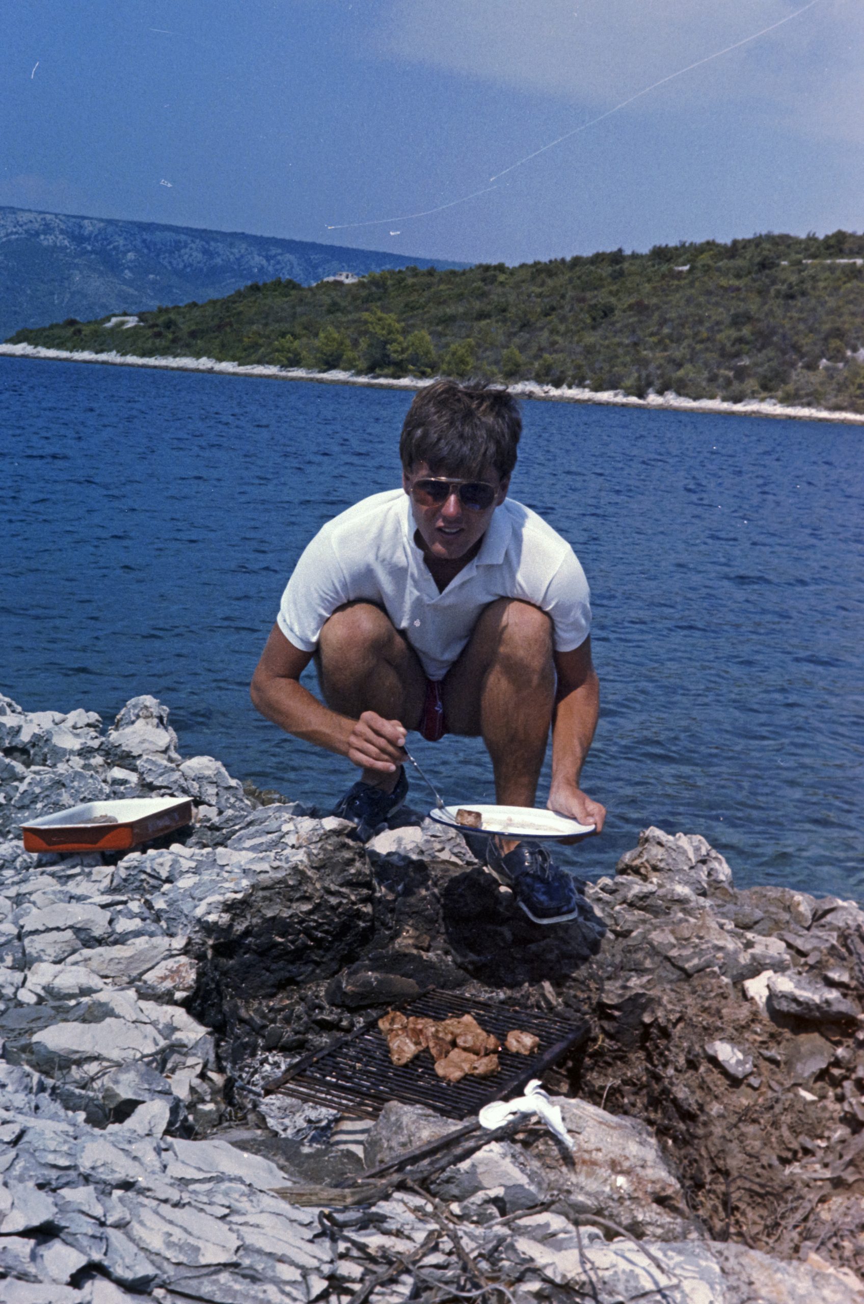 Im August sind Nici und ich mit der Familie Poullain auf deren Segelyacht Saida im Mittelmeer und der Adria unterwegs. Von Brindisi aus segelten wir nach Dalmatien, wobei unser erster Stop auf der Insel Hvar war. Grund hierfür war die Lieferung eines großen Grundig Fernsehers - den wir vom örtlichen Fernsehhändler in Brindisi an Bord genommen hatten - als Schmuggelware an die Besitzer einer Pension auf Hvar, in dem Inge und Ludwig Poullain in den frühen 50er Jahren ihre Hochzeitsreise verbrachten. Hvar ist eine kroatische Insel in der Adria vor der dalmatinischen Küste. Sie gehört zur Gespanschaft Split-Dalmatien. Die langgestreckte Insel ist die viertgrößte der Adriainseln. Sie ist eine lange und schmale Insel und dabei mit einer Länge von 67,5 km die längste Insel Kroatiens. Die Insel befindet sich 14 km südöstlich der Insel Šolta, 3,4 km südlich der Insel Brač, 7,2 km nördlich der Halbinsel Pelješac und 27,6 km nordöstlich der Insel Vis. Sehenswürdigkeiten der geschützten Landschaft sind zum Beispiel die Höhle „Grapčeva pećina“ auf der Südseite der Insel, die ein paläontologisches und archäologisches Denkmal ist. Hier fand man Schichten aus der Danilo-Hvar-Kultur, die man in die Jungsteinzeit und Kupfersteinzeit datiert (3900–3300 v. Chr. Von Hvar ging es dann weiter nach Korcula und Mljet und später nach Dubrovnik, von wo aus wir auch wieder in Richtung Heimat starteten.