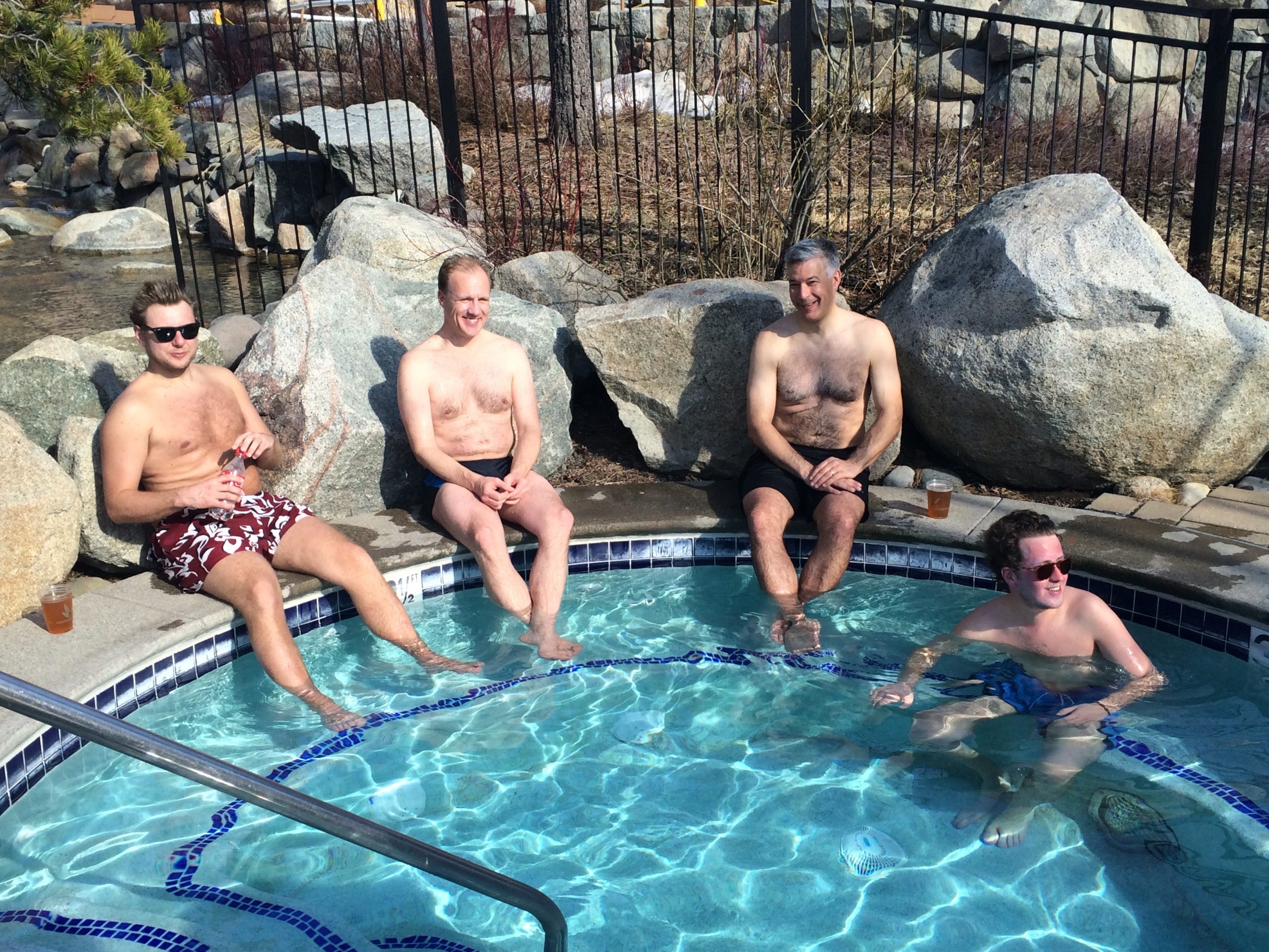 Abtauchen in den Jacuzzi. Martin, Niels, Stephen und Paul beim konzentrierten Relax-Programm ....